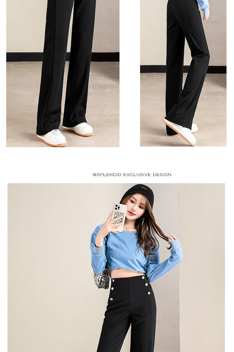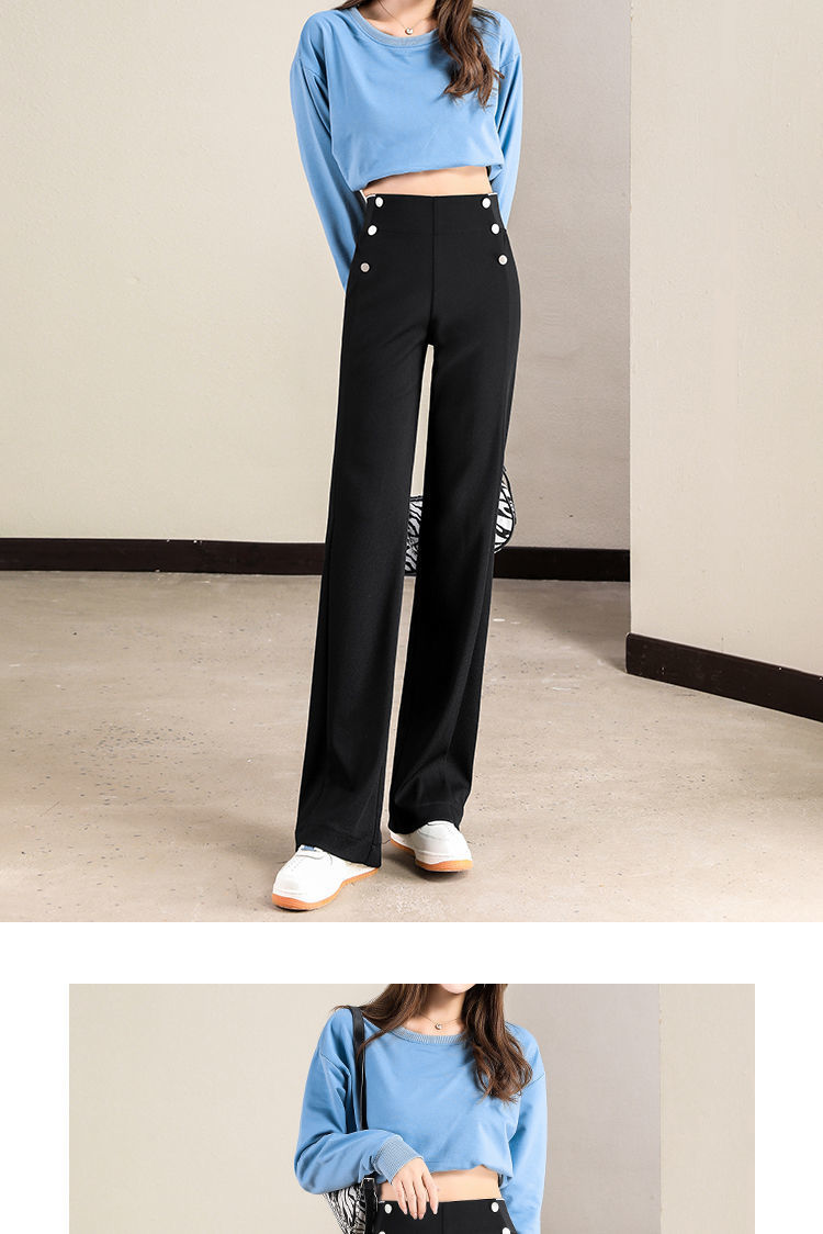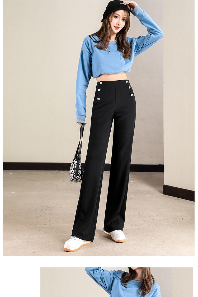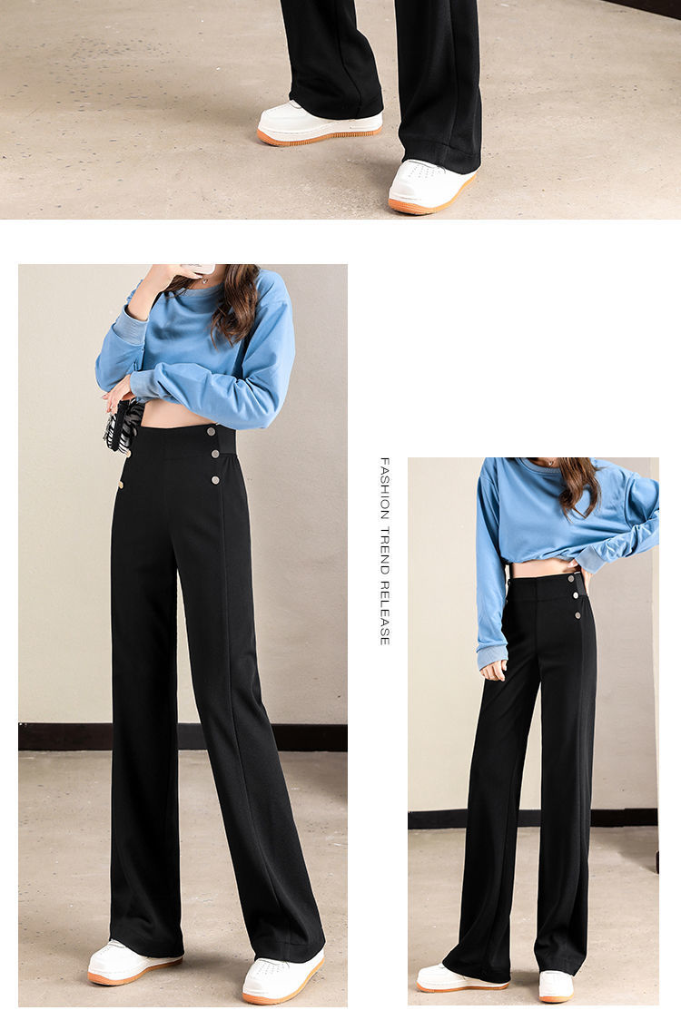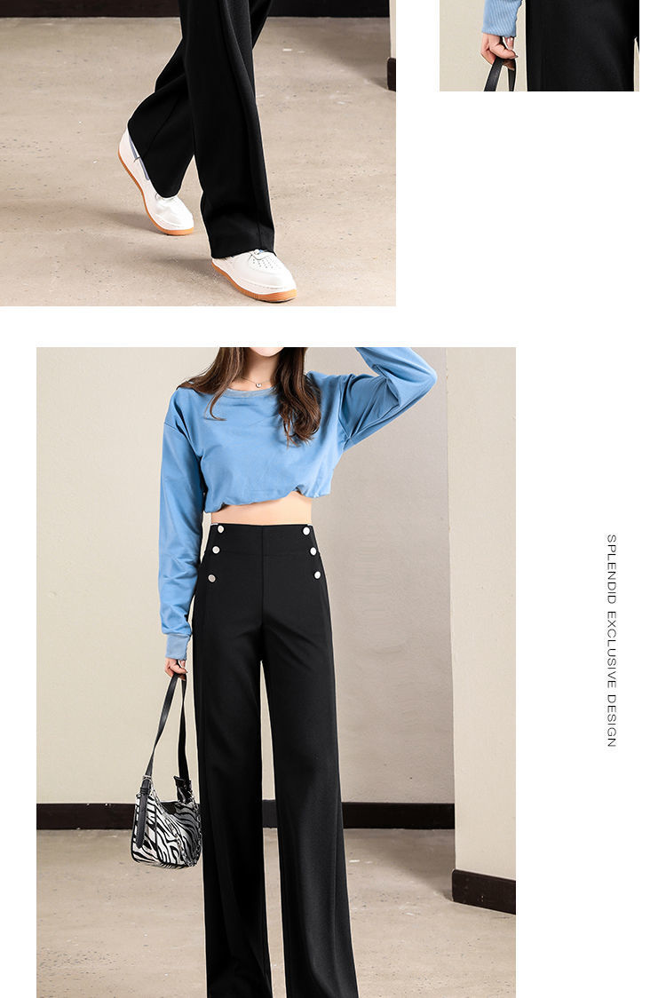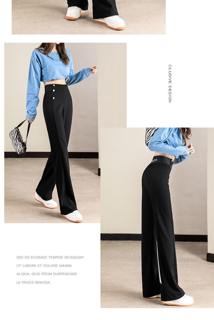 小个子黑色西装阔腿裤女春秋薄款高腰垂感休闲裤拖地长裤直筒裤子