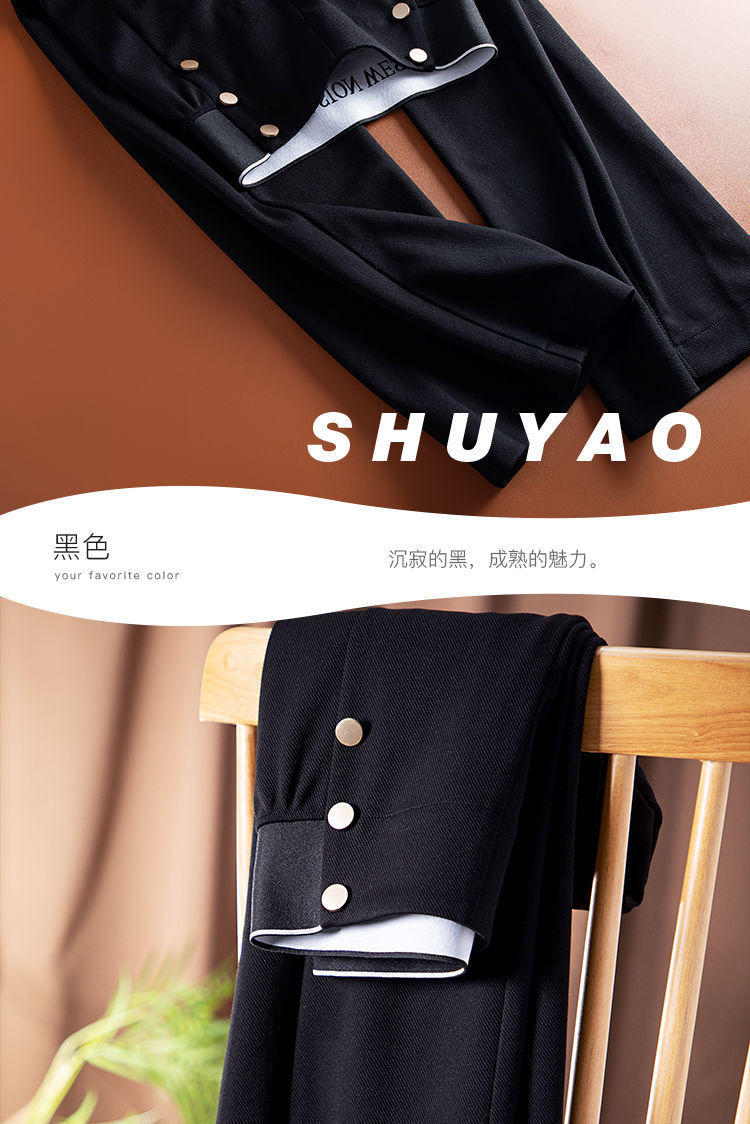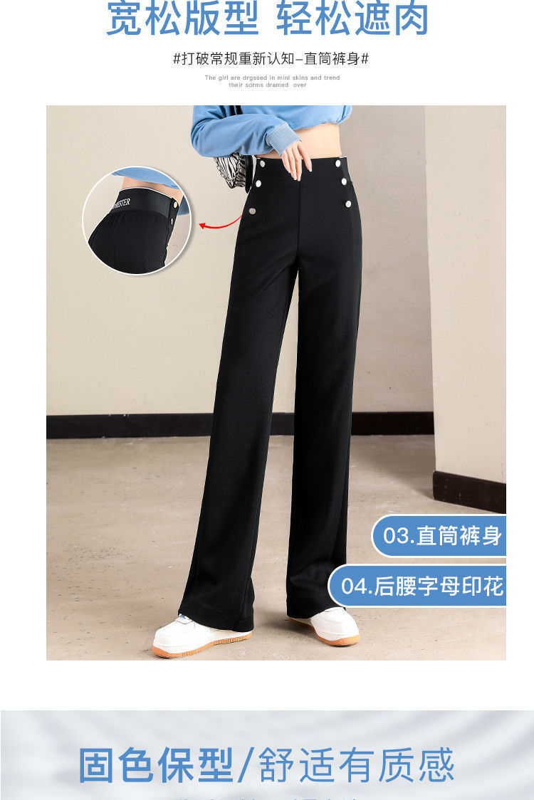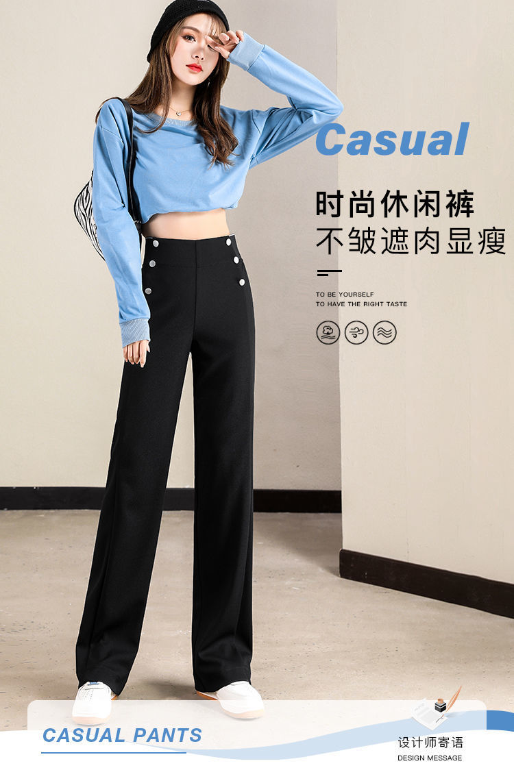 小个子黑色西装阔腿裤女春秋薄款拖地长裤直筒裤子高腰垂感休闲裤