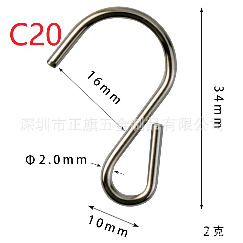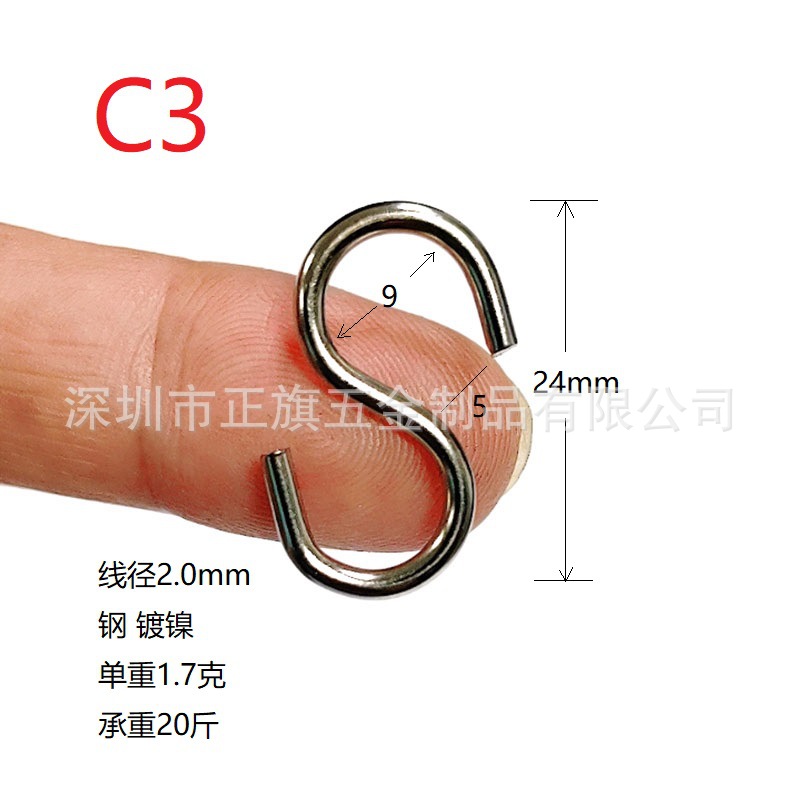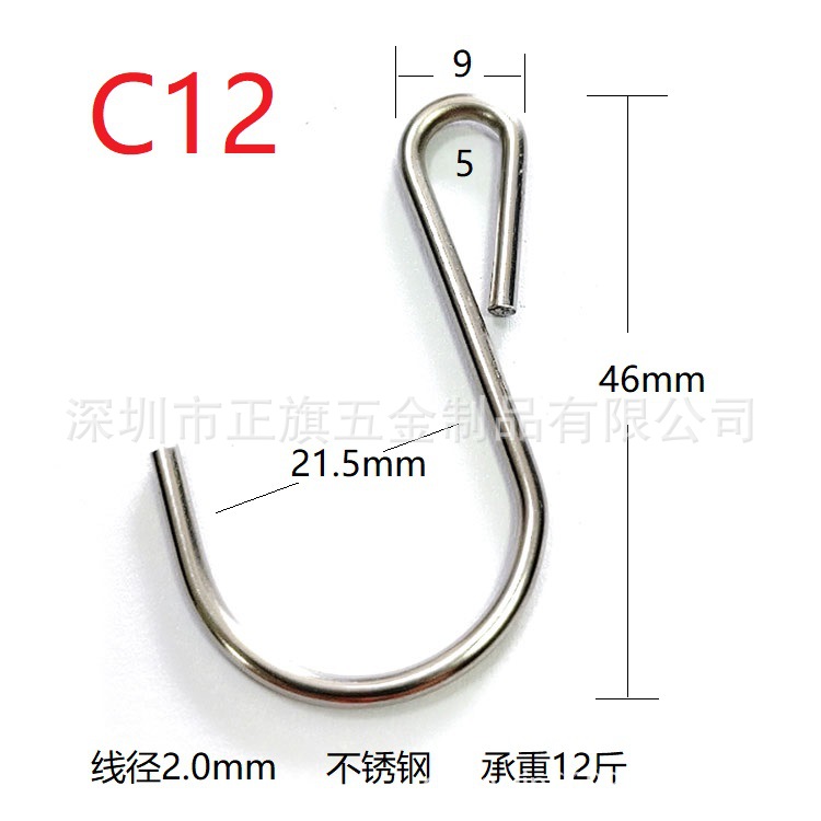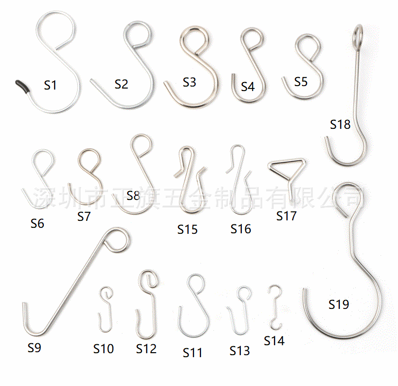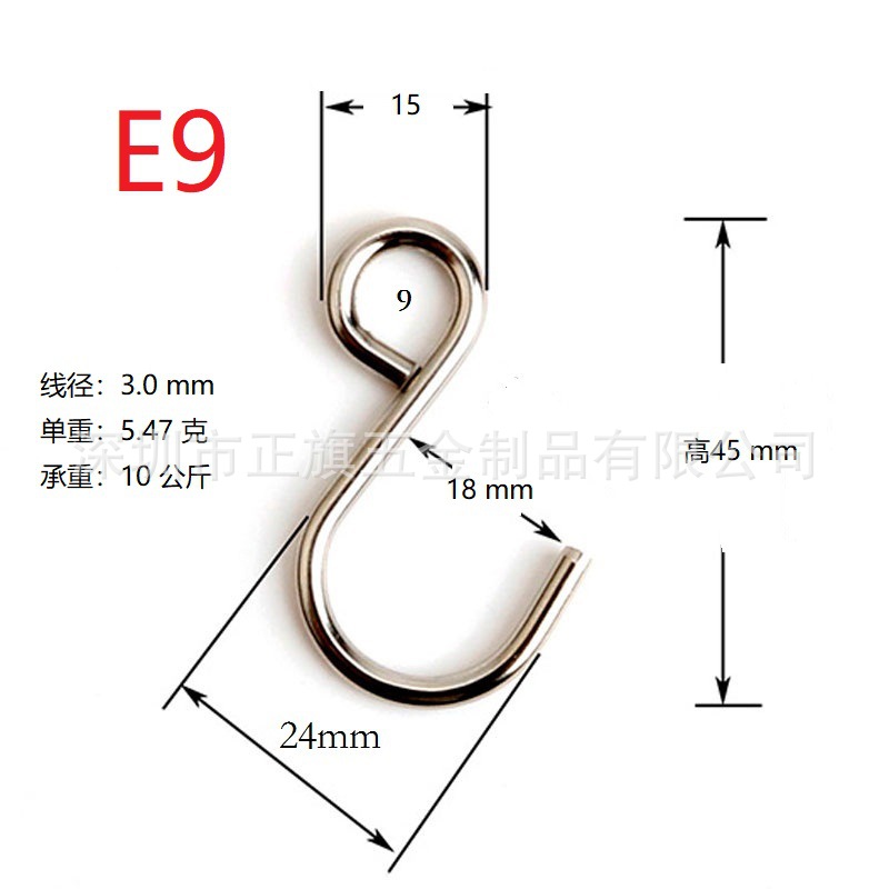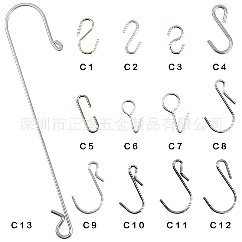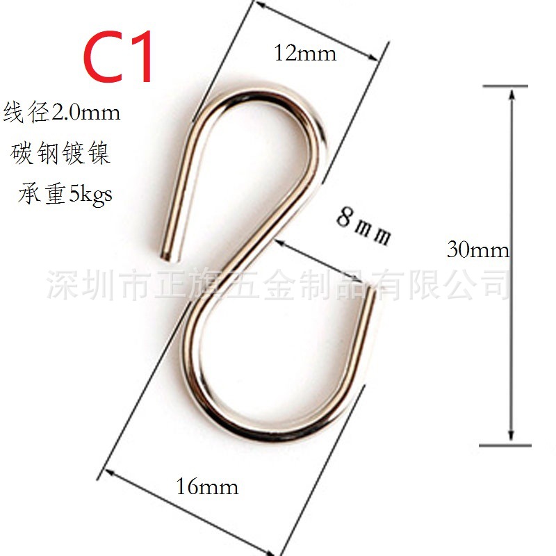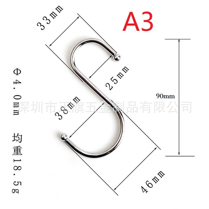 多规格金属S型挂钩 不锈钢挂钩 卫浴窗帘轨道吊钩 圣诞S钩子跨境