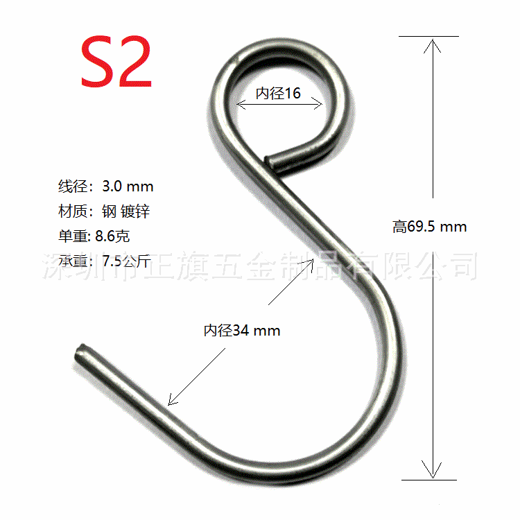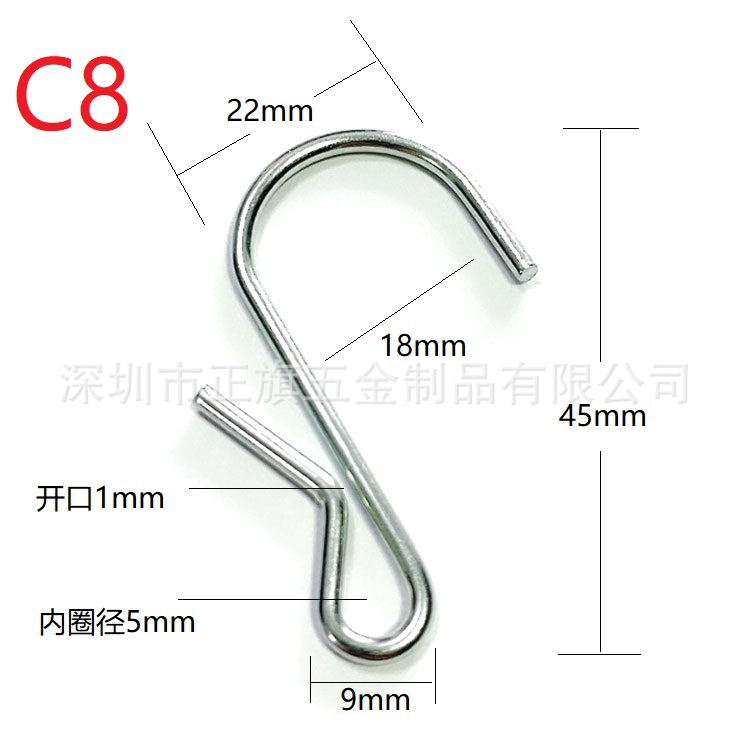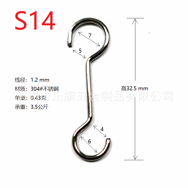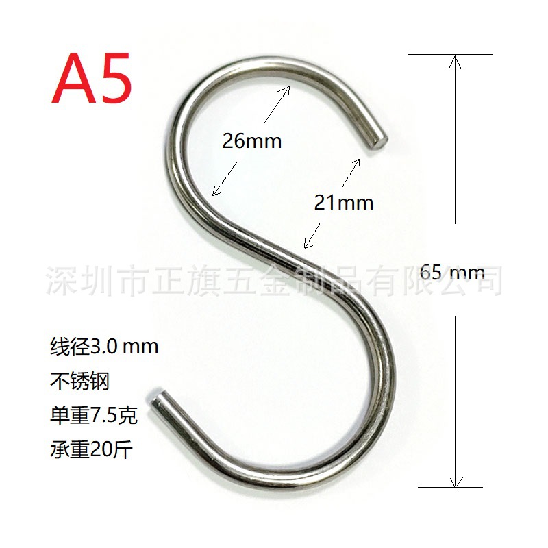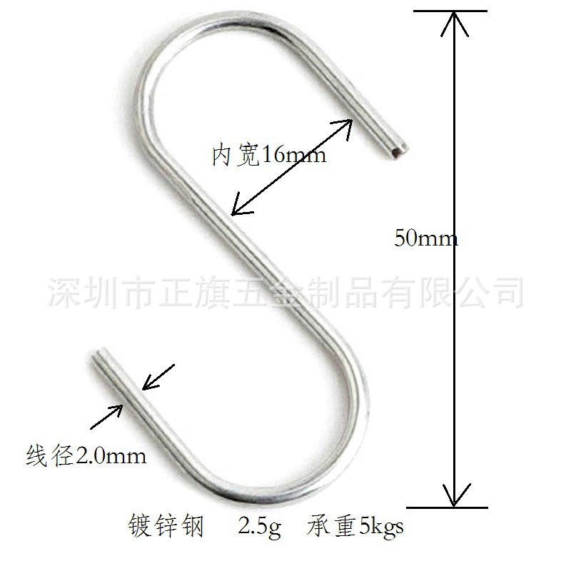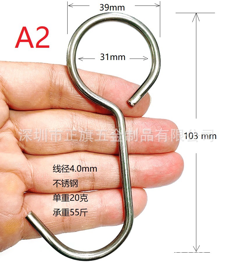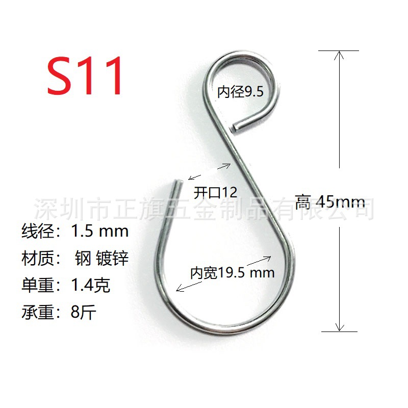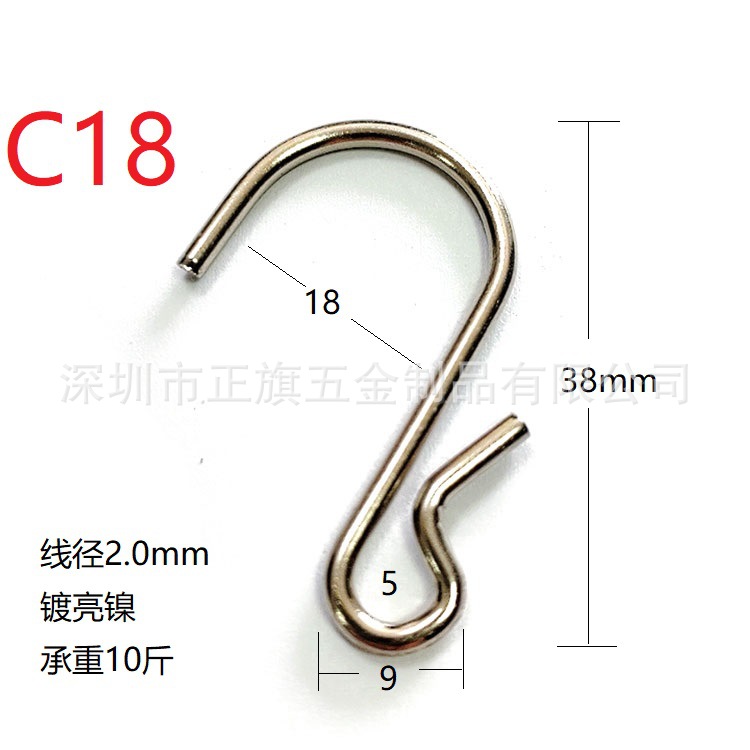 多规格金属S型挂钩 不锈钢挂钩 卫浴窗帘轨道吊钩 圣诞S钩子跨境
