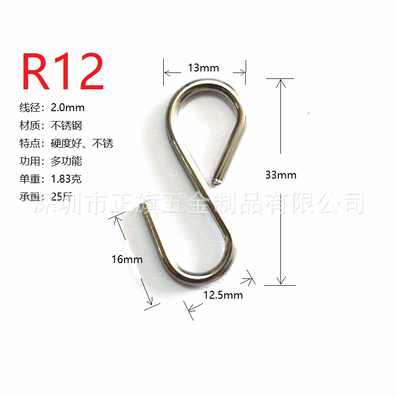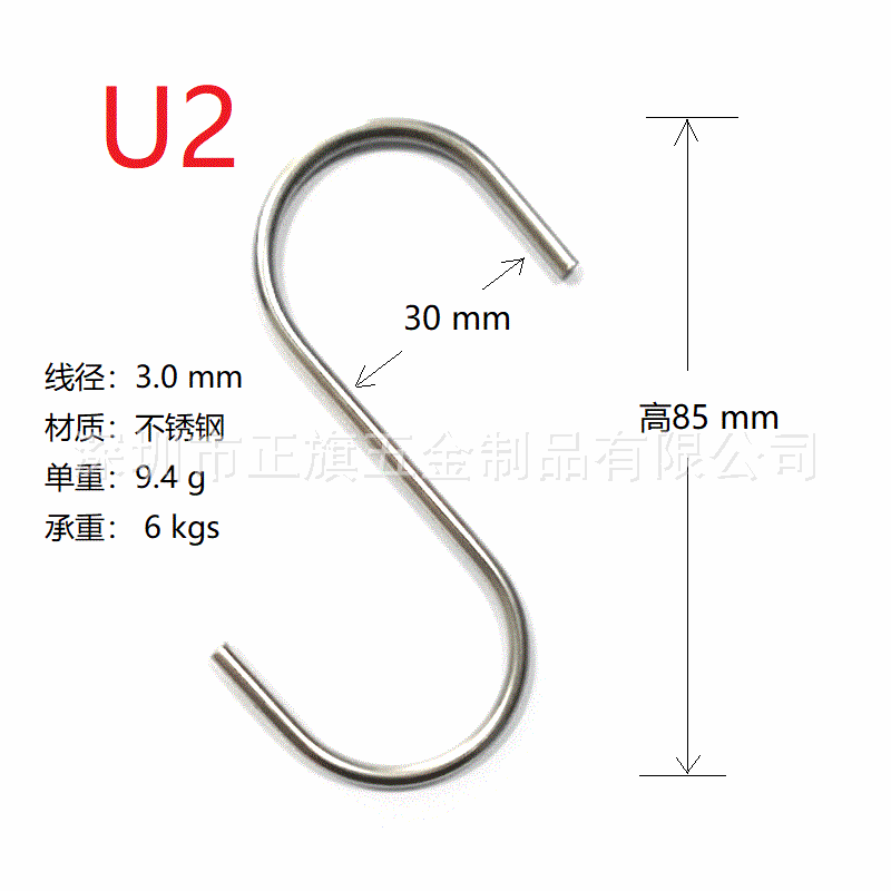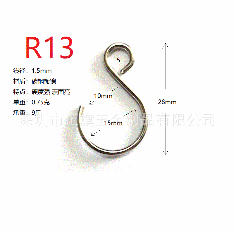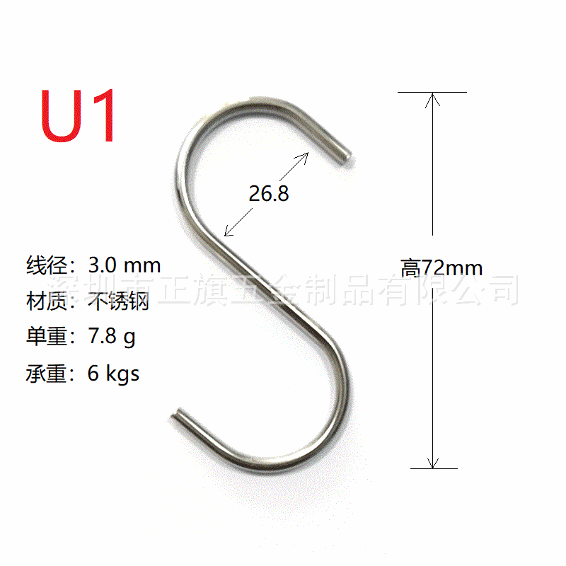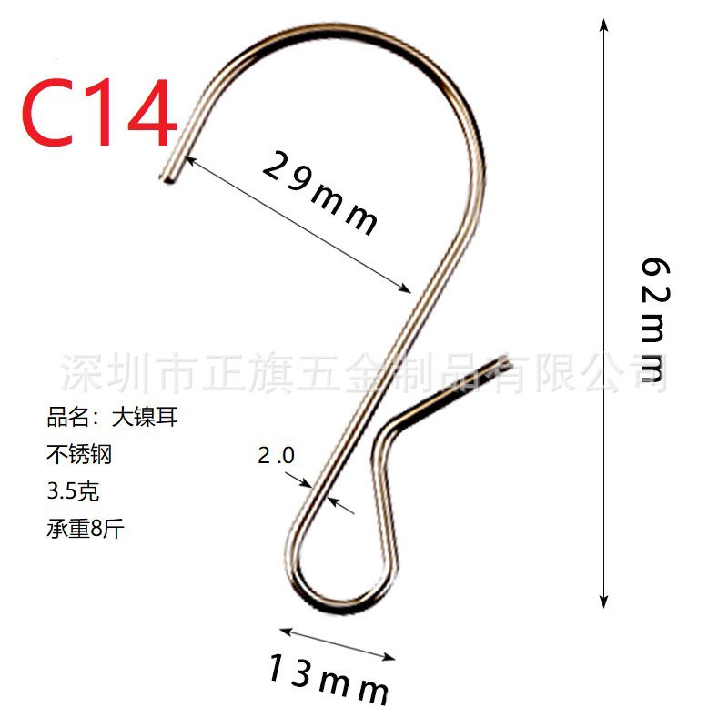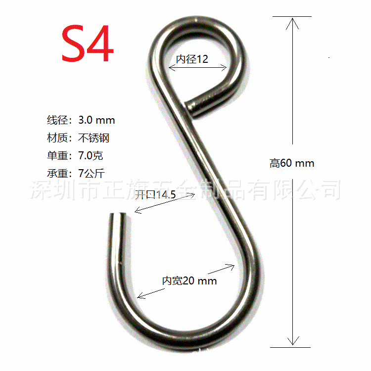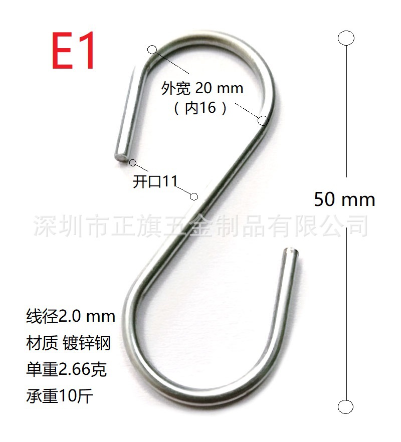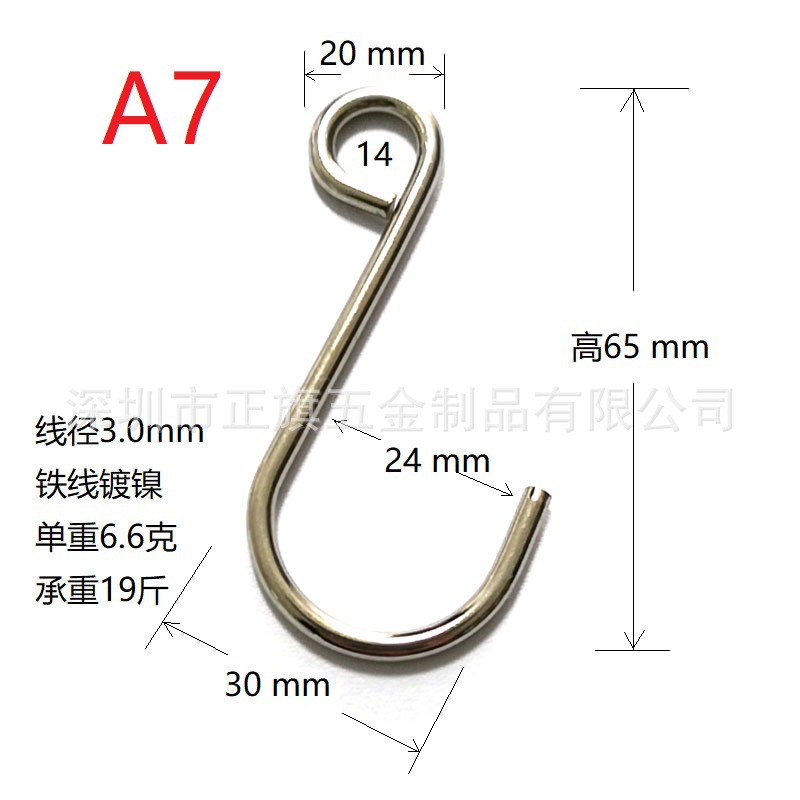 多规格金属S型挂钩 不锈钢挂钩 卫浴窗帘轨道吊钩 圣诞S钩子跨境