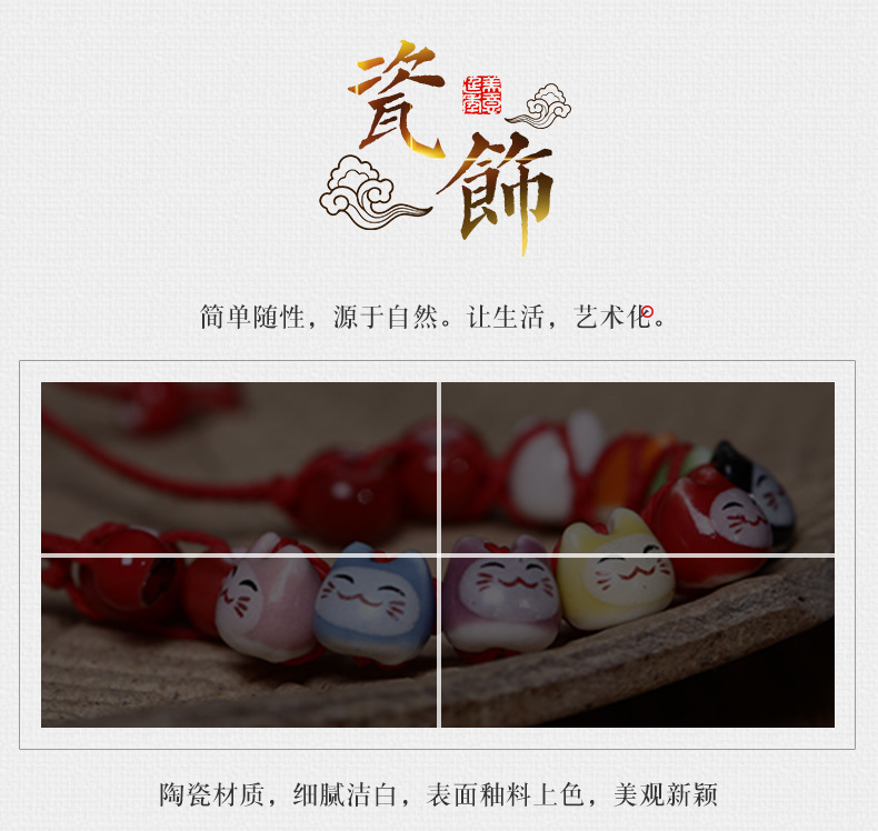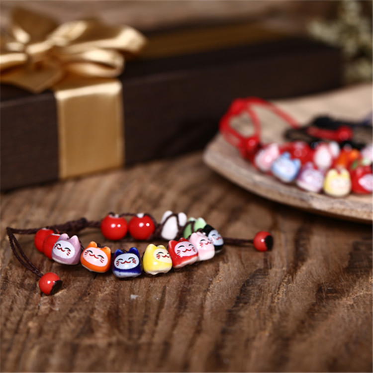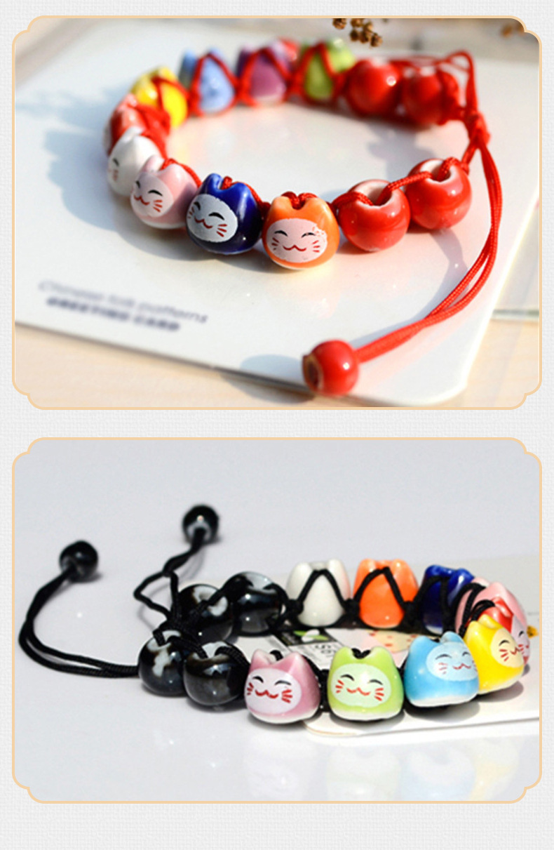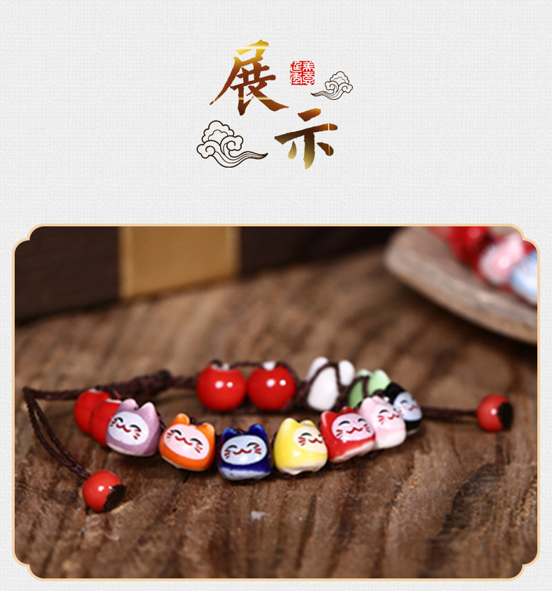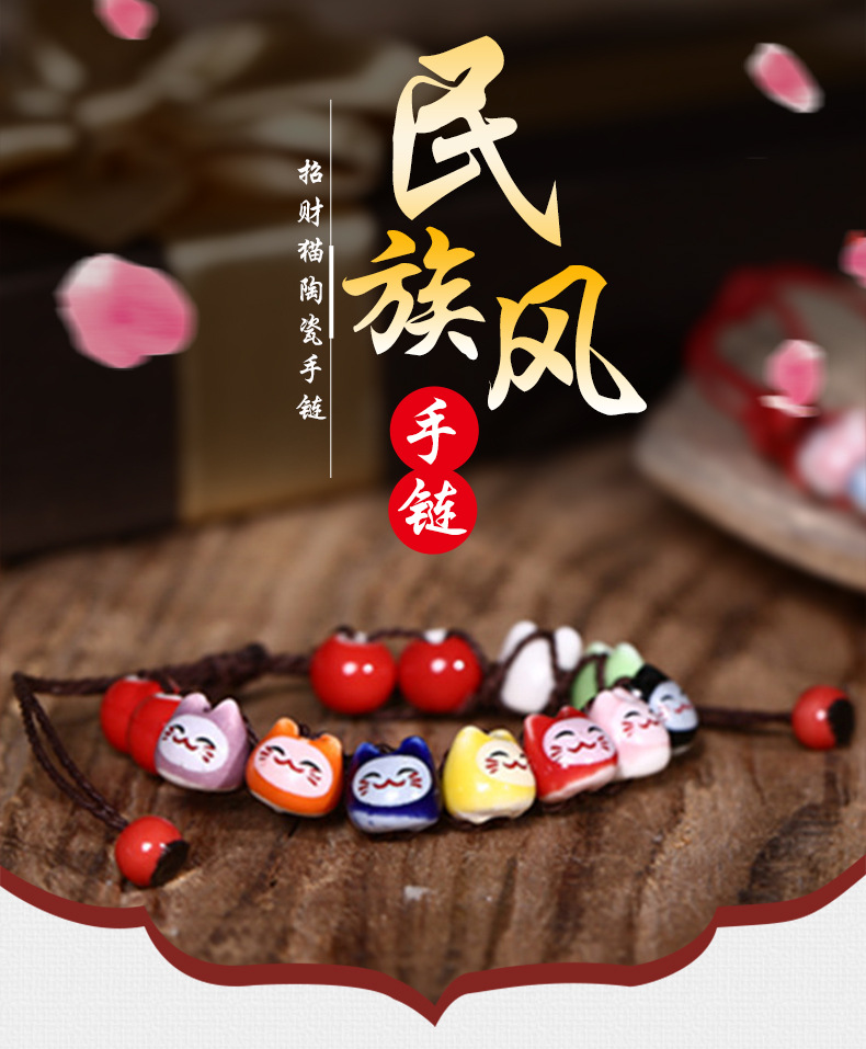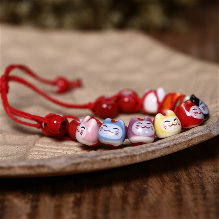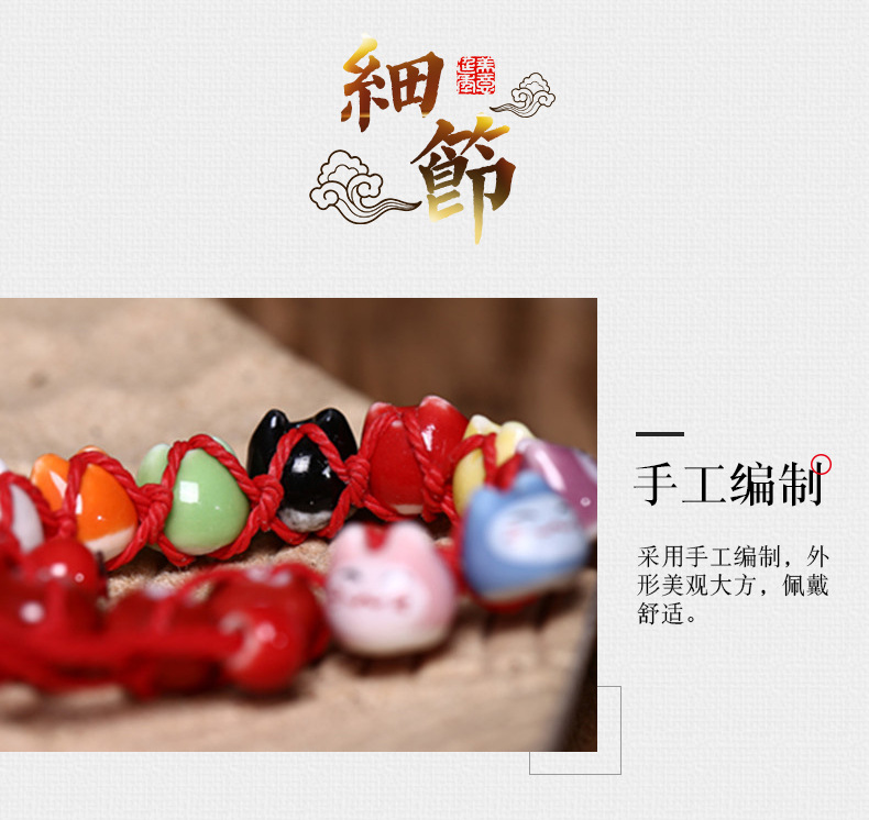 民族风软陶瓷手链 情侣款半手工红绳手串 可爱小清新招财猫手链