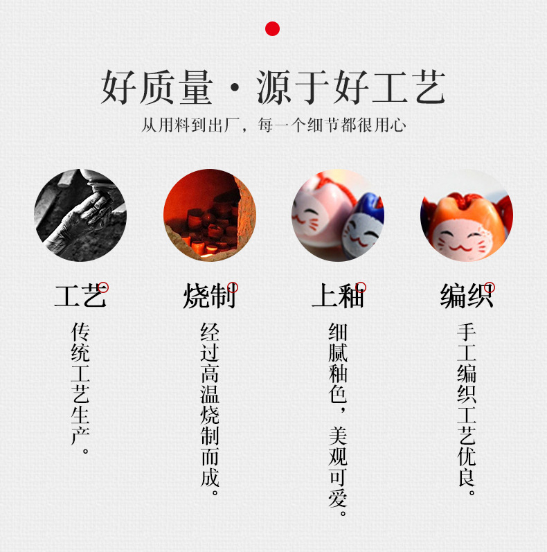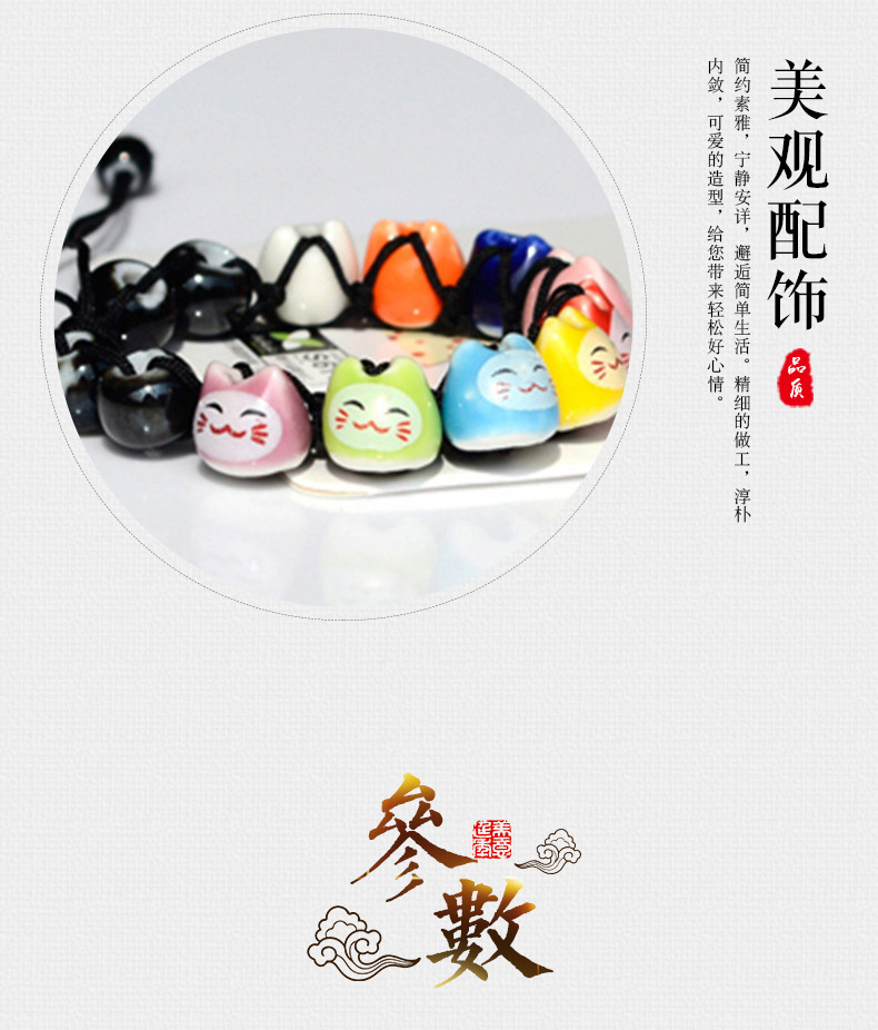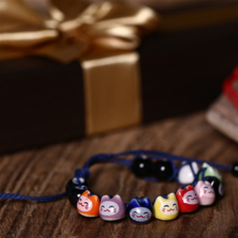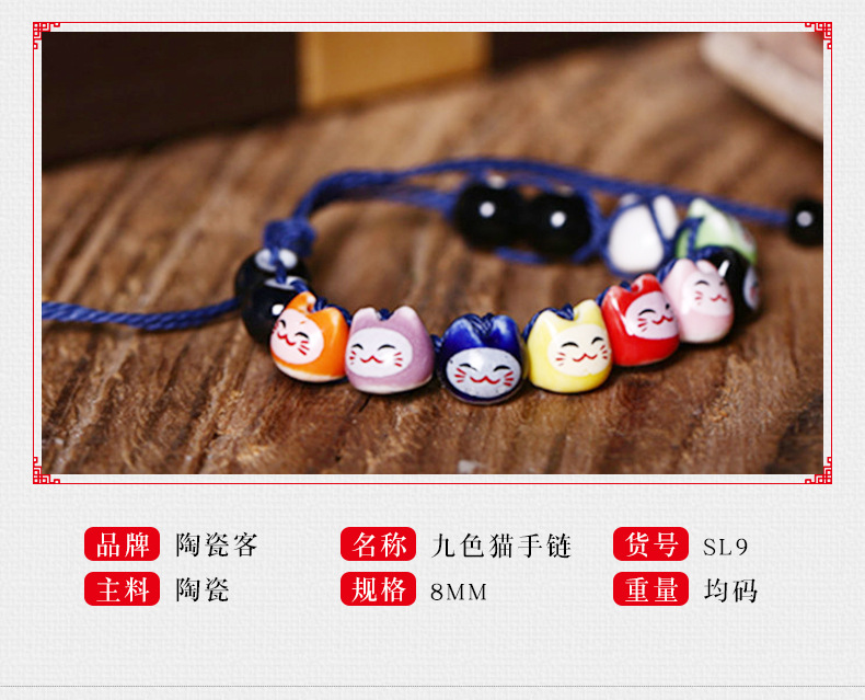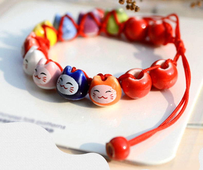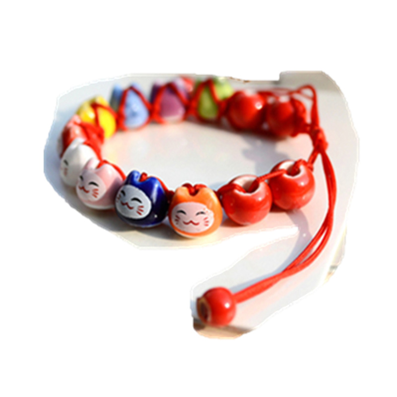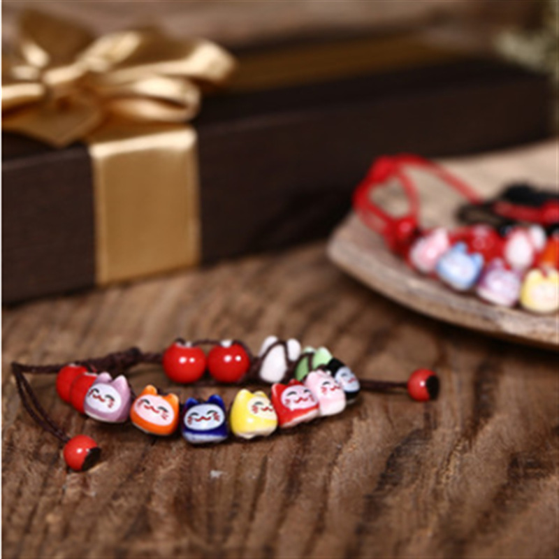 民族风软陶瓷手链 情侣款半手工红绳手串 可爱小清新招财猫手链