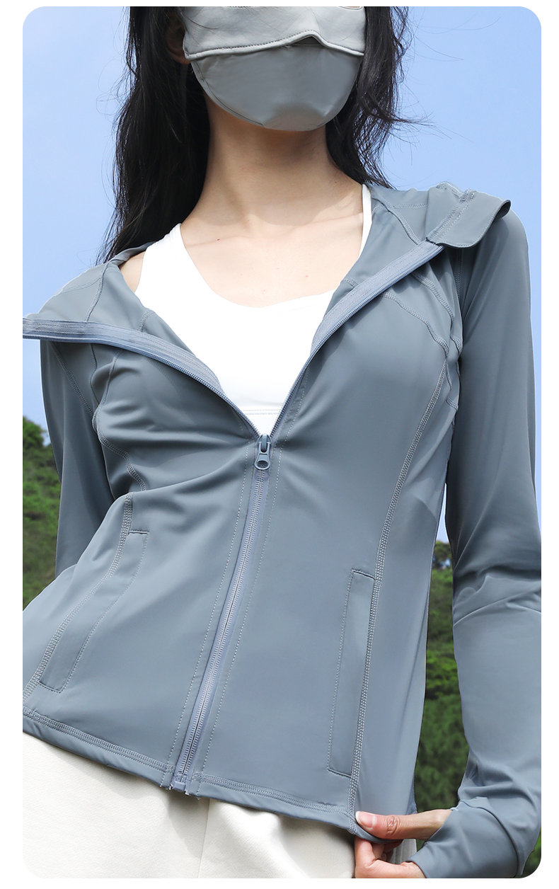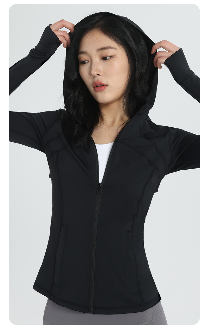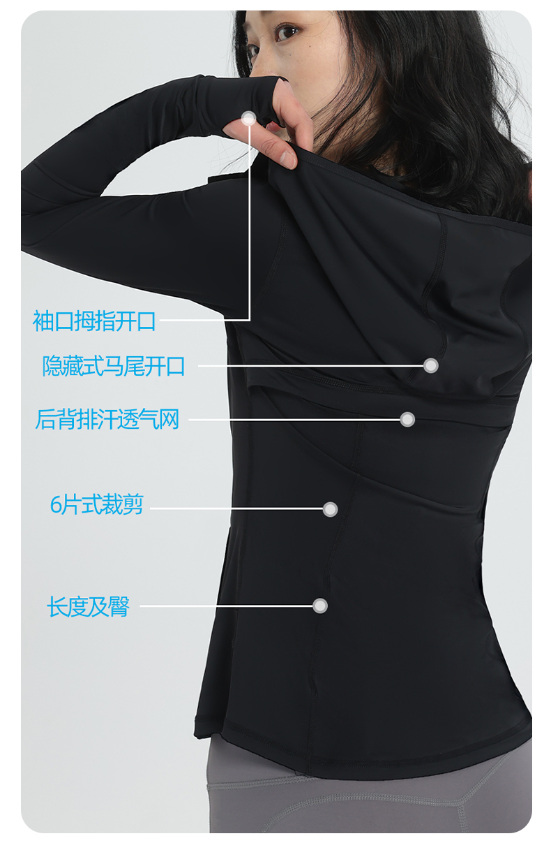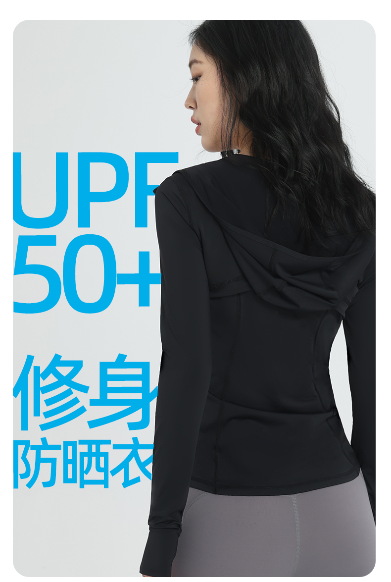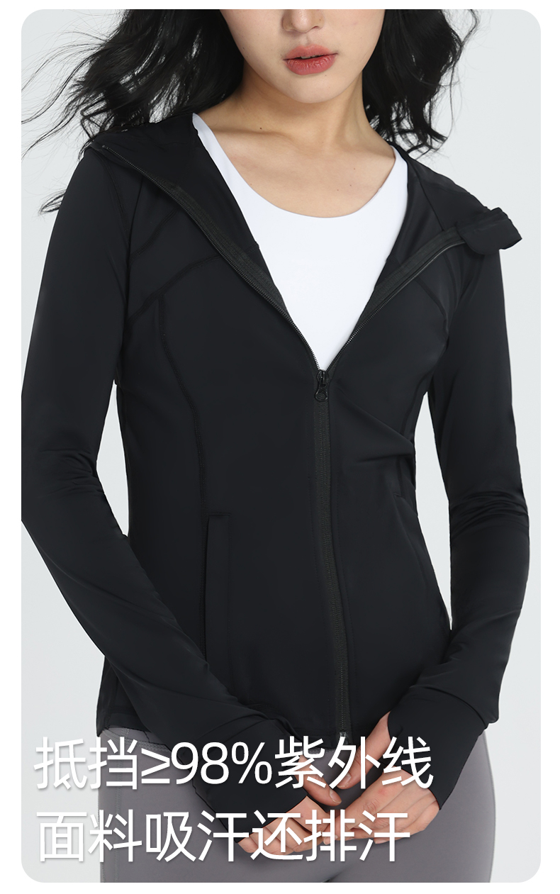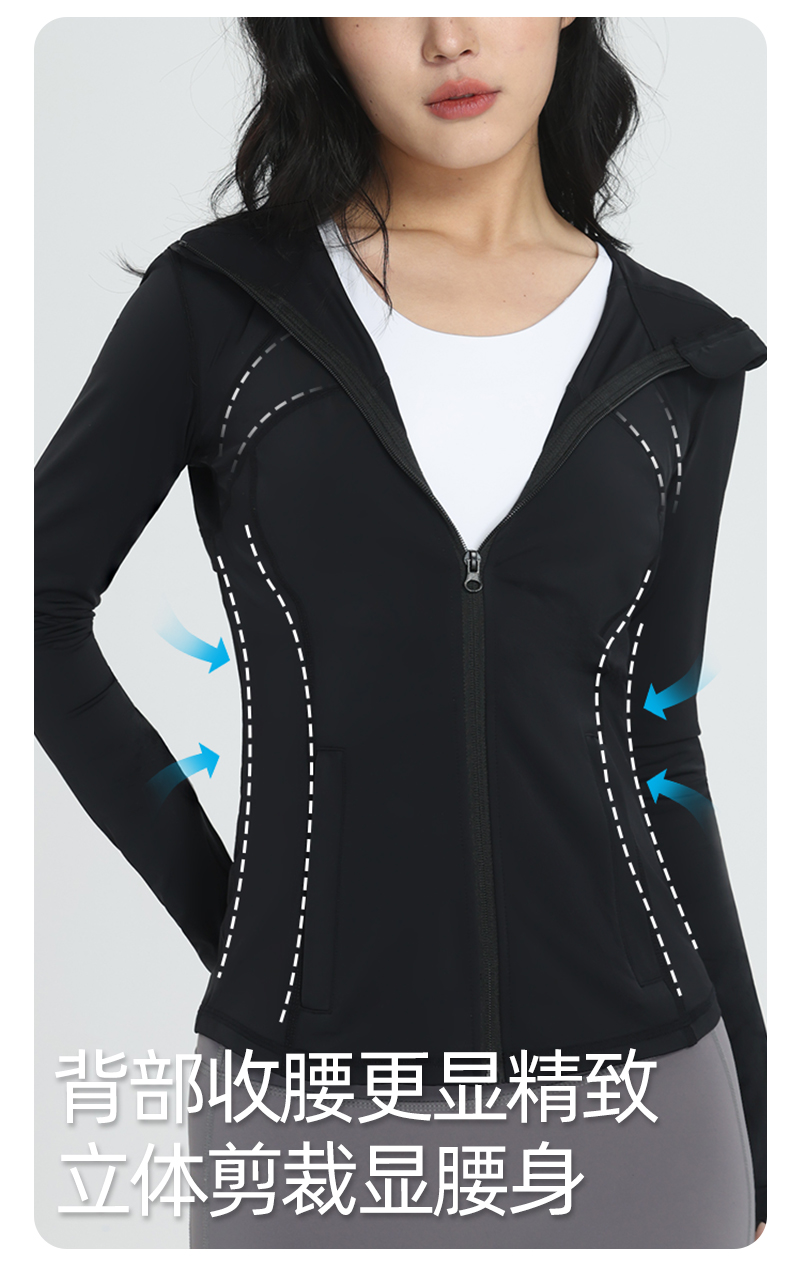 LULU防曬衣收腰防曬開衫外套瑜伽健身服修身防曬服收腰緊身黑色夏