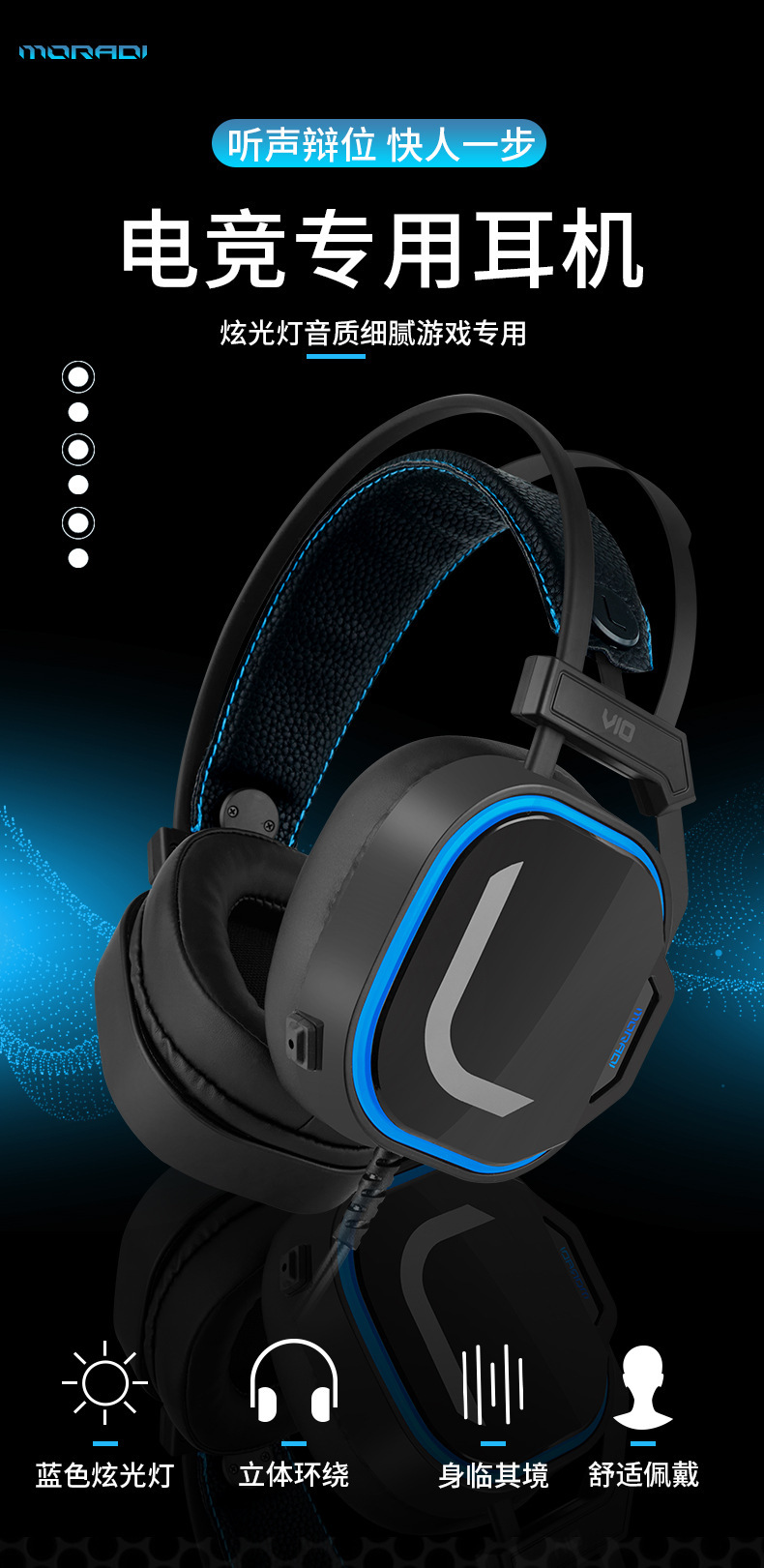 MORADI 魔谛V10耳机带麦头戴式有线重低音笔记本台式电脑游戏耳麦