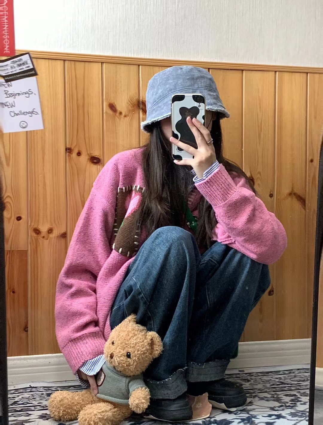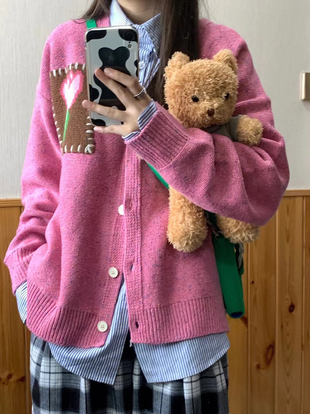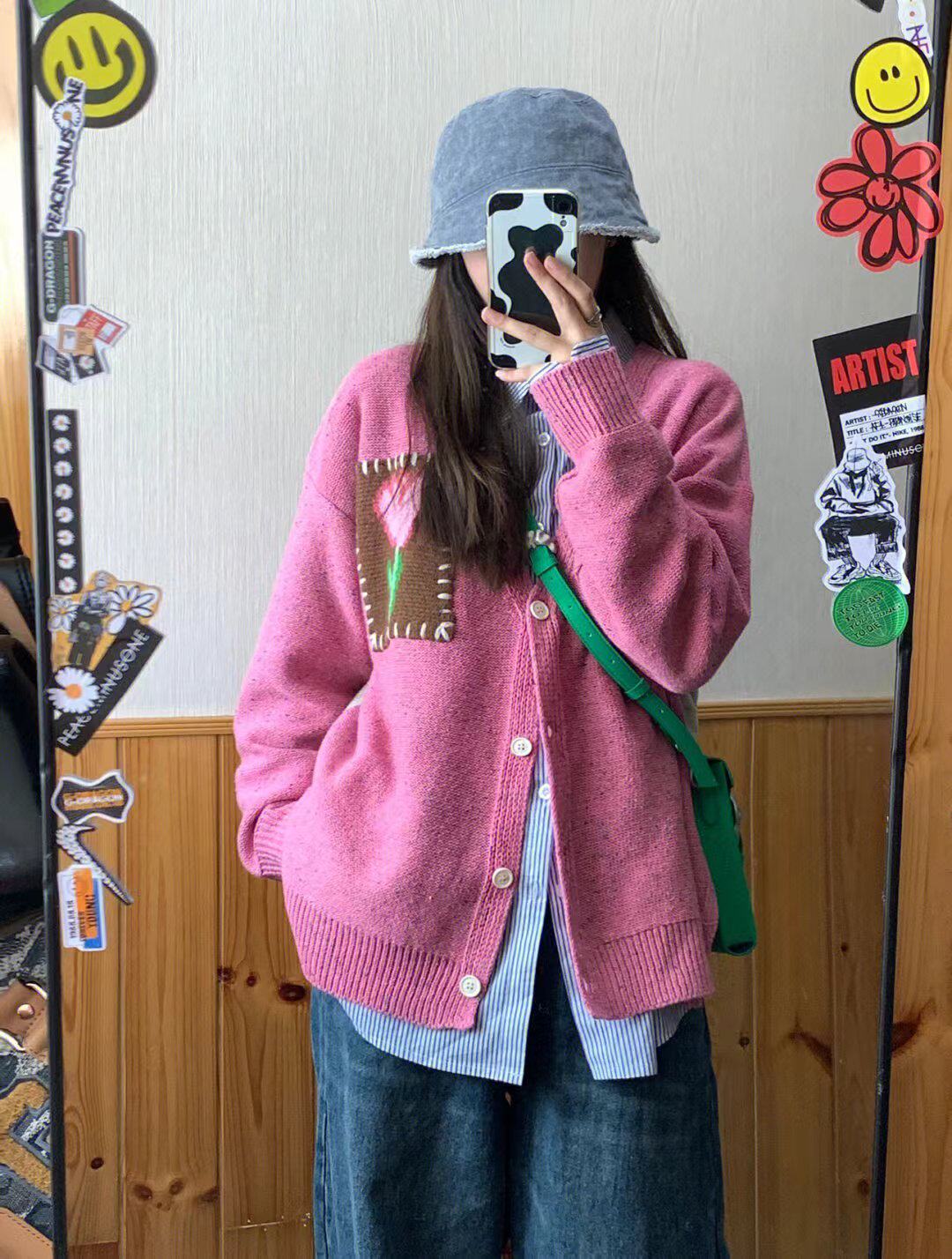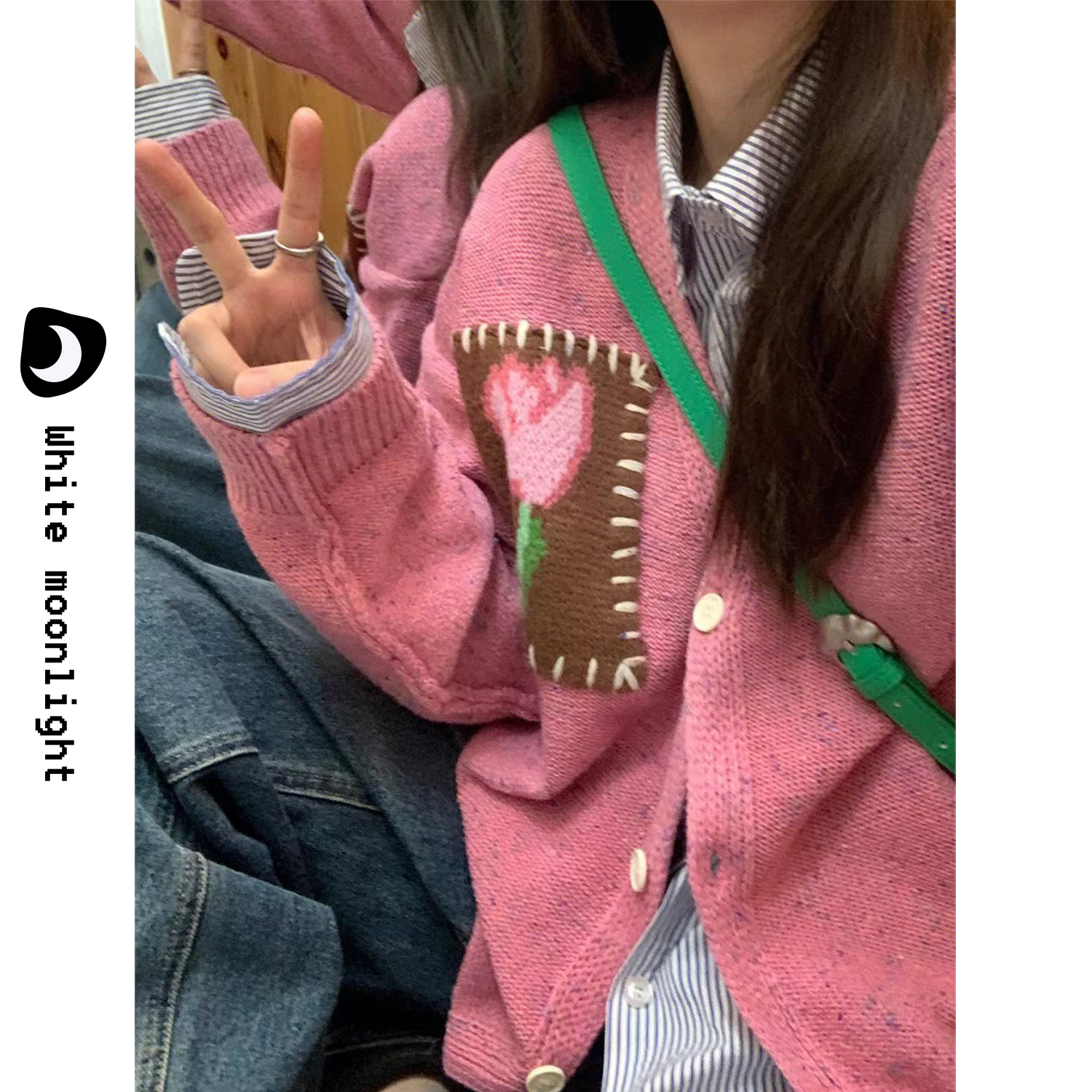 White moonlight|粉色藝術感毛衣設計感小眾女日系慵懶復古外套女