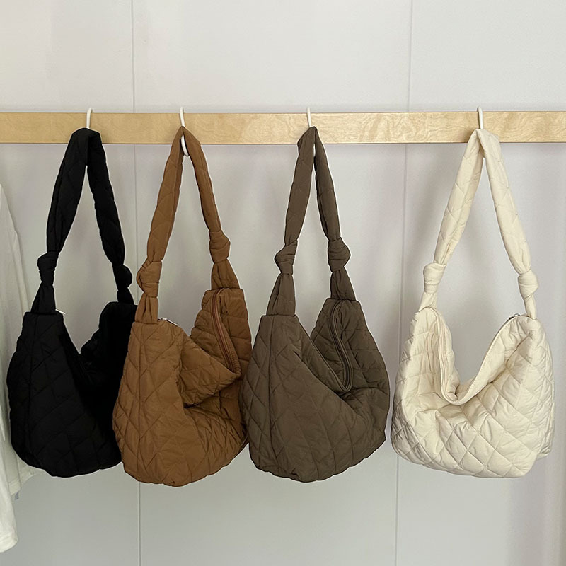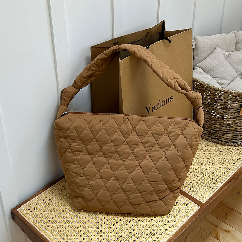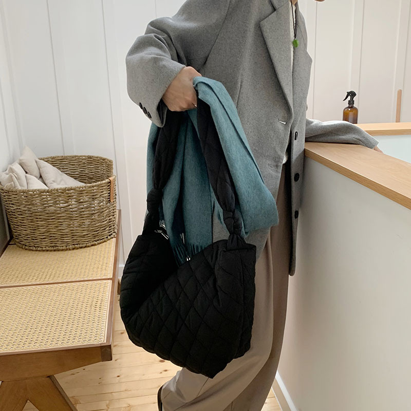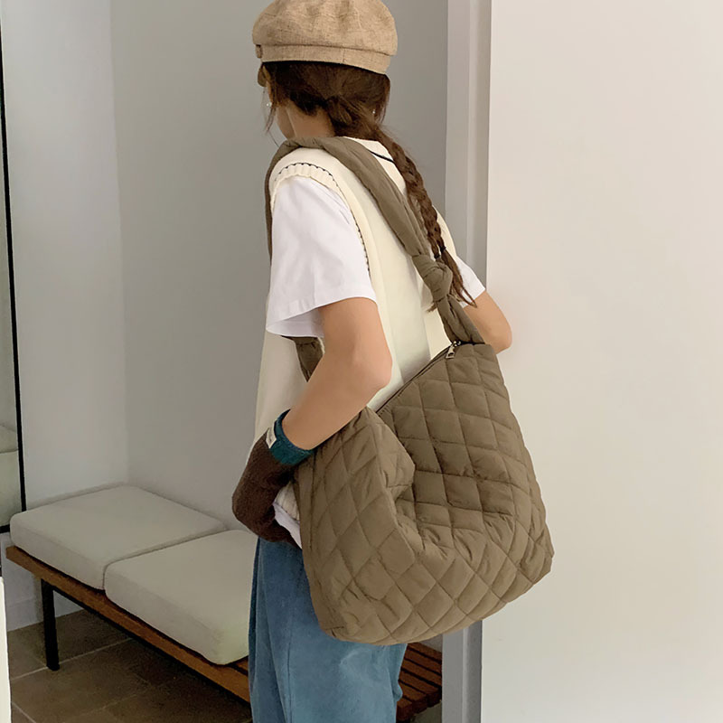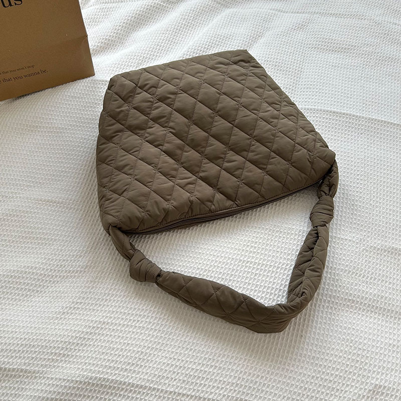 高级简约纯色菱格单肩包包女2023新款韩版休闲百搭通勤手提托特包