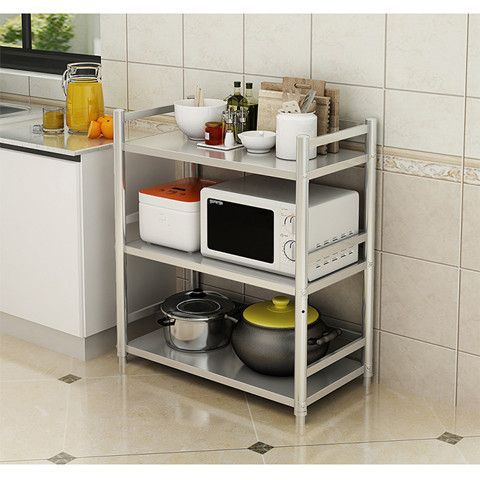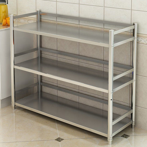 不锈钢厨房置物架带围栏3层4微波炉烤箱架多层收纳架家用储物架子