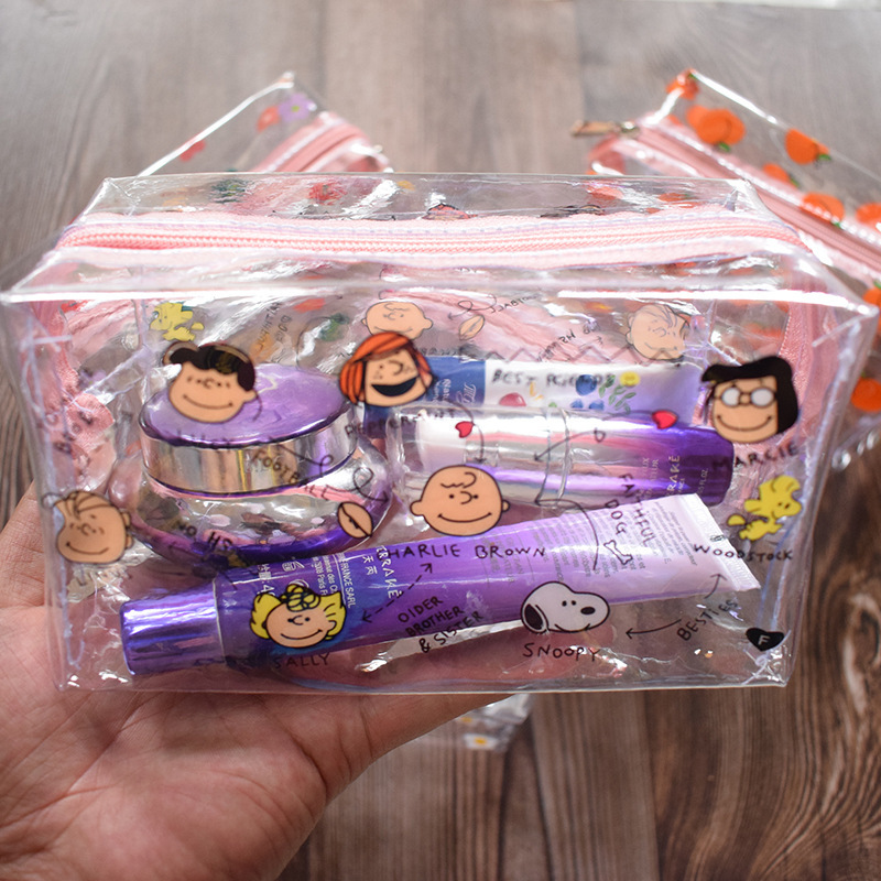 日系韩系透明防水PVC防水化妆包查理史努比卡通INS风大容量少女包