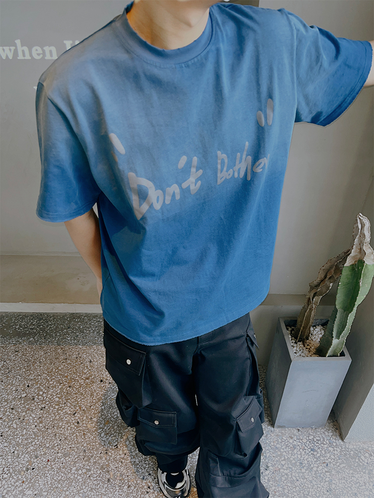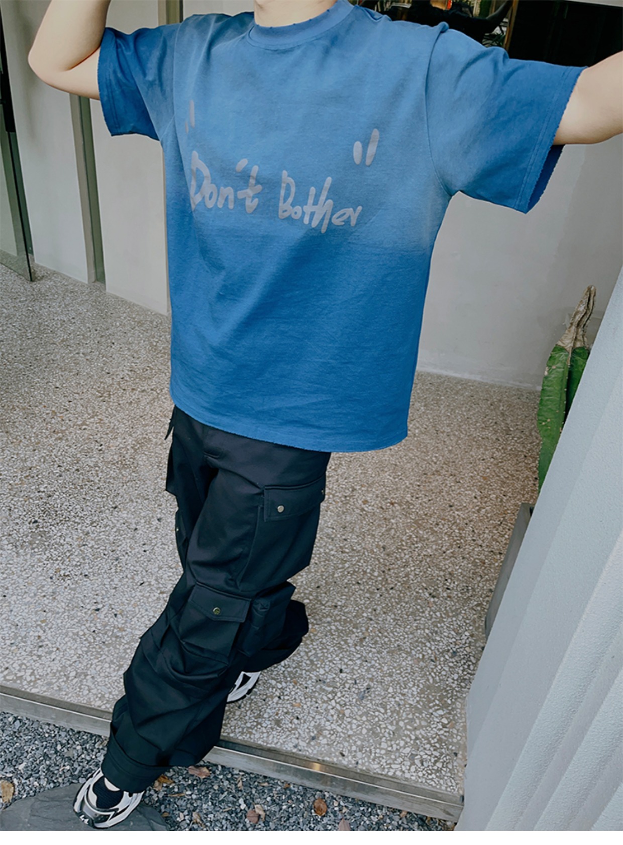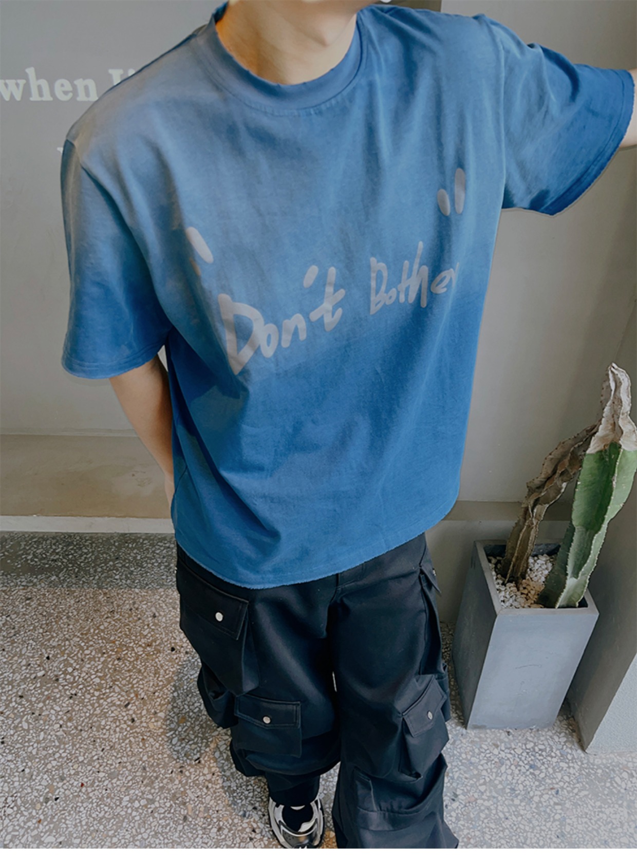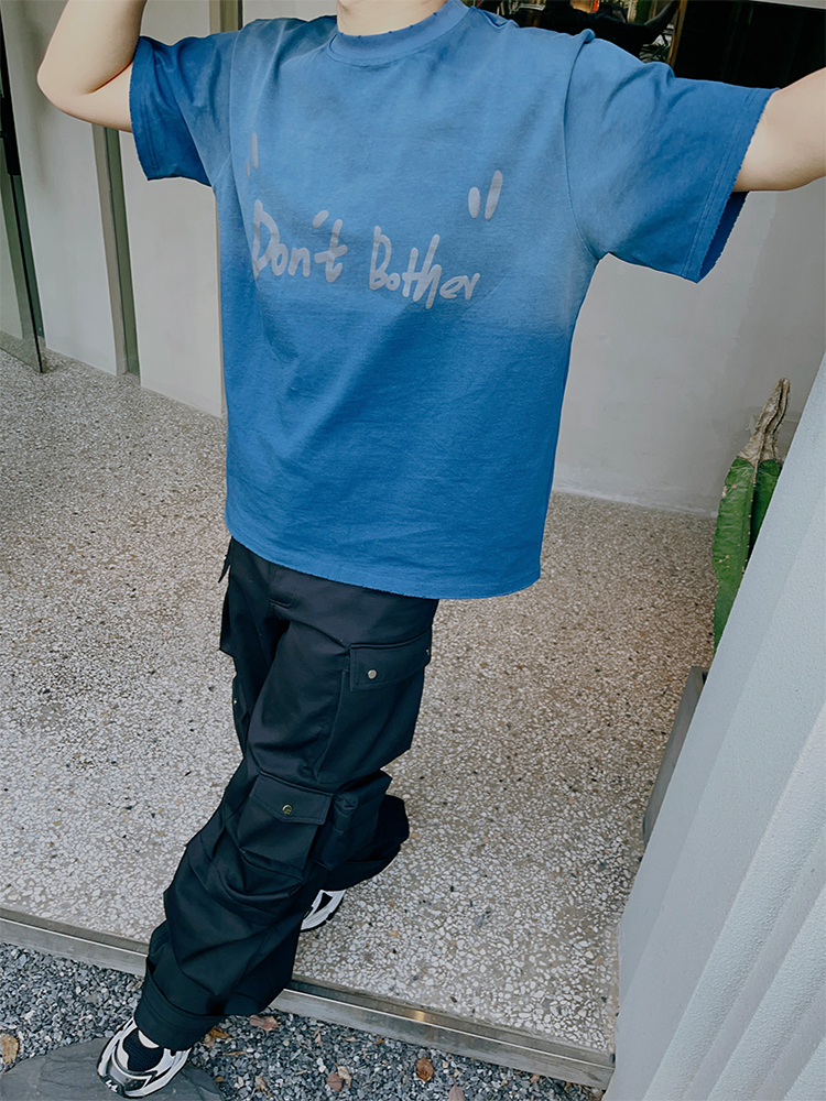 「Rabbit.b」KINETIC重磅水洗藍立體標語印花短袖美式復古休閒T恤