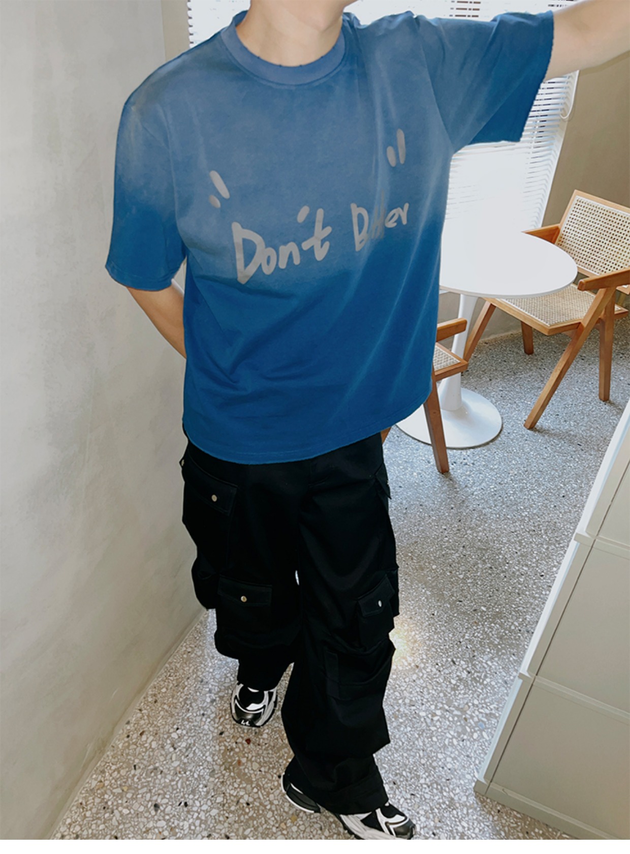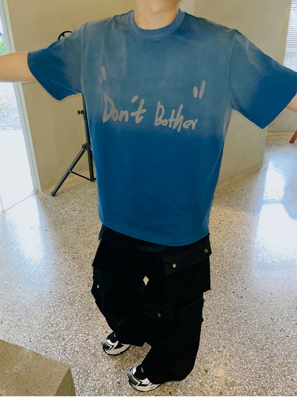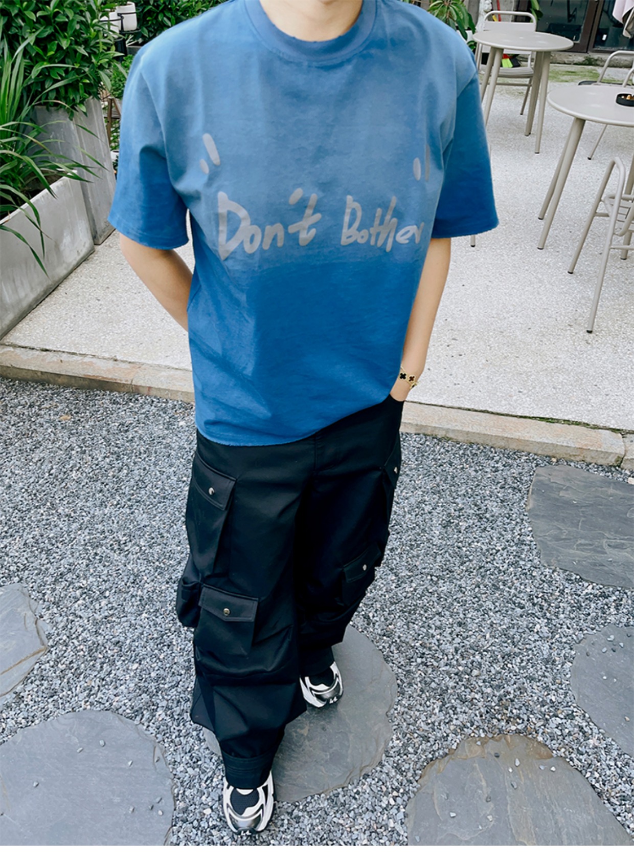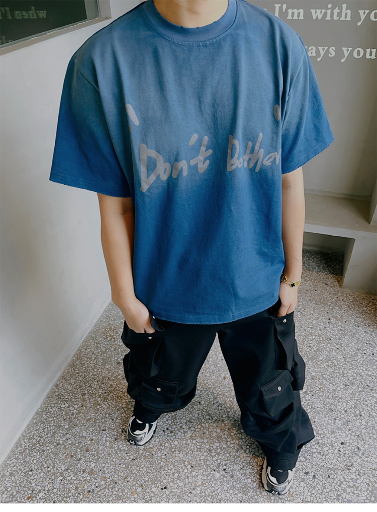 「Rabbit.b」KINETIC重磅水洗藍立體標語印花短袖美式復古休閒T恤