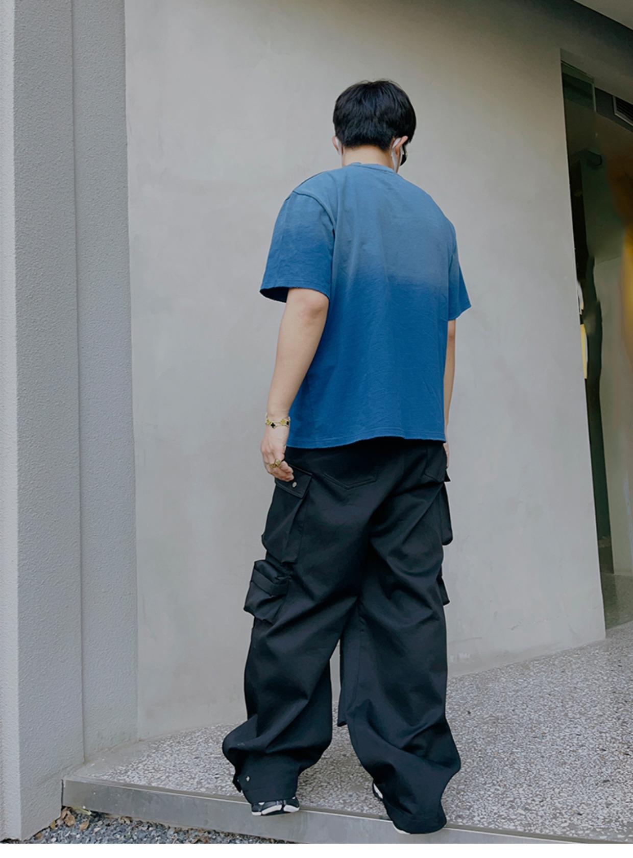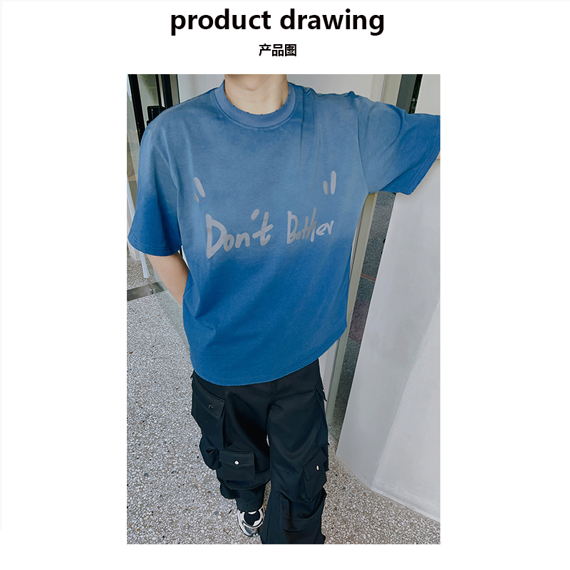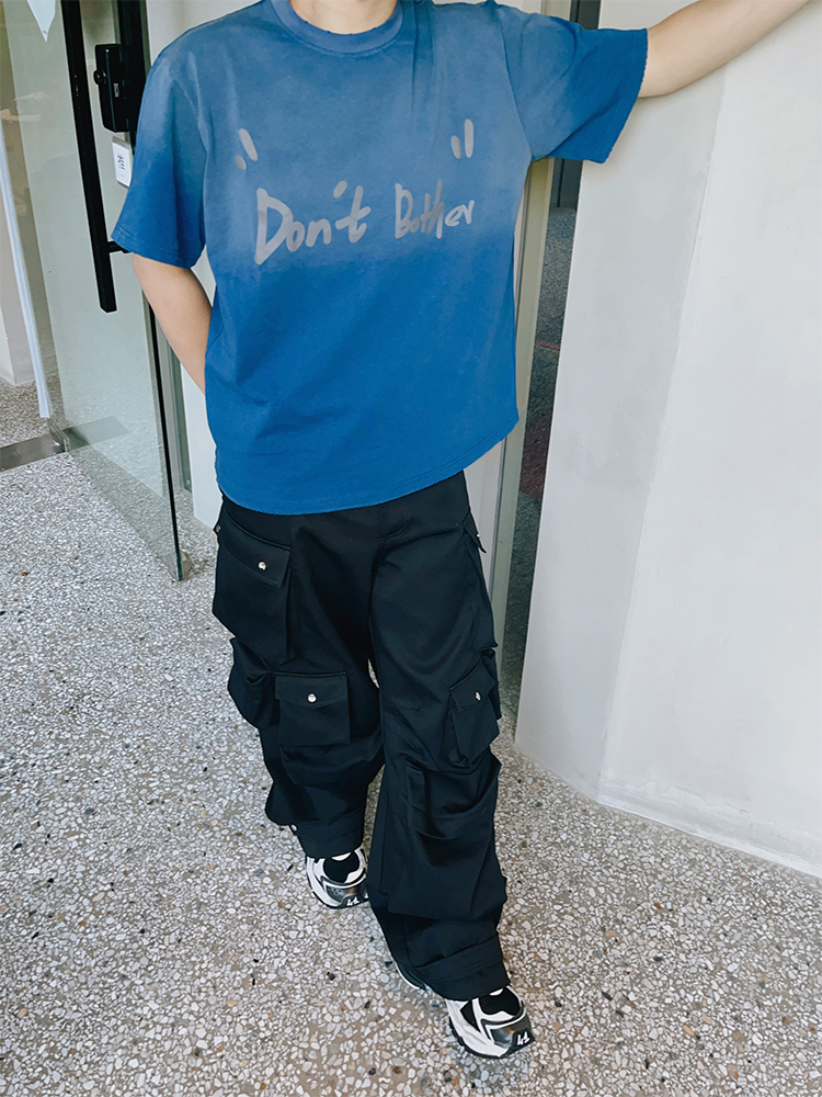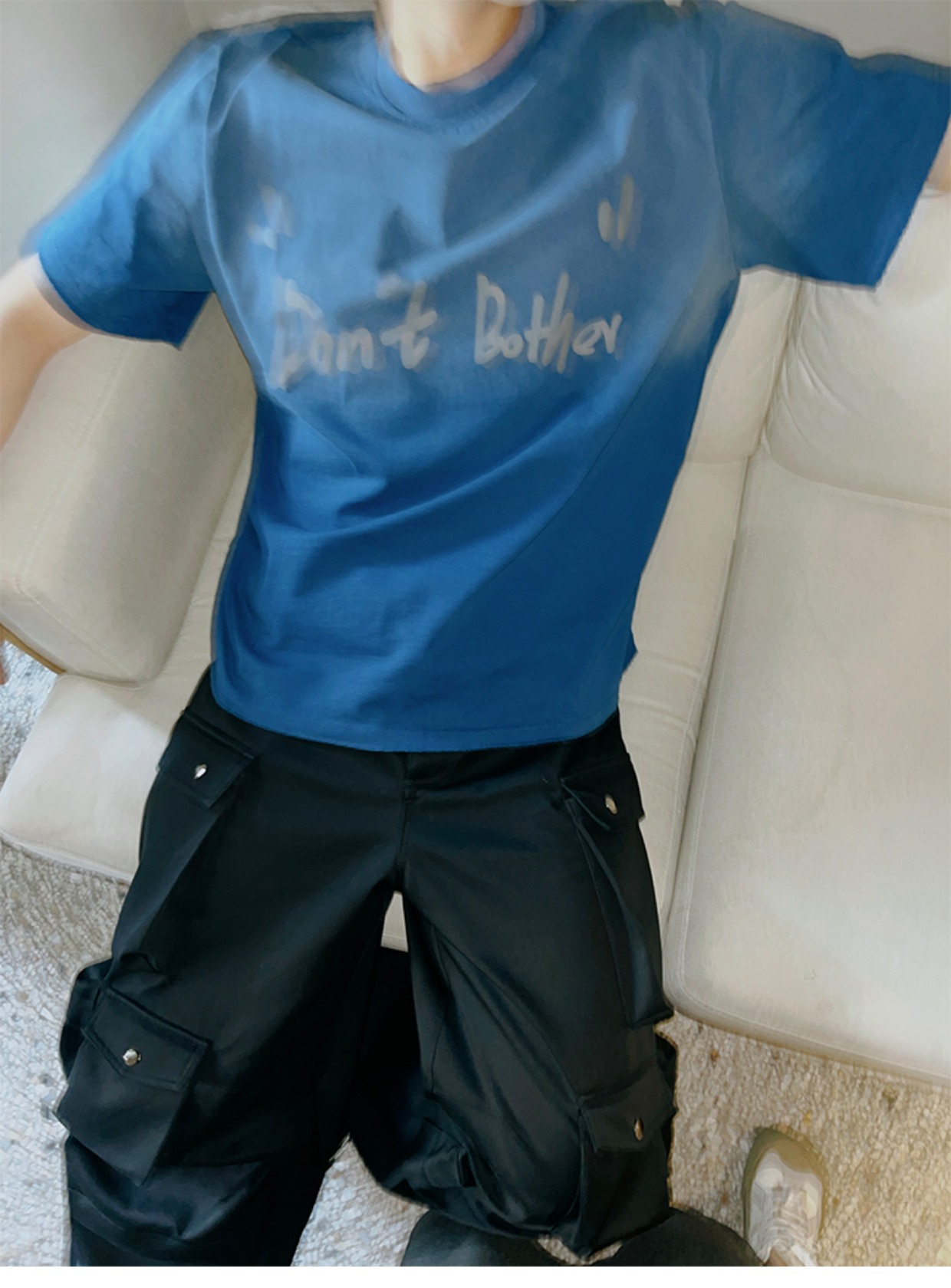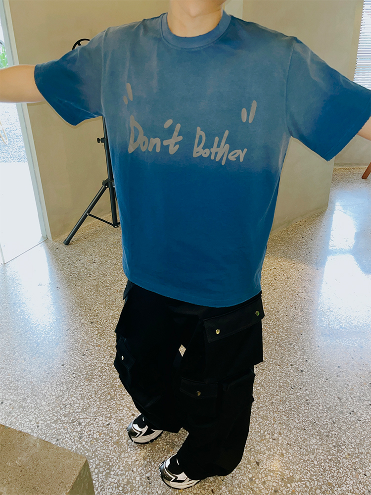 「Rabbit.b」KINETIC重磅水洗藍立體標語印花短袖美式復古休閒T恤
