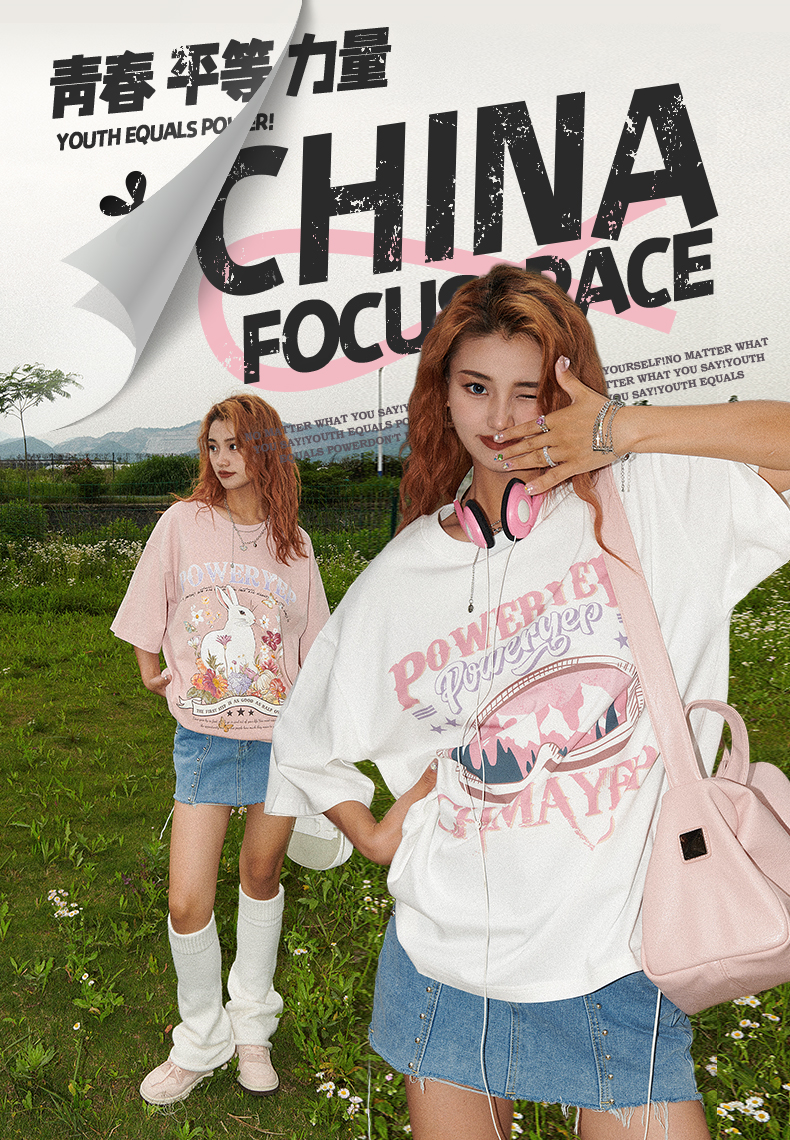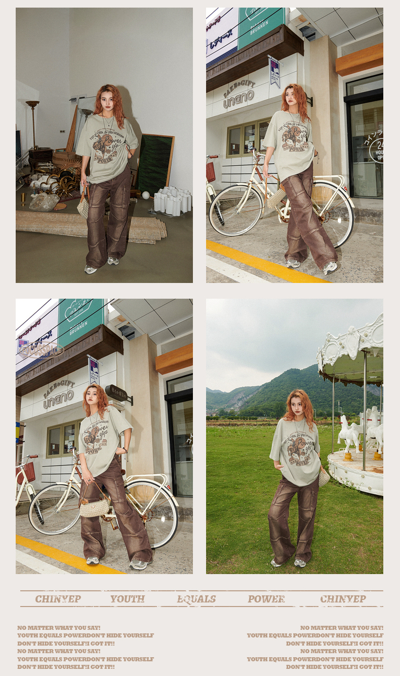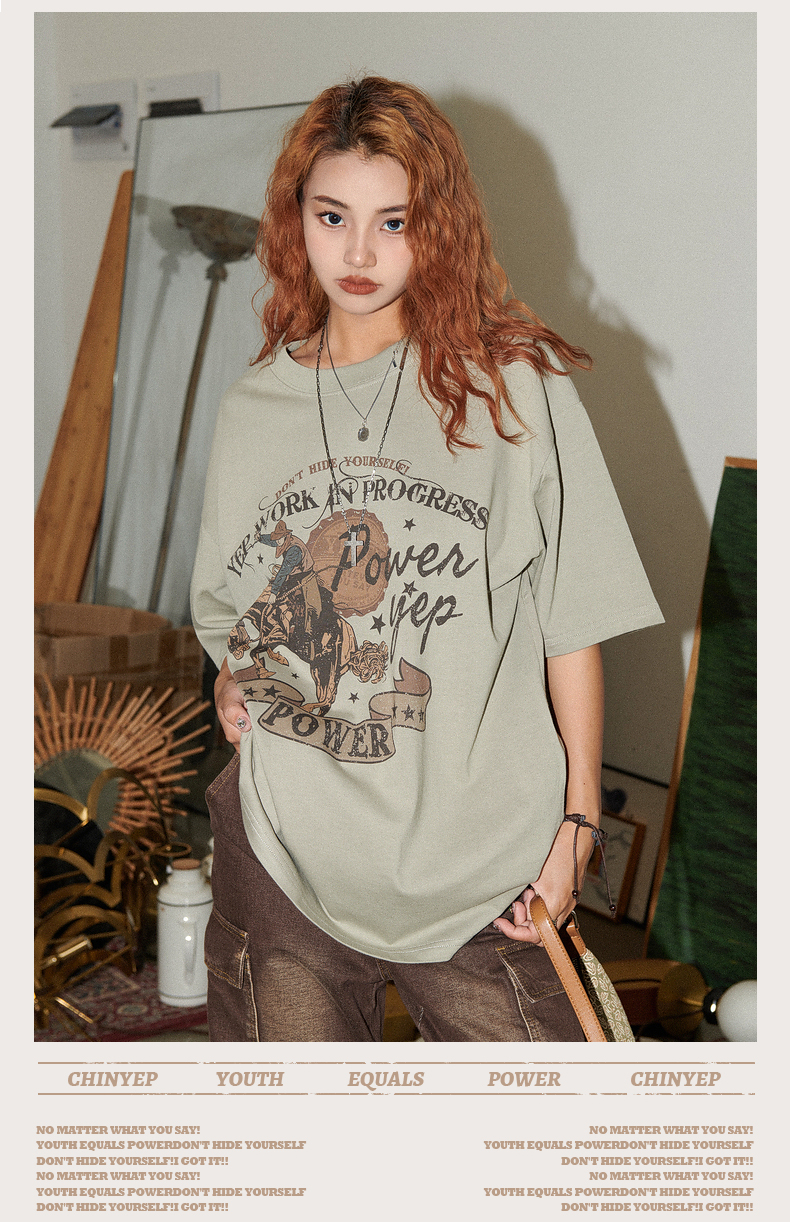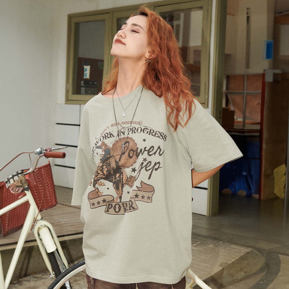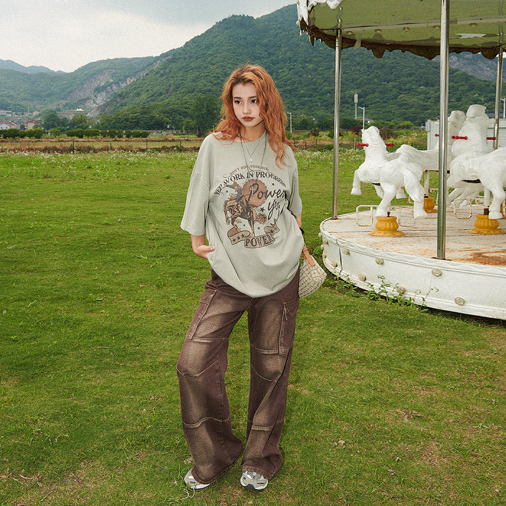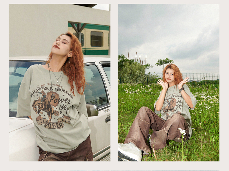 焦點美式復古短袖t恤女夏季ins潮牌oversize設計感寬鬆上衣果綠色