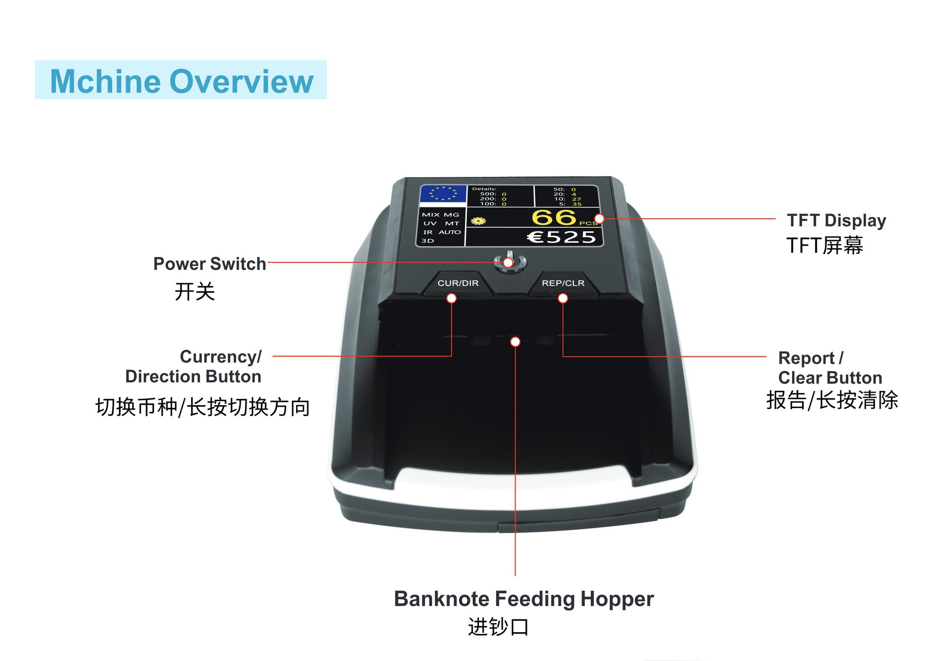 此款为高端TFT屏多国货币可混点验钞机,可验币种包括:美元、欧元、英镑、法郎、巴西、卢布等,加币种需要增加一定的费用,请联系客服咨询!