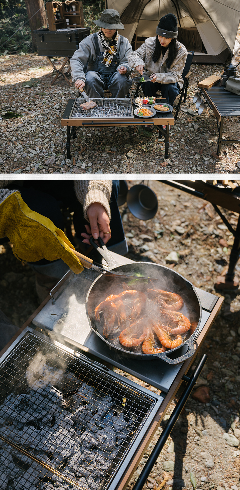 顏色分類 鋁合金+櫸木 黑色(鋁合金版) 不鏽鋼烤架-小號 卡式爐. 方折*1+暮望黑色*2