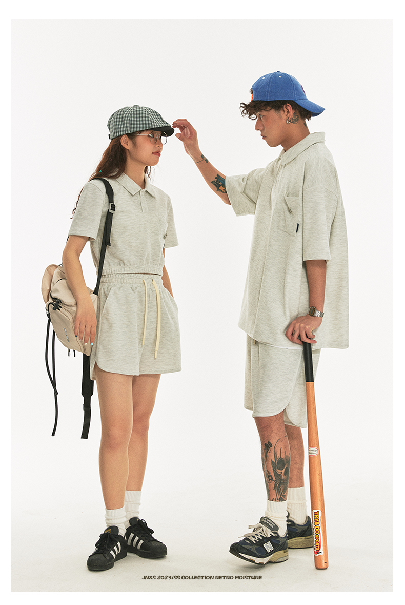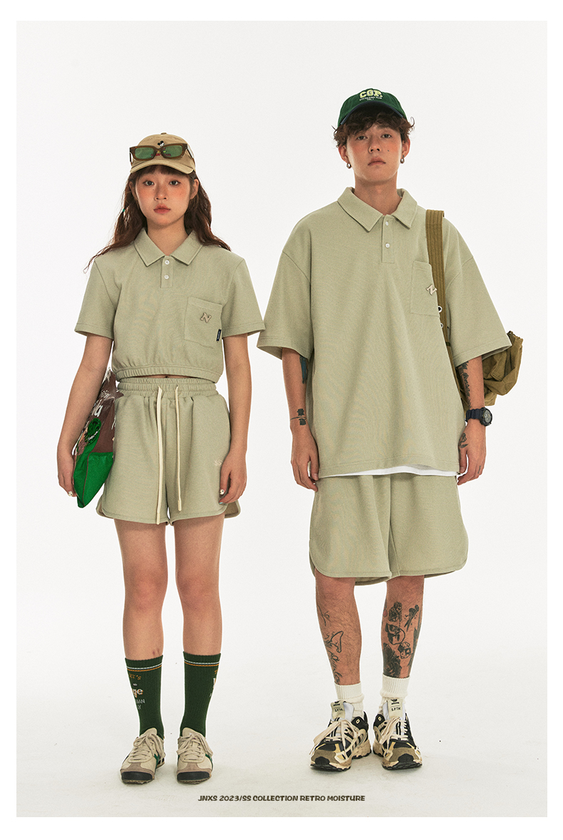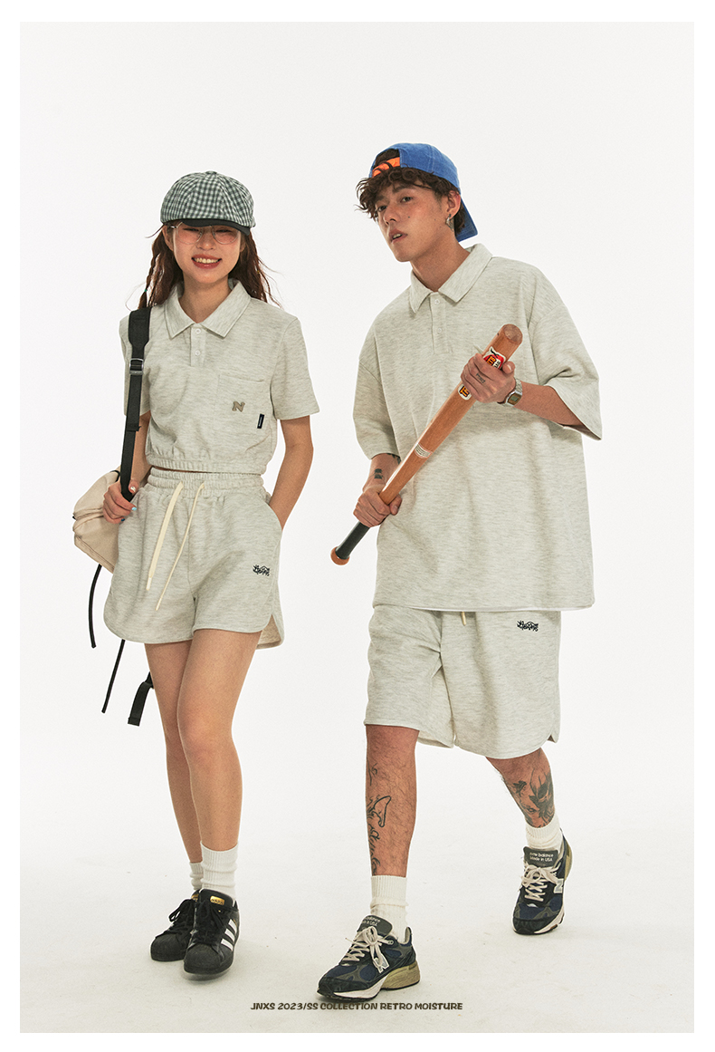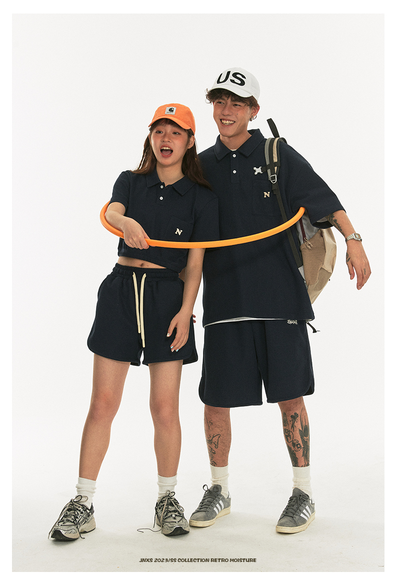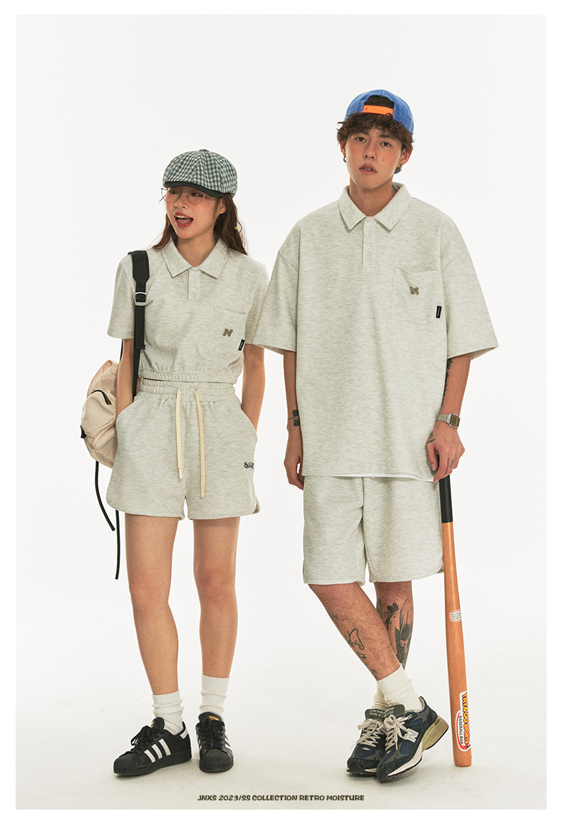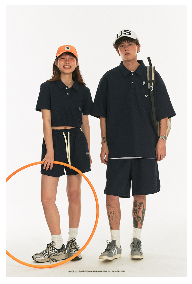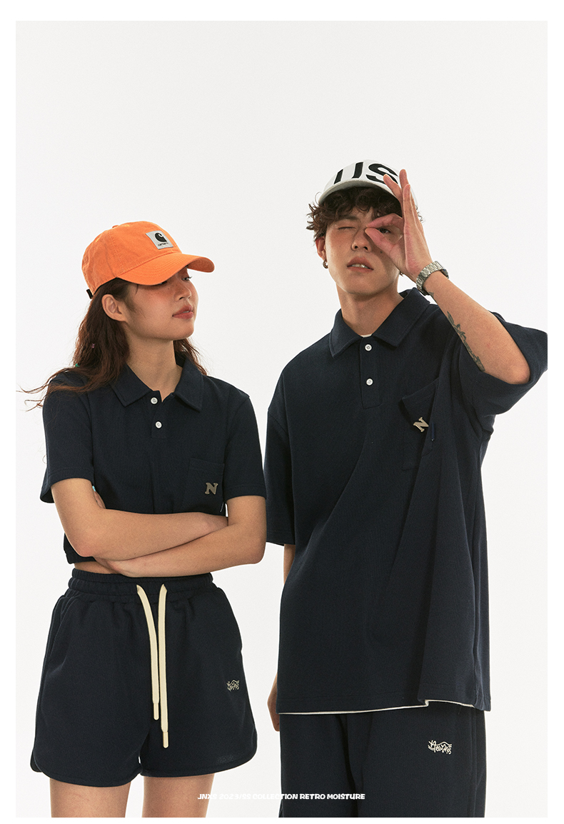 江南先生美式復古polo領短袖T恤男女夏季潮牌情侶裝辣妹風短款tee