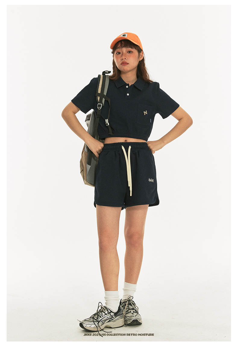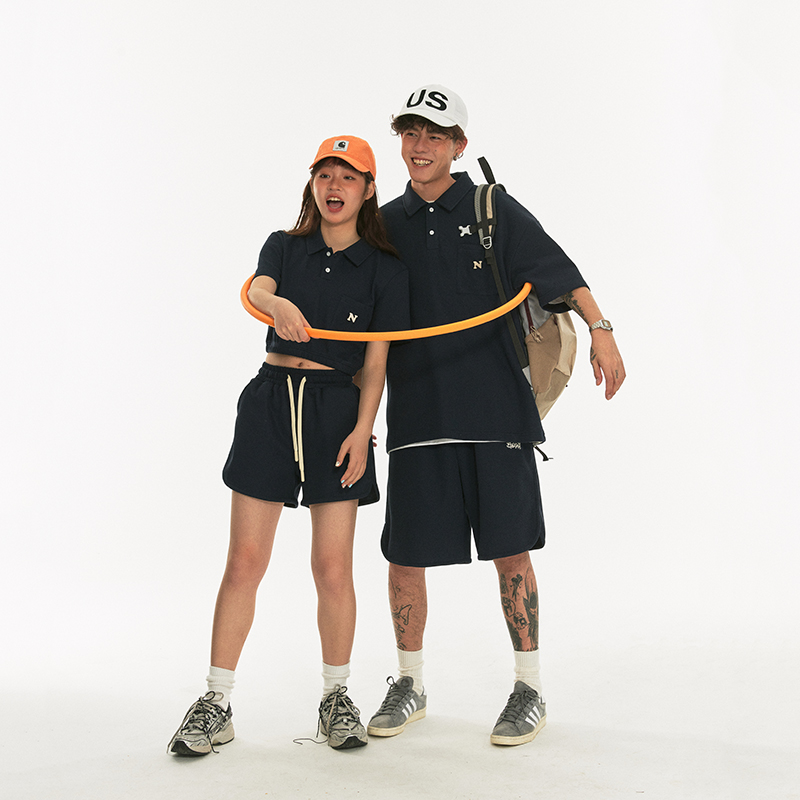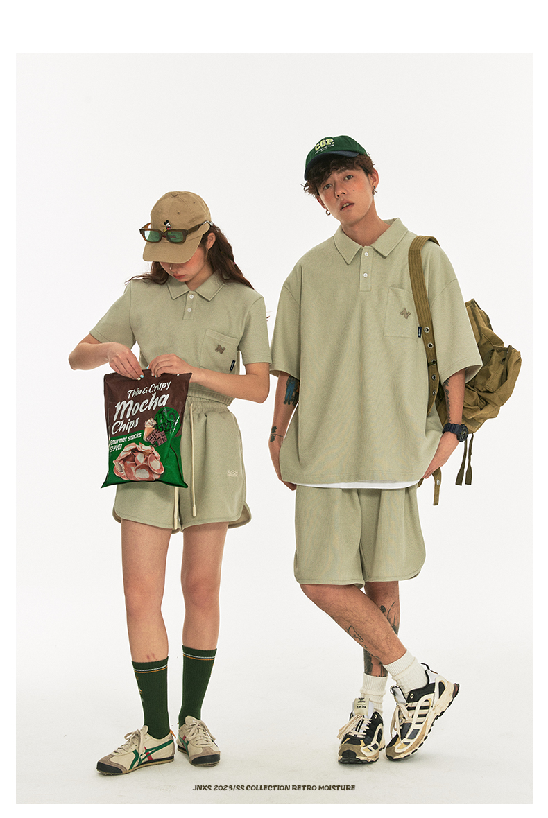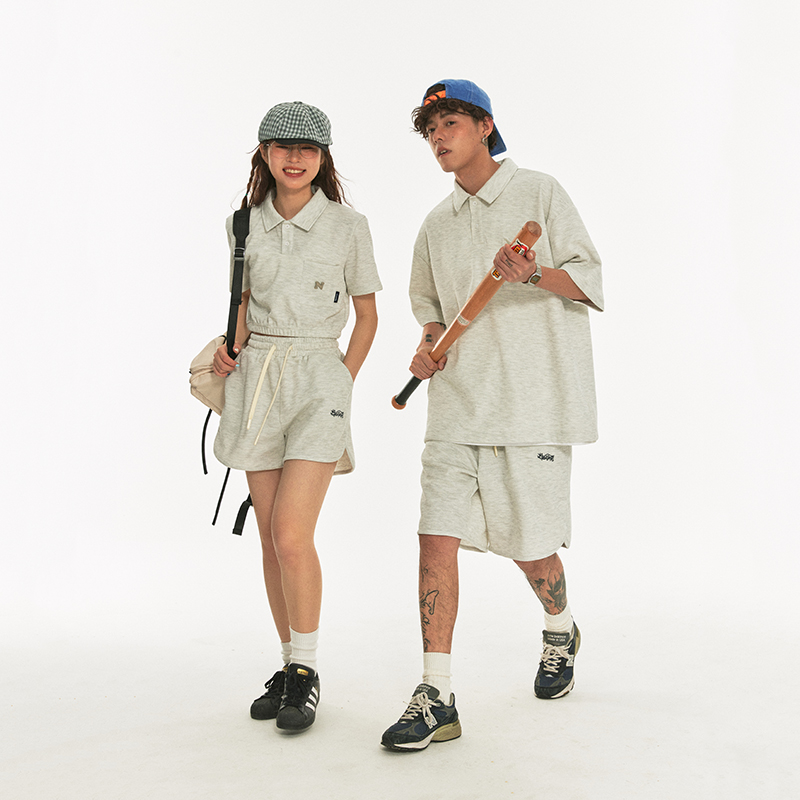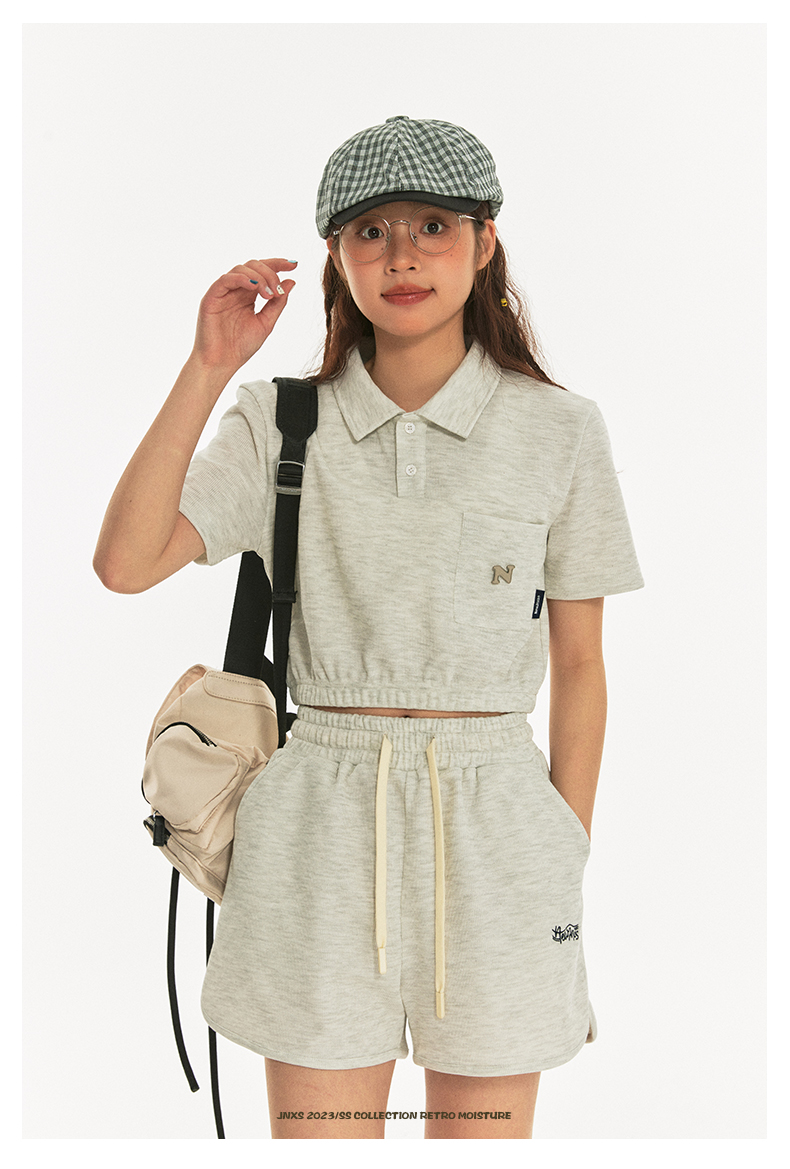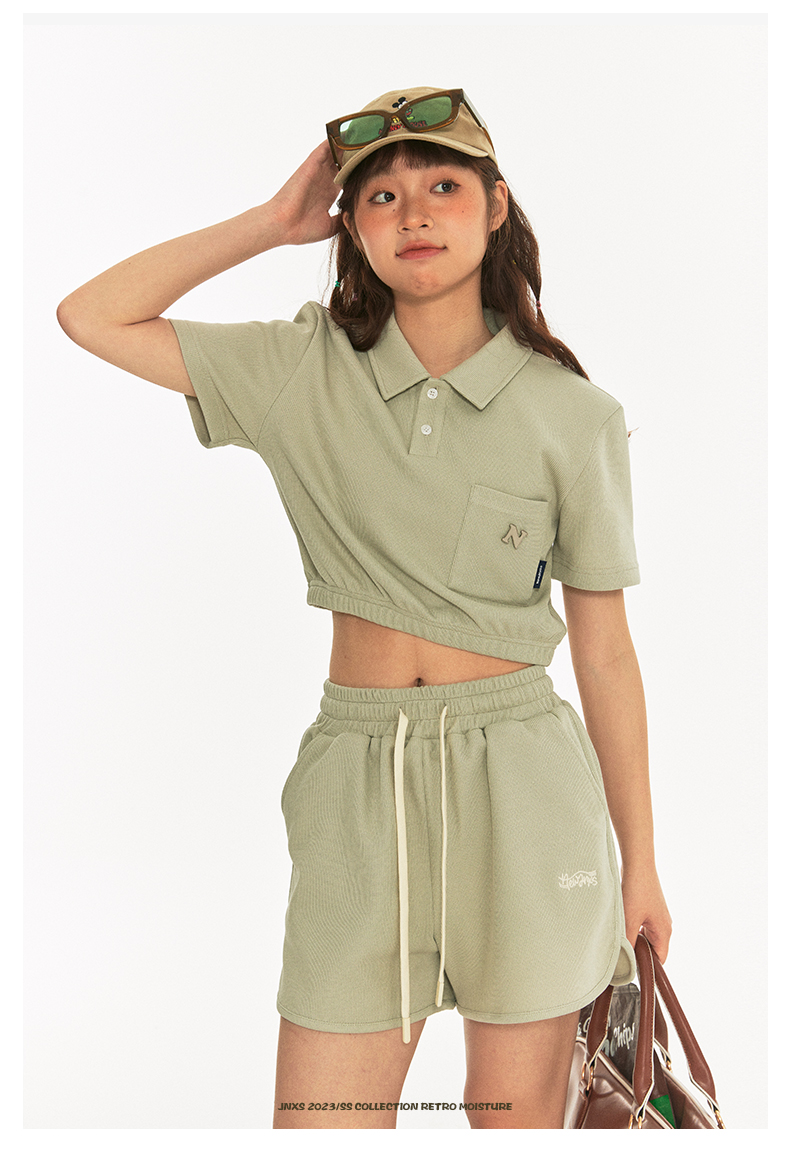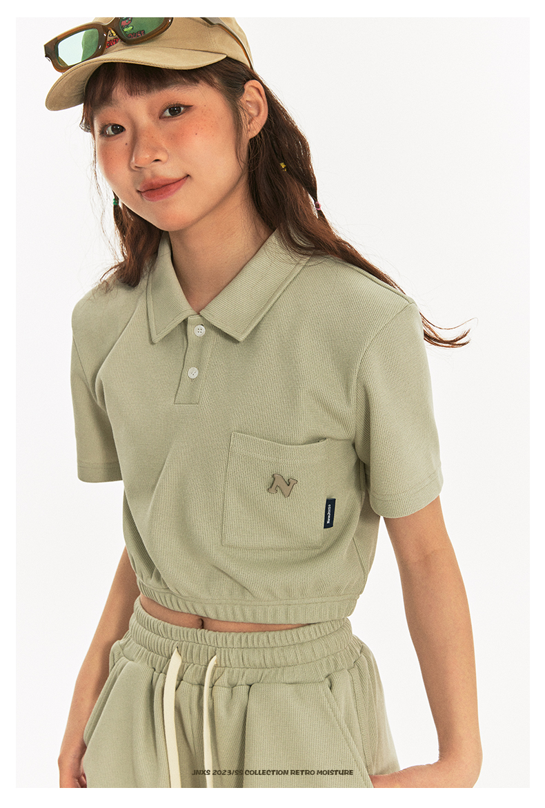 江南先生美式復古polo領短袖T恤男女夏季潮牌情侶裝辣妹風短款tee