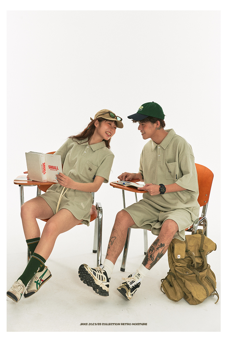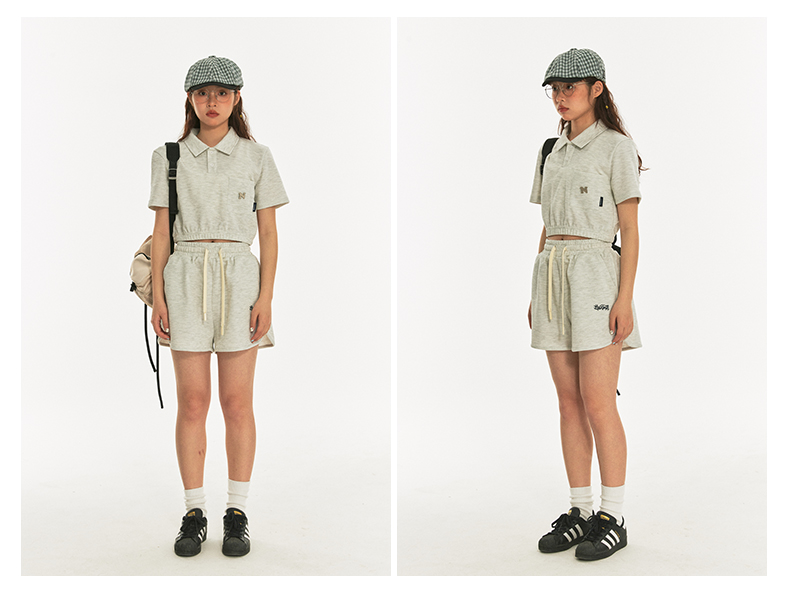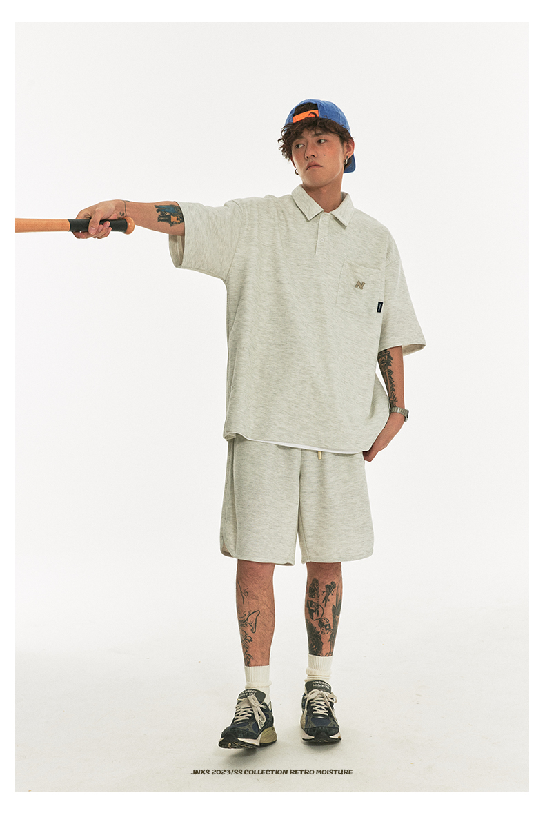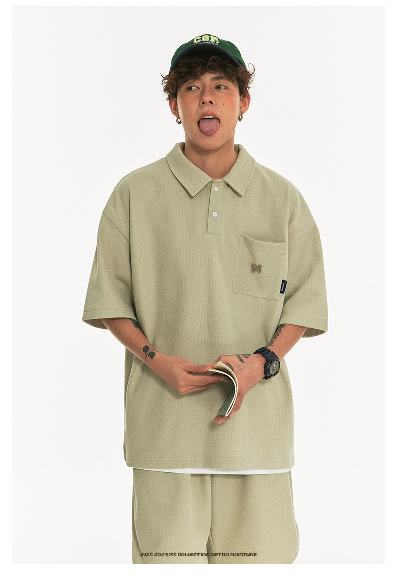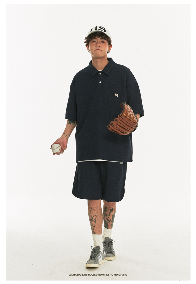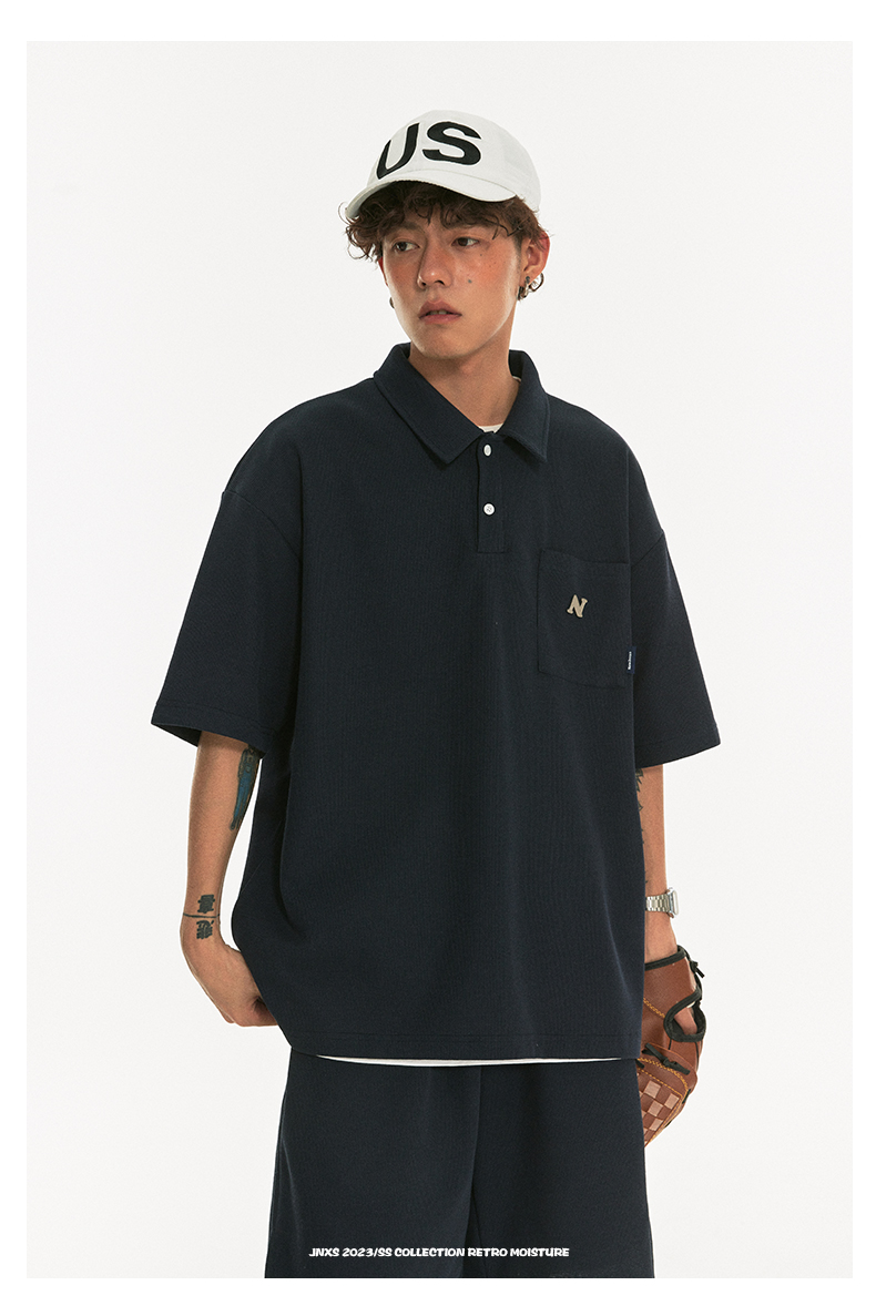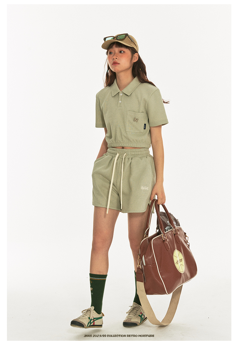 江南先生美式復古polo領短袖T恤男女夏季潮牌情侶裝辣妹風短款tee