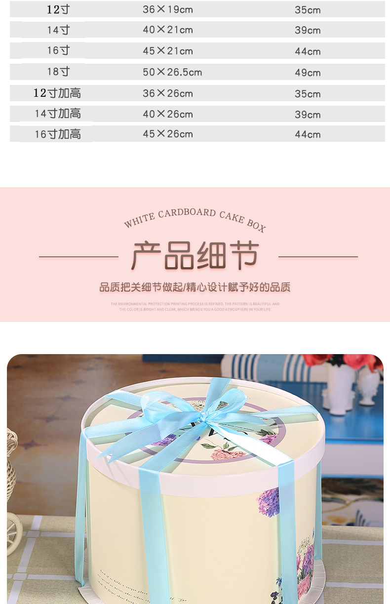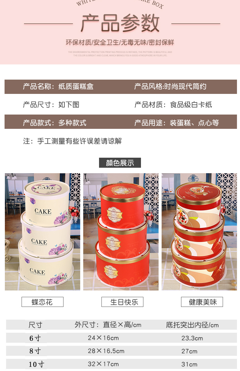GPW5圆形生日蛋糕盒烘焙包装8/10/12/14/16/18寸双层加高三层特高