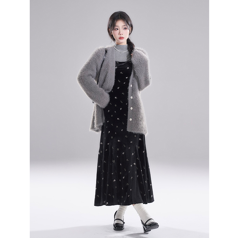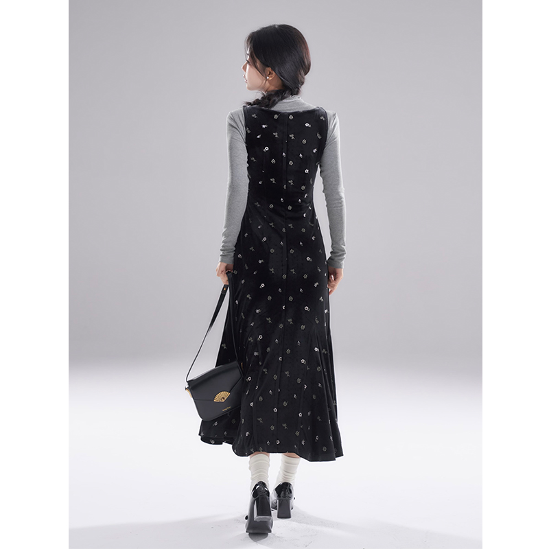 一顆小野莓【白塔玫瑰】高級感法式別致修身無袖吊帶背心裙女秋冬