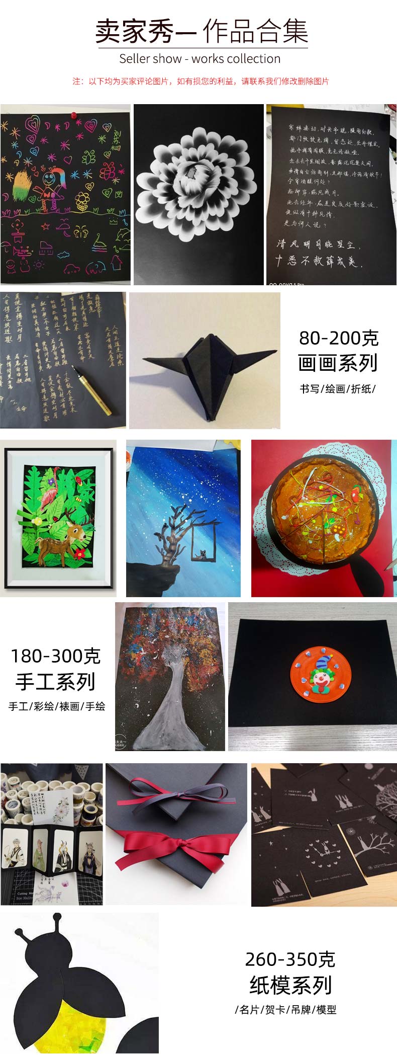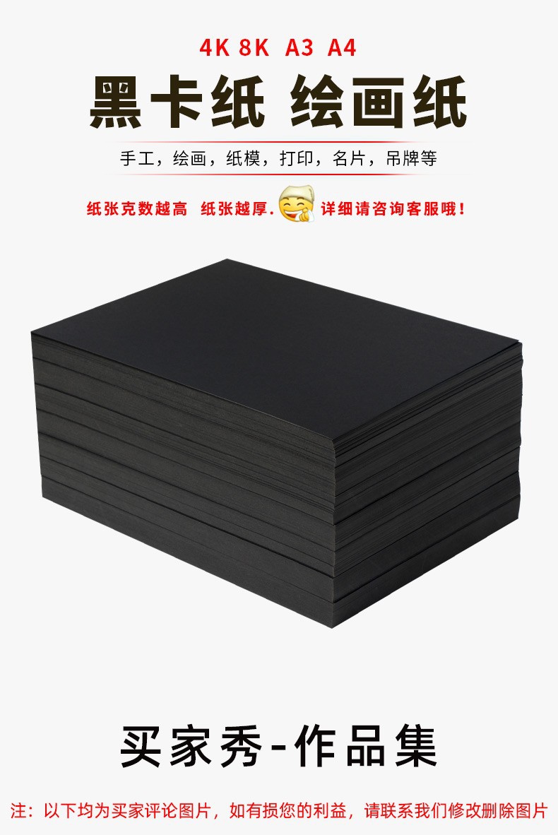 黑色卡纸4k8开硬卡纸300克加厚硬纸黑色a4纸黑卡纸8k 4开美术