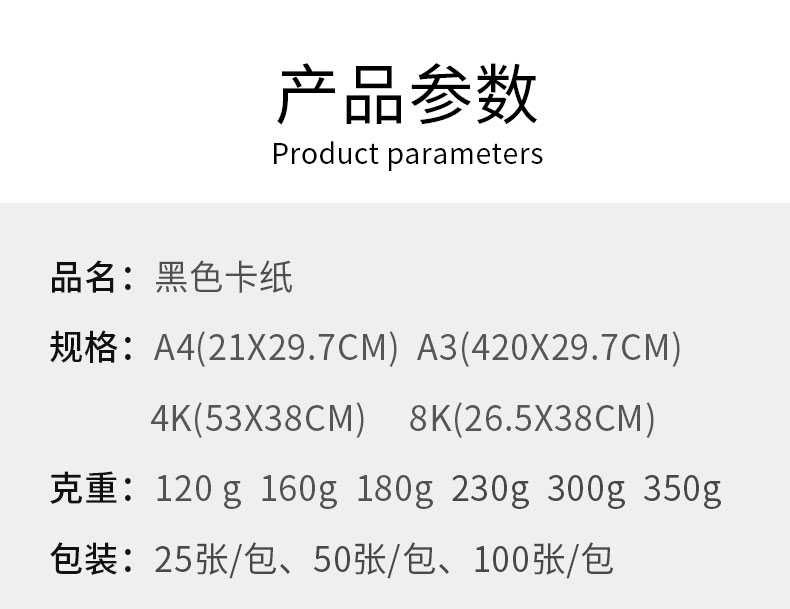 克重 4K黑卡160克50张,4K黑卡180克50张,4K黑卡230克25张,4K黑卡300克25张,8K黑卡120克50张,8K黑卡160克50张,8K黑卡180克50张,8K黑卡230克50张,8K黑卡300克50张,8K黑卡350克50张,A4黑卡80克100张,A4黑卡纸120克50张,A4黑卡160克100张,A4黑卡180克100张,A4黑卡230克50张,A4黑卡300克50张,A4黑卡350克50张,A3黑卡80克50张,A3黑卡120克50张,A3黑卡160克50张,A3黑卡180克50张,A3黑卡230克50张,A3黑卡300克50张,A3黑卡350克50张