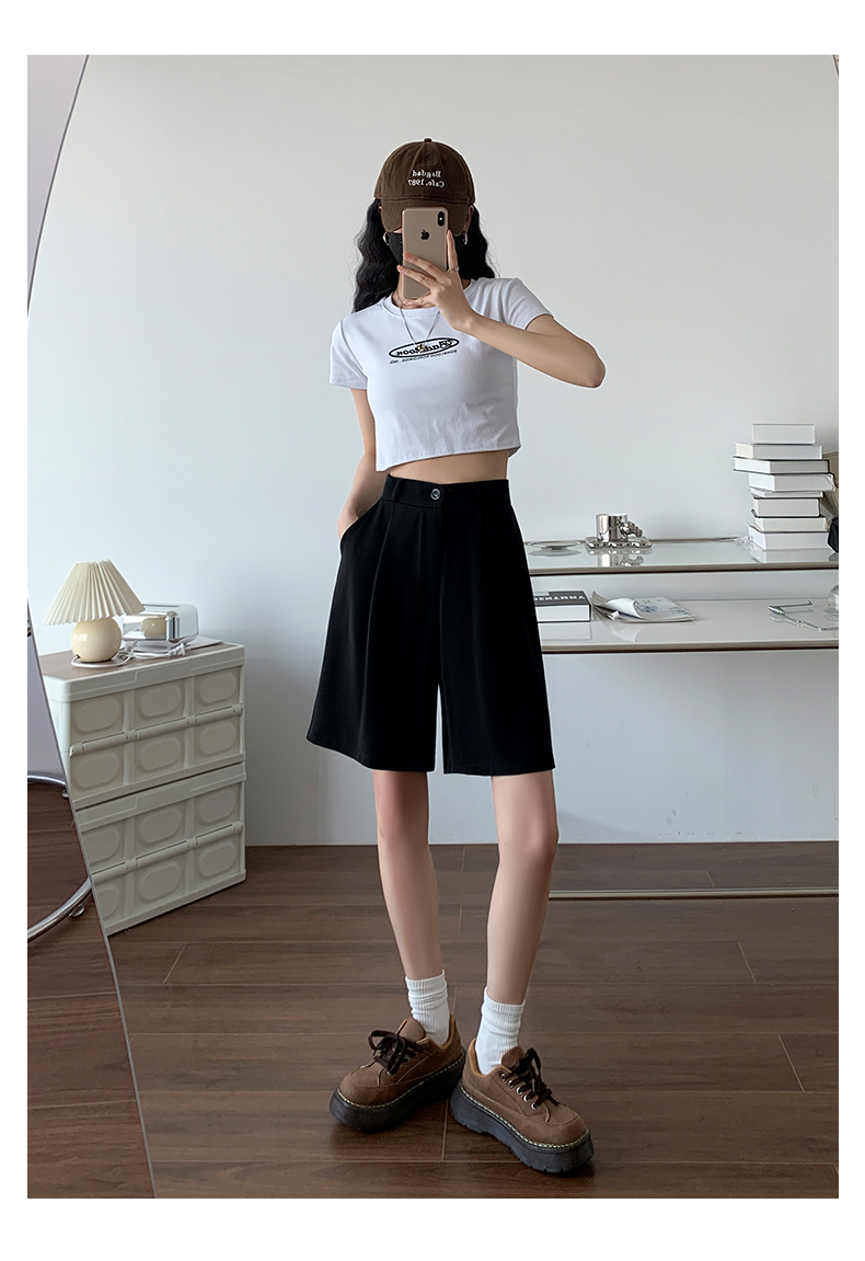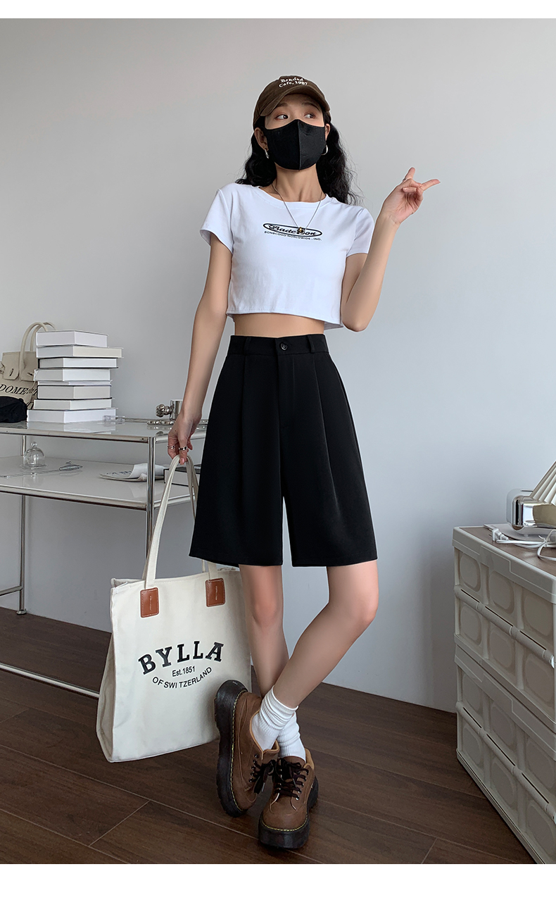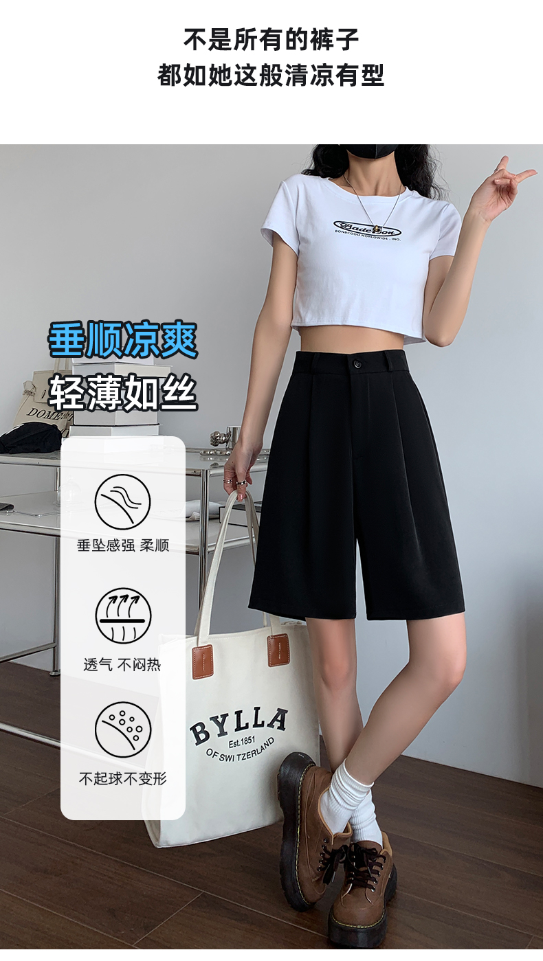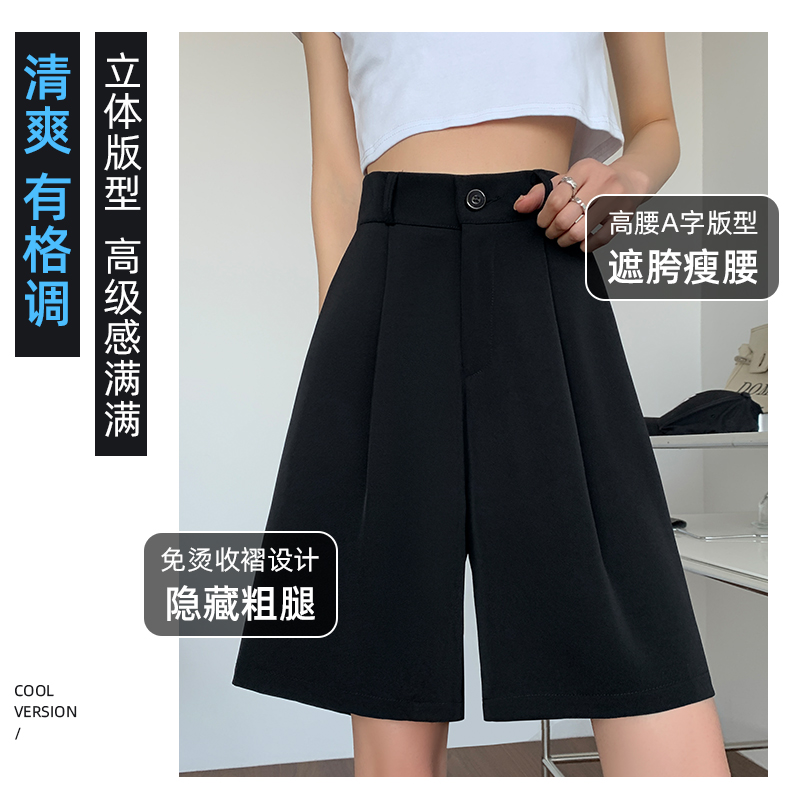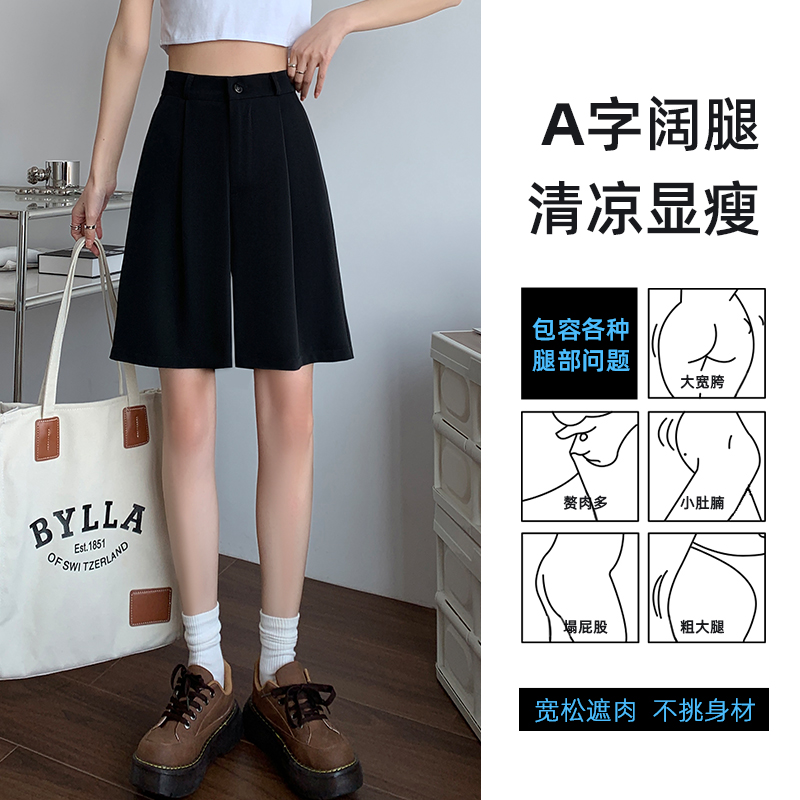 西裝短褲女2023夏季新款寬鬆大尺碼胖mm休閒褲高腰闊腿五分褲五分褲子