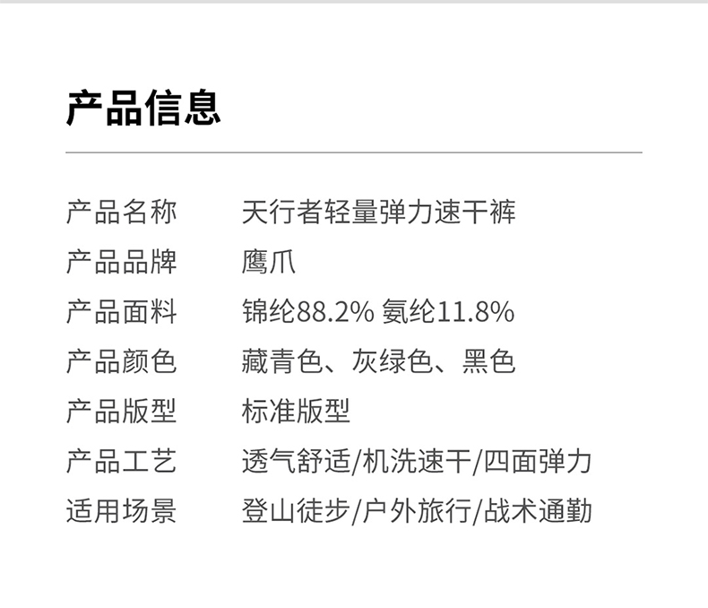 鷹爪天行者戰術褲男夏季薄款彈力戶外速乾長褲大尺碼常服通勤西褲