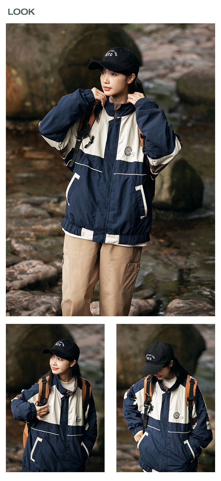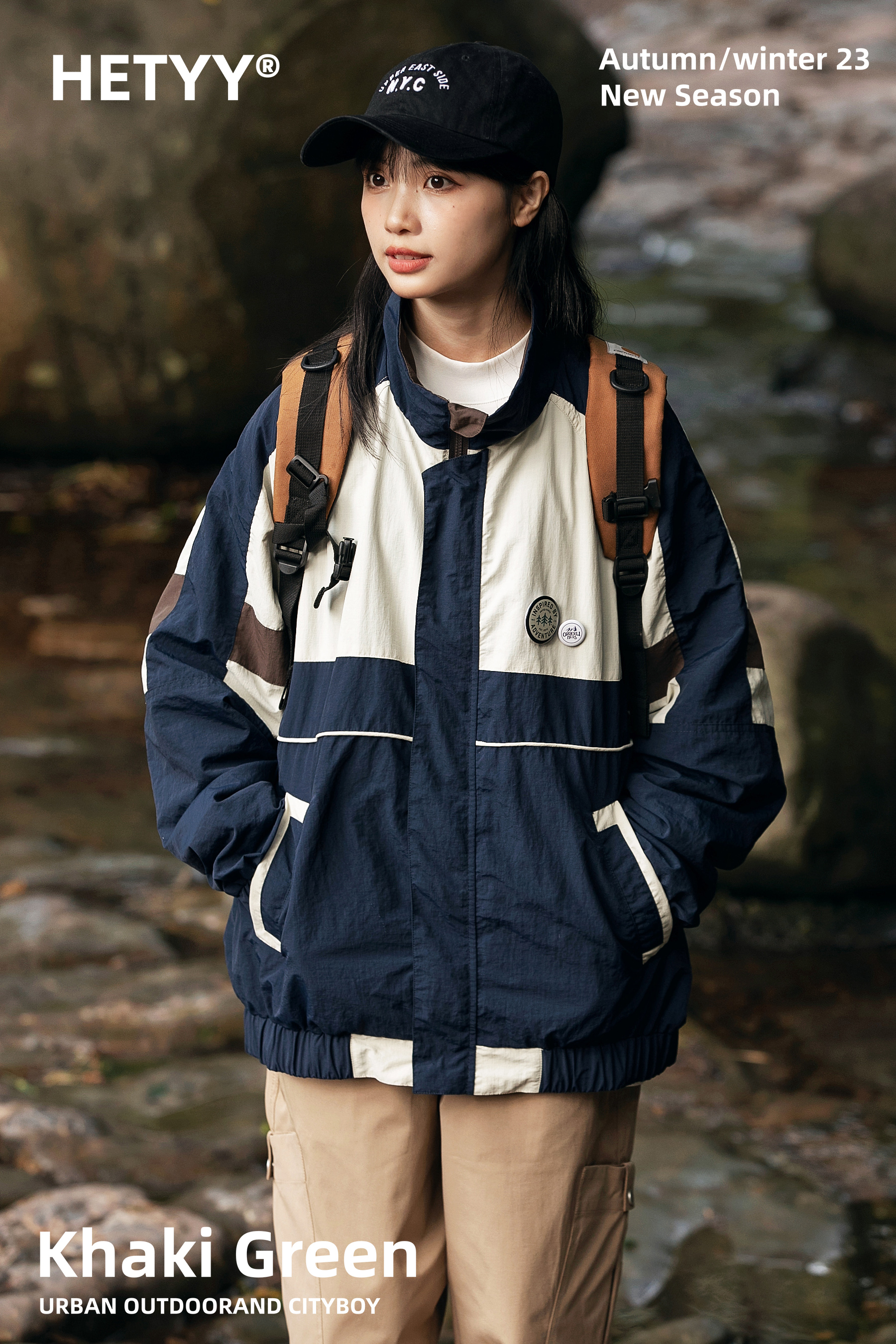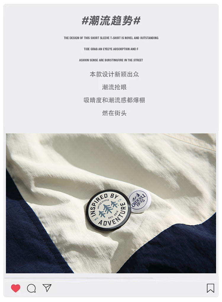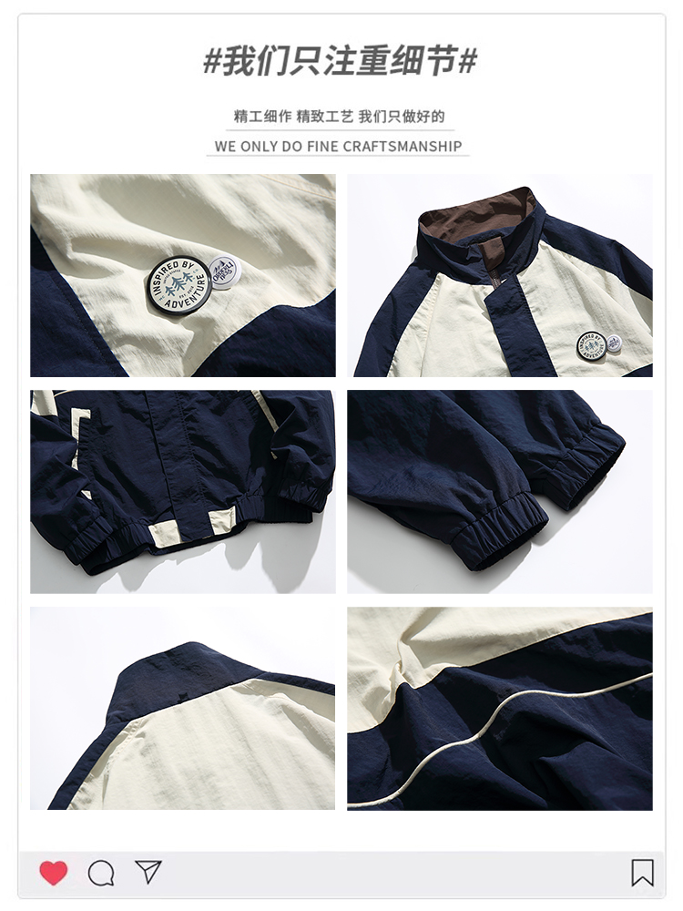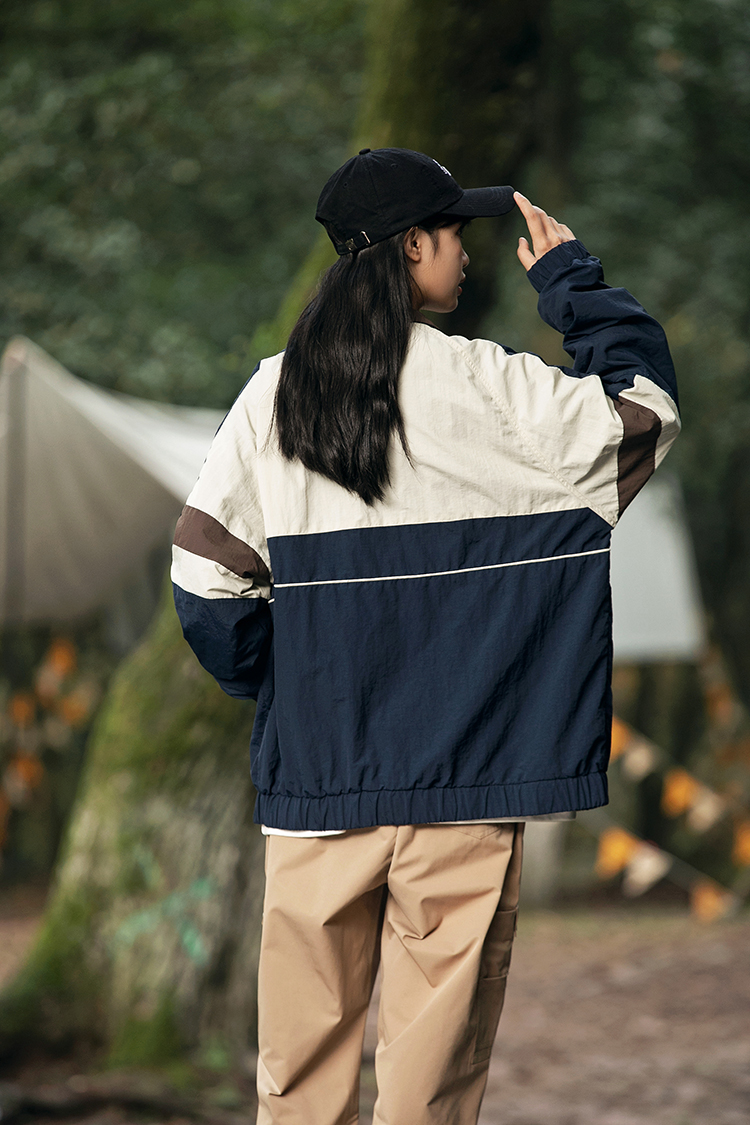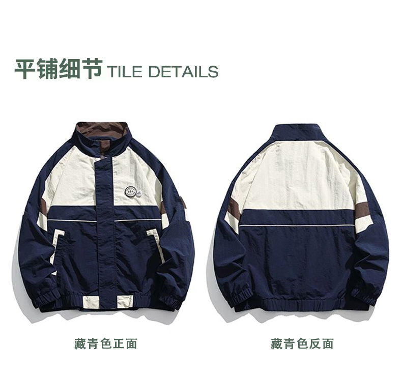 HETYY日系潮牌撞色拼接寬鬆立領夾克男女2023春秋新款街頭外套