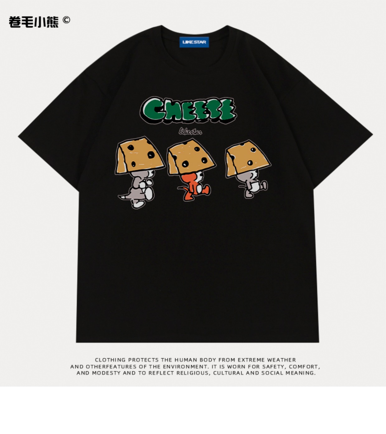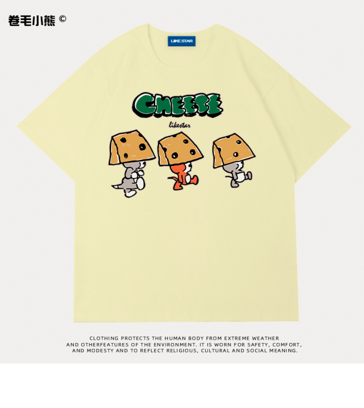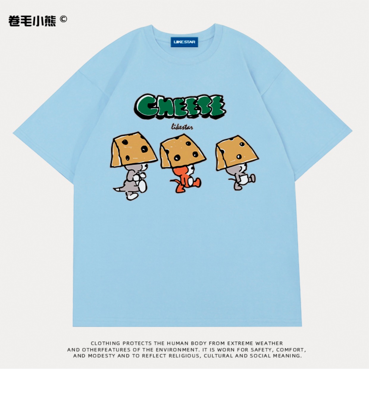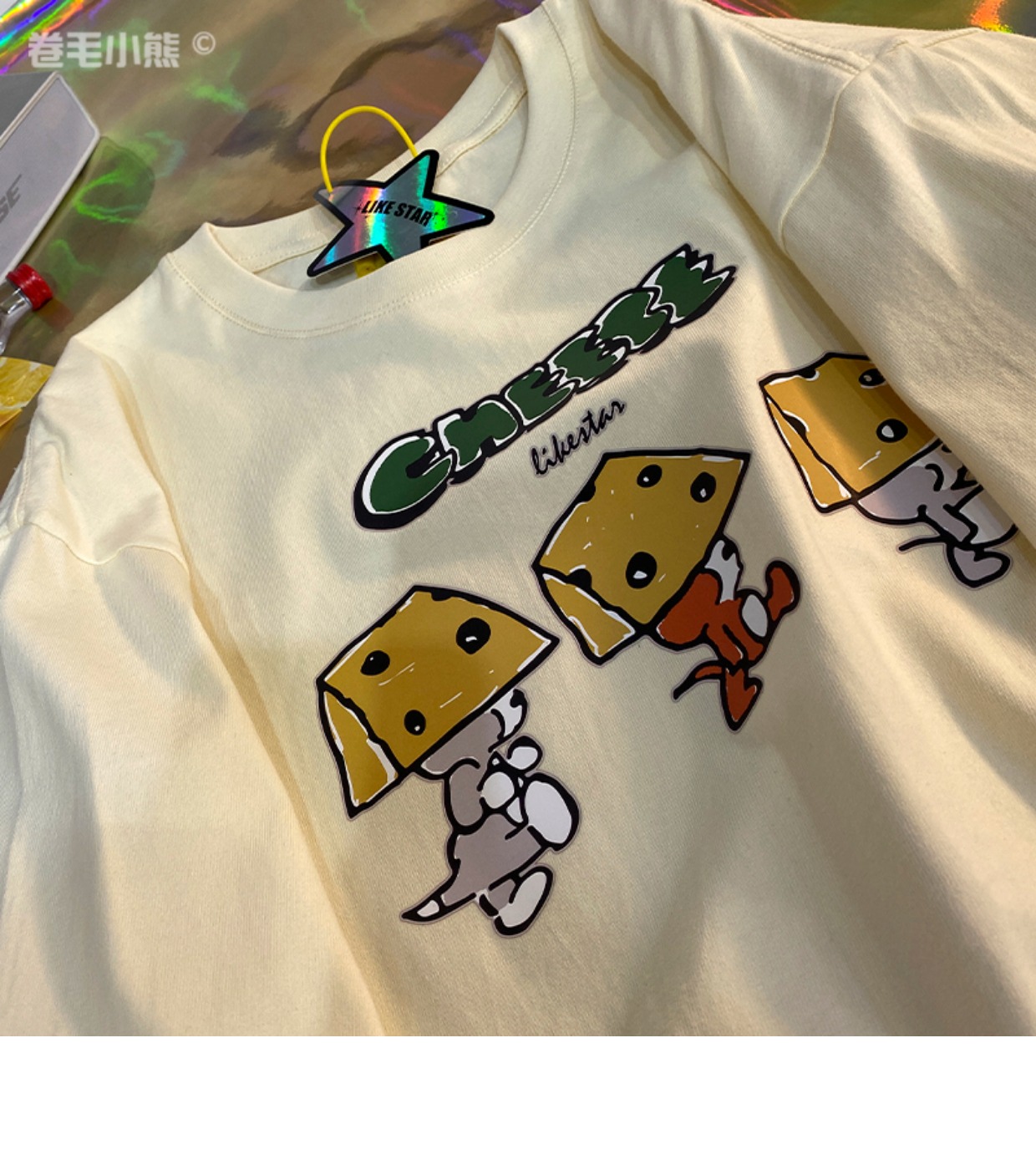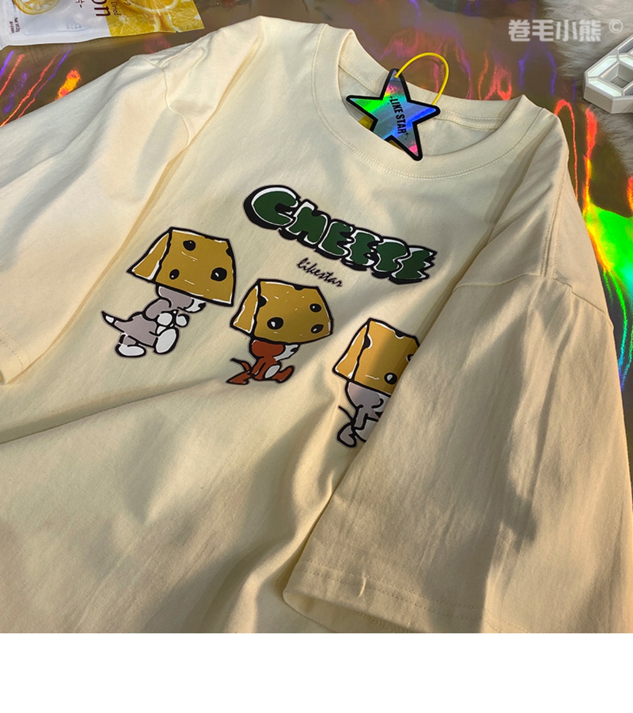 芝士s捲毛小熊重磅純棉短袖t恤女2023年新款寬鬆韓版美式上衣情侶