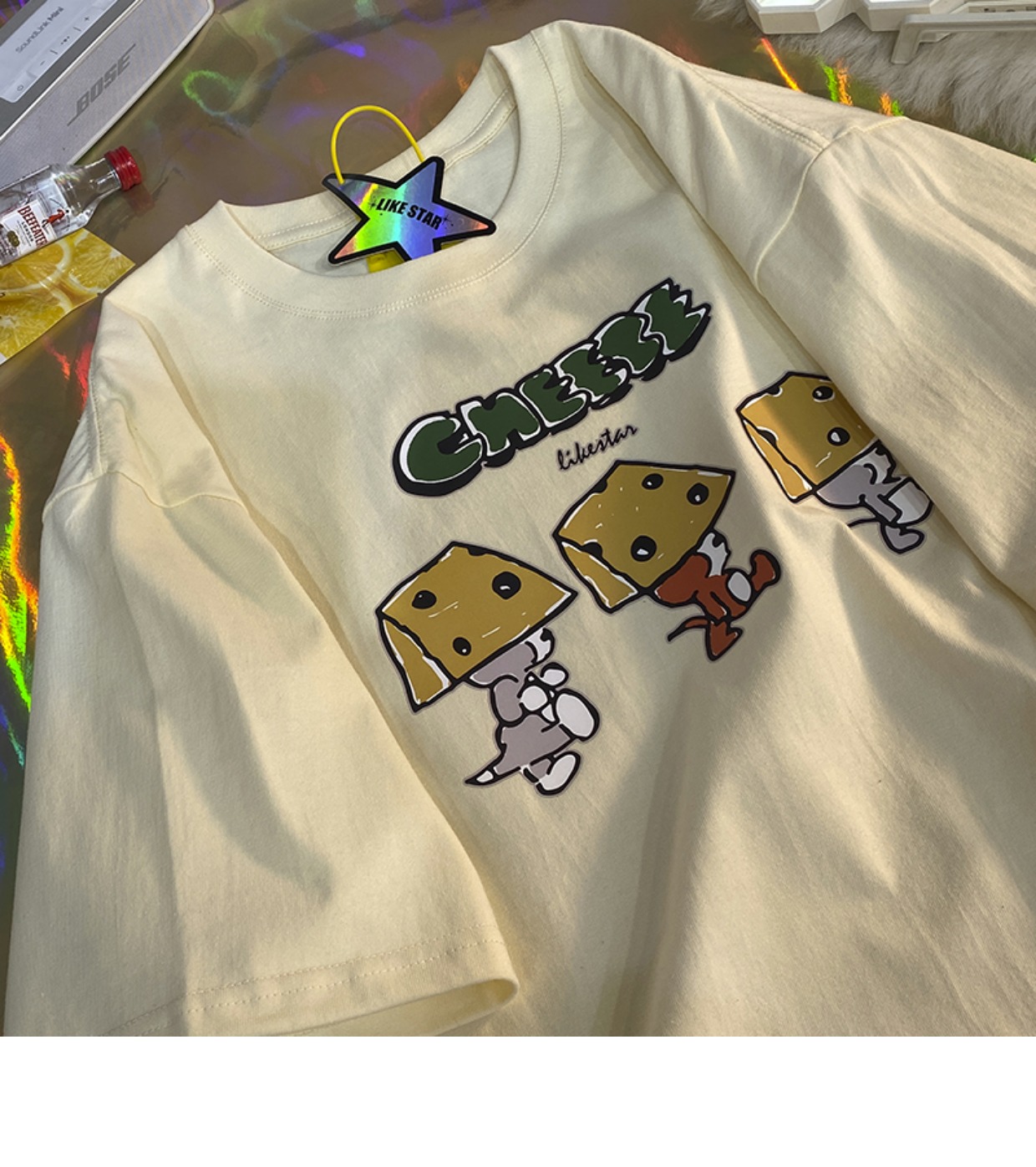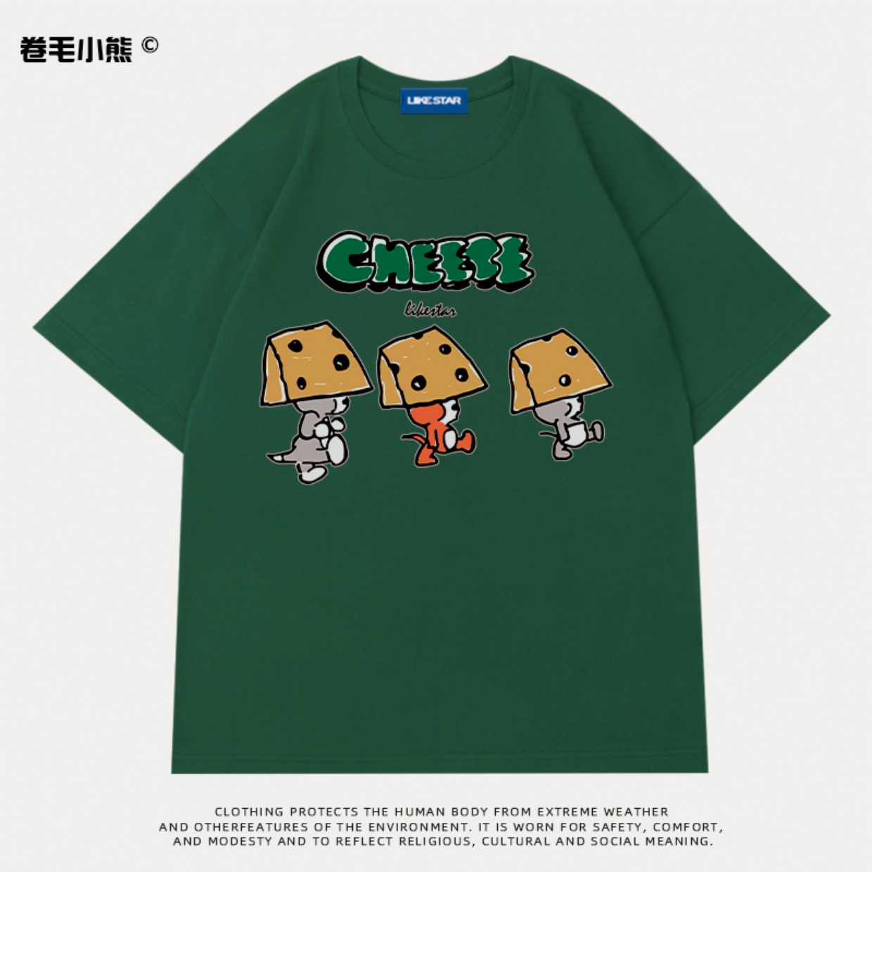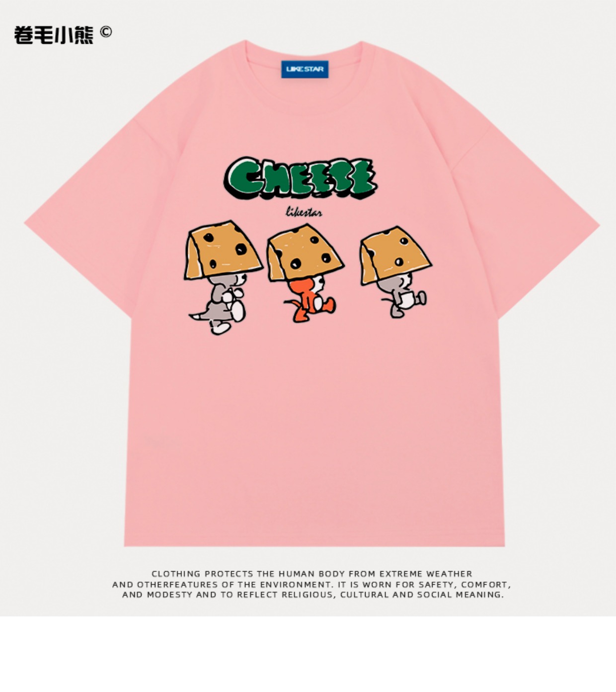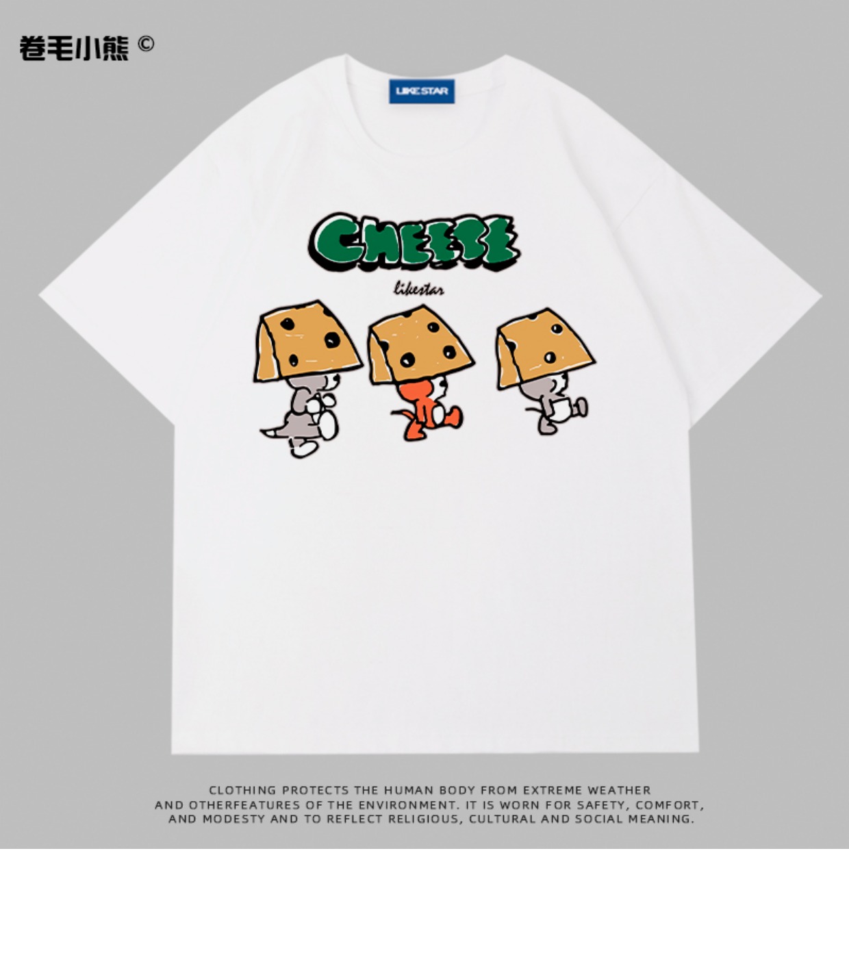 芝士s捲毛小熊重磅純棉短袖t恤女2023年新款寬鬆韓版美式上衣情侶