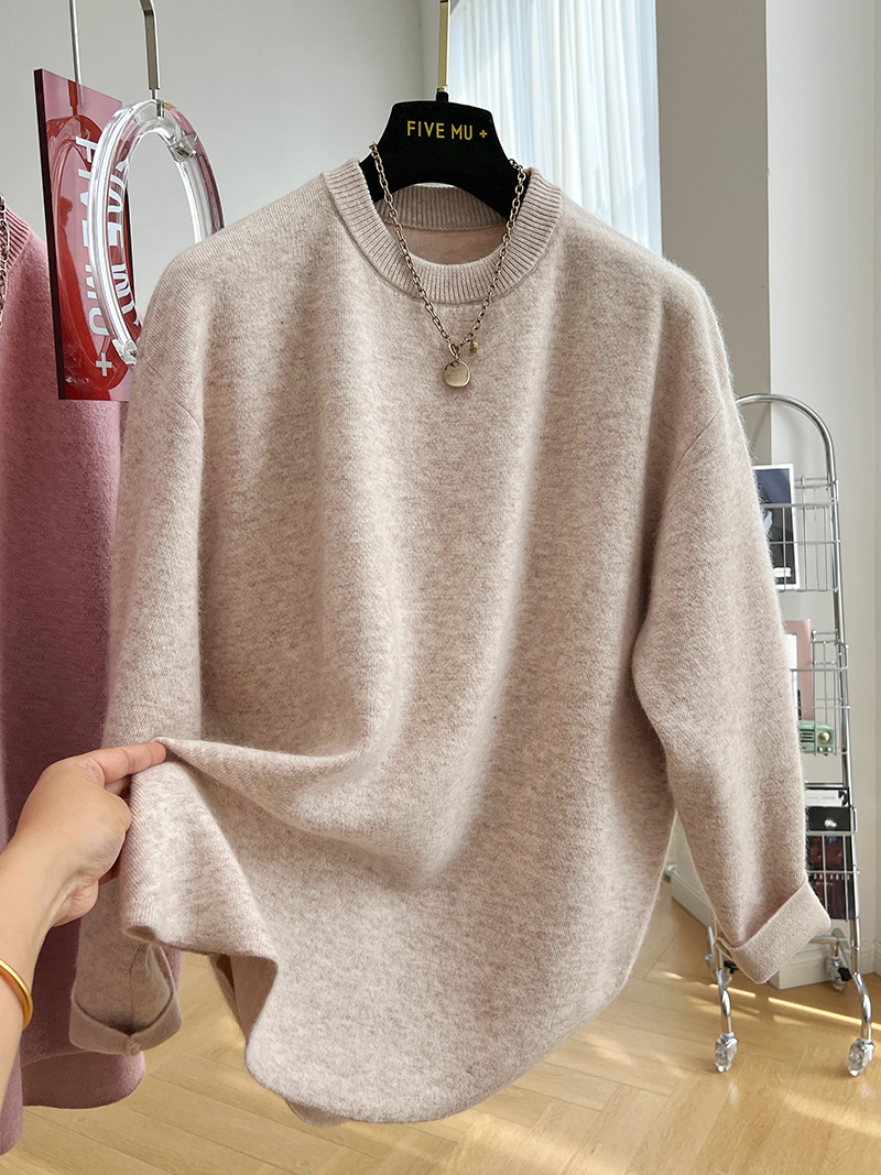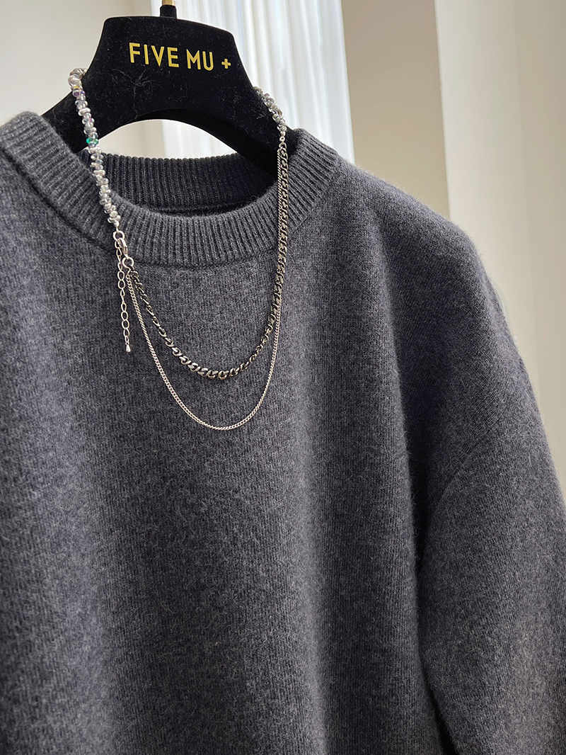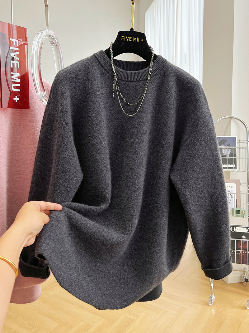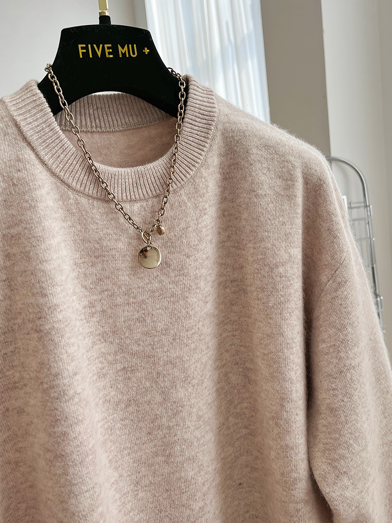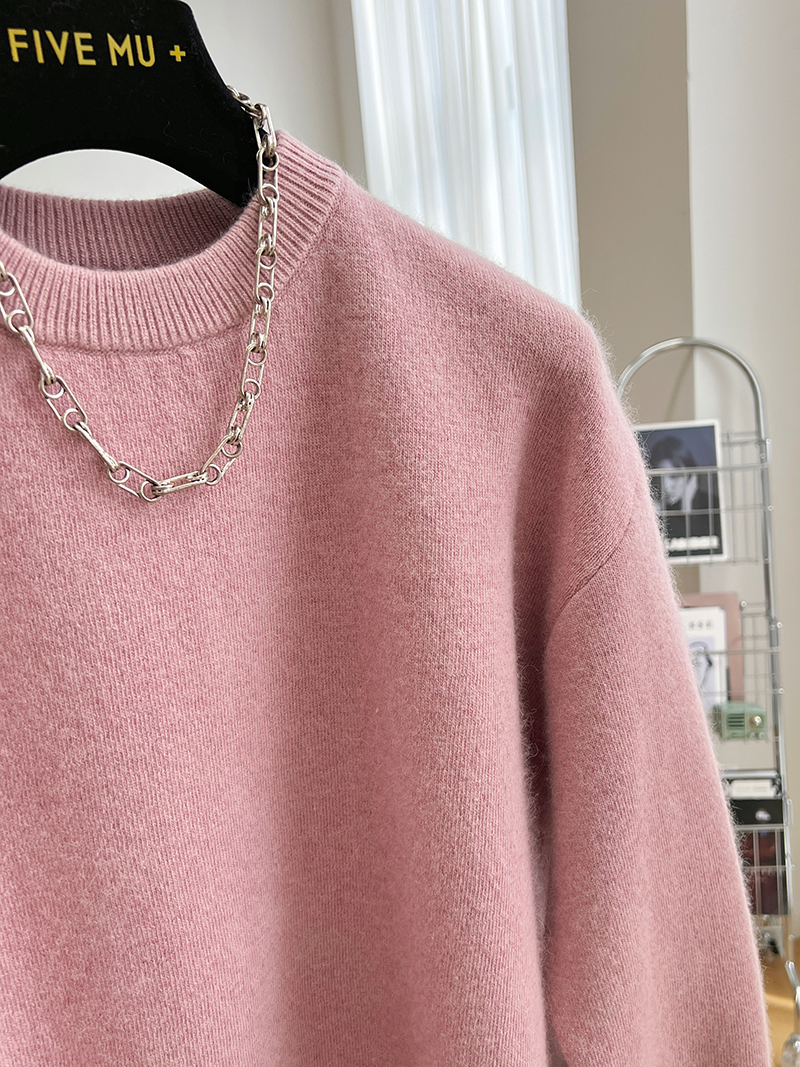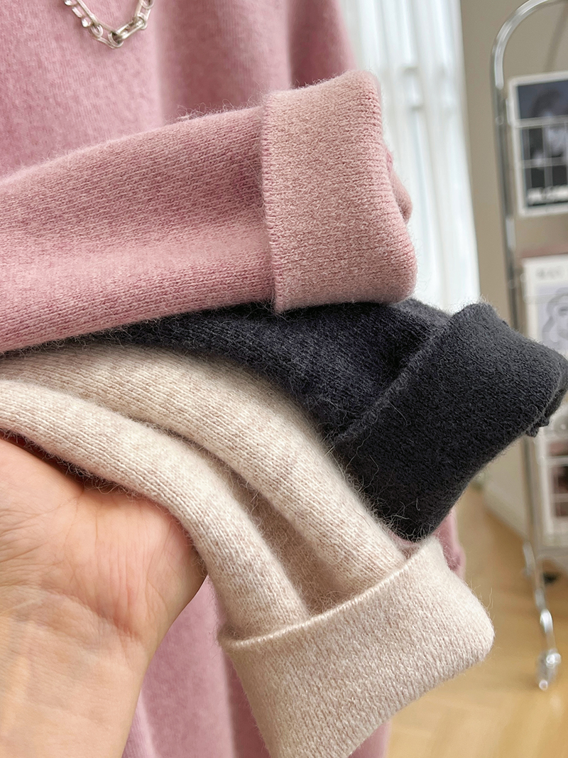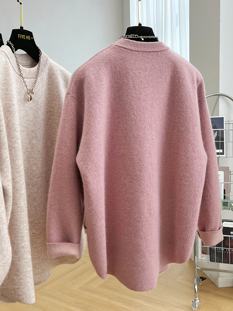 韓系高級感軟糯浣熊絨混羊毛圓領套頭針織衫女秋冬套頭中長版毛衣