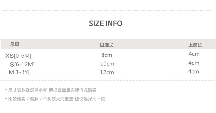 童袜尺码 XS码0-6个月,S码6-12个月,M码1-3岁