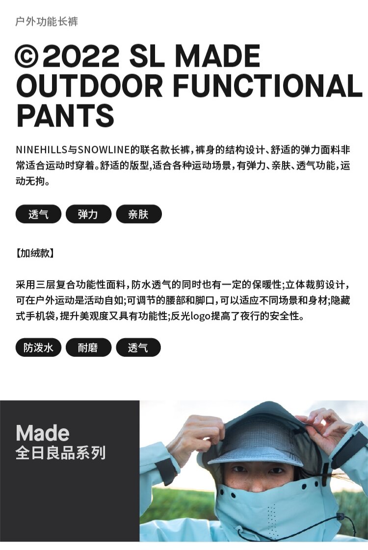 Snowline雪線四季款戶外休閒登山褲耐磨防潑水運動長褲男女束腳款