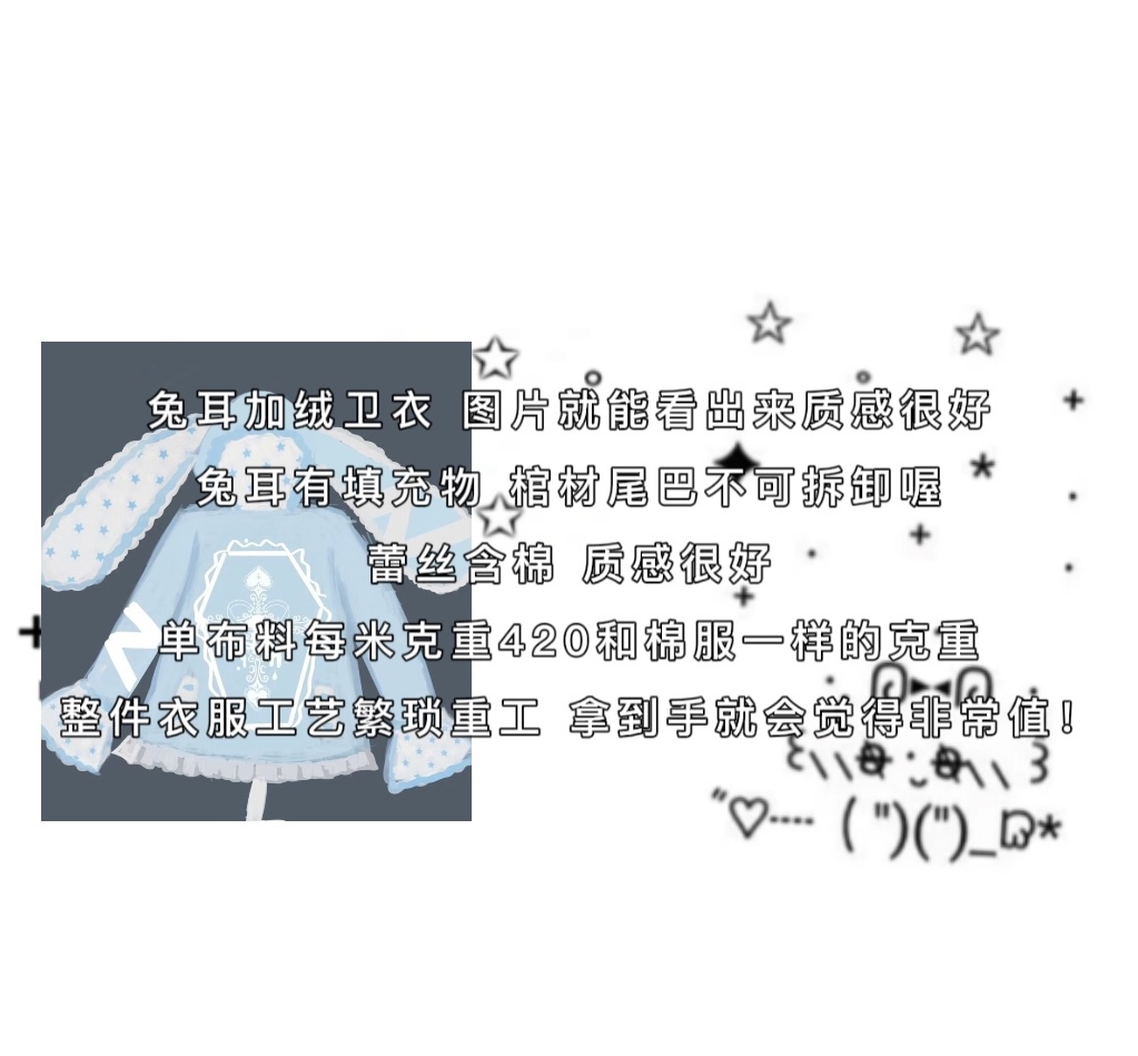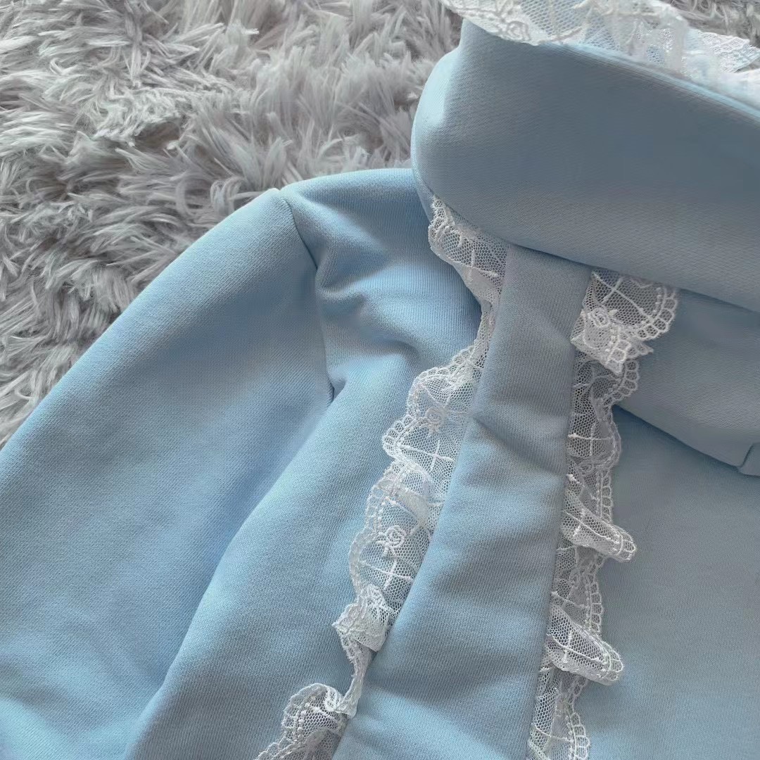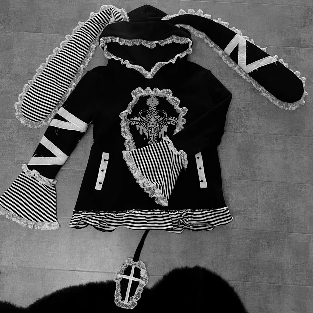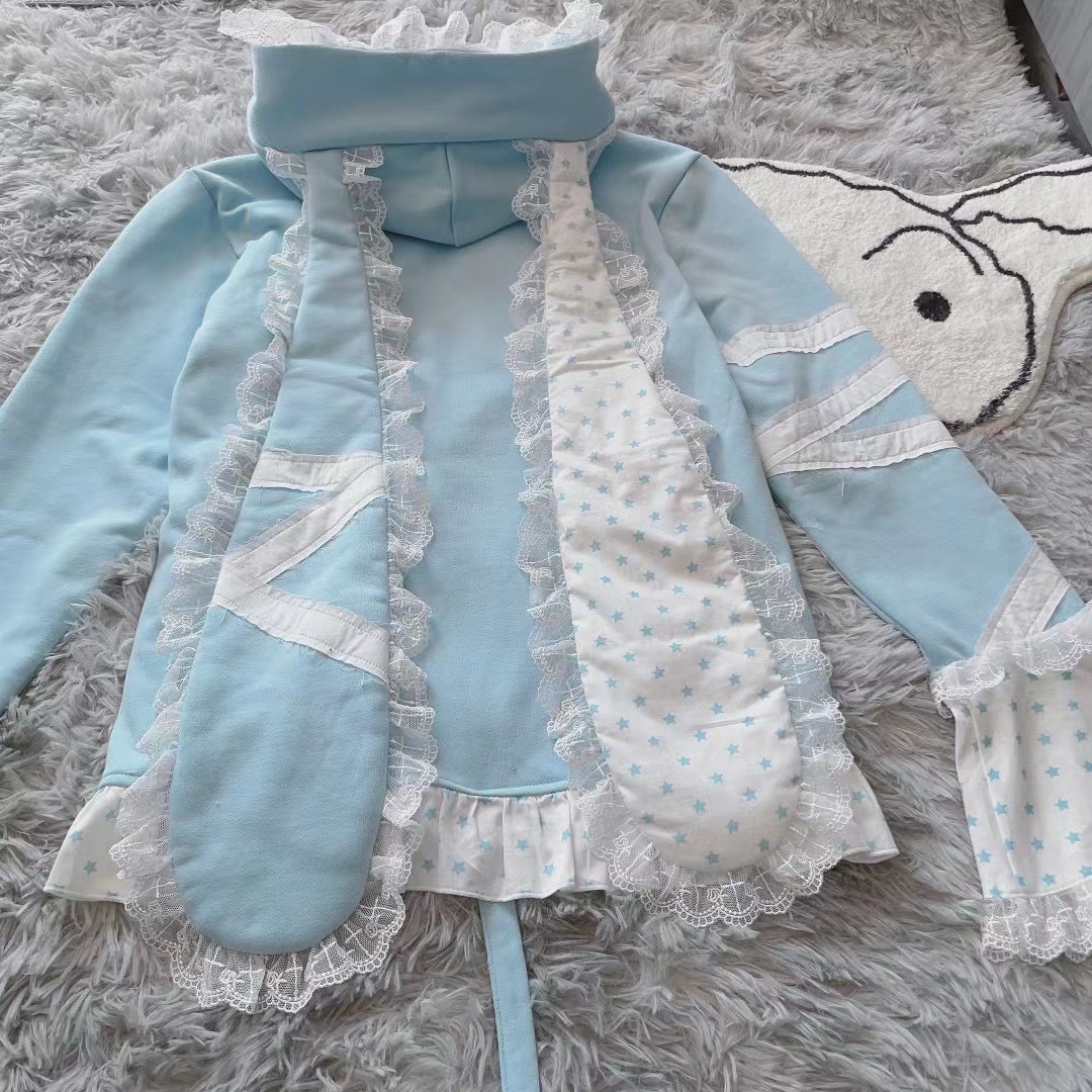 Yameko虛擬次元x制服派對 原創綁帶兔耳衛衣加絨超重工水色亞文化