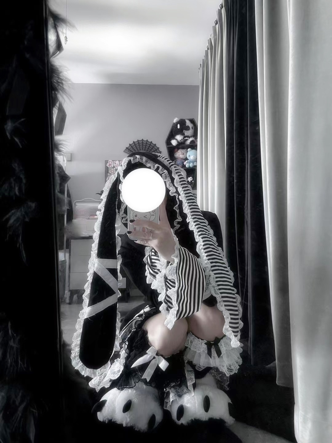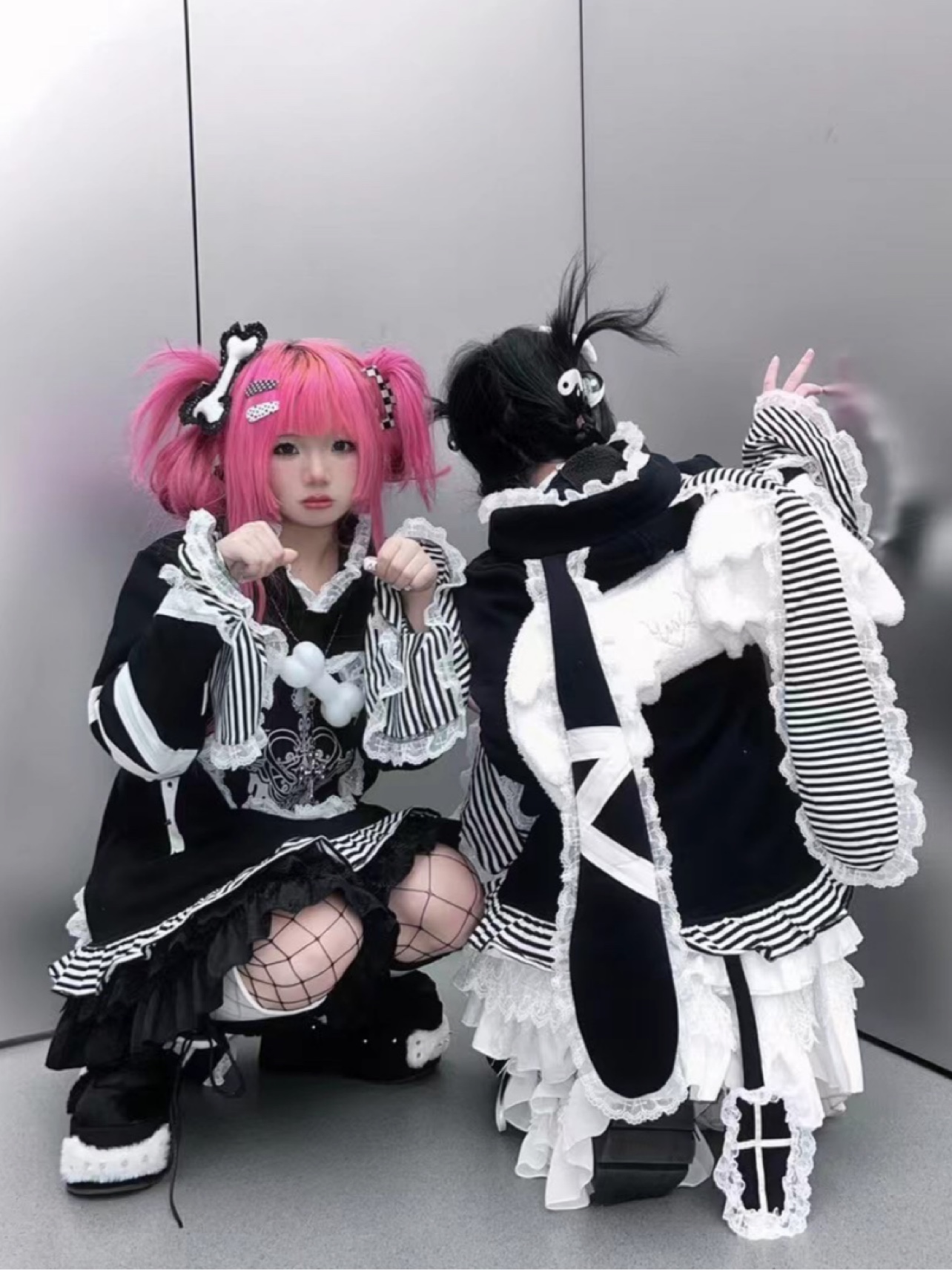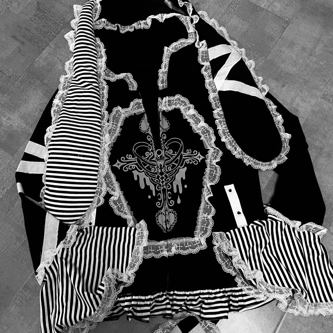 Yameko虛擬次元x制服派對 原創綁帶兔耳衛衣加絨超重工水色亞文化