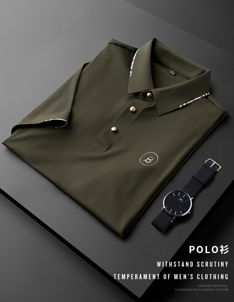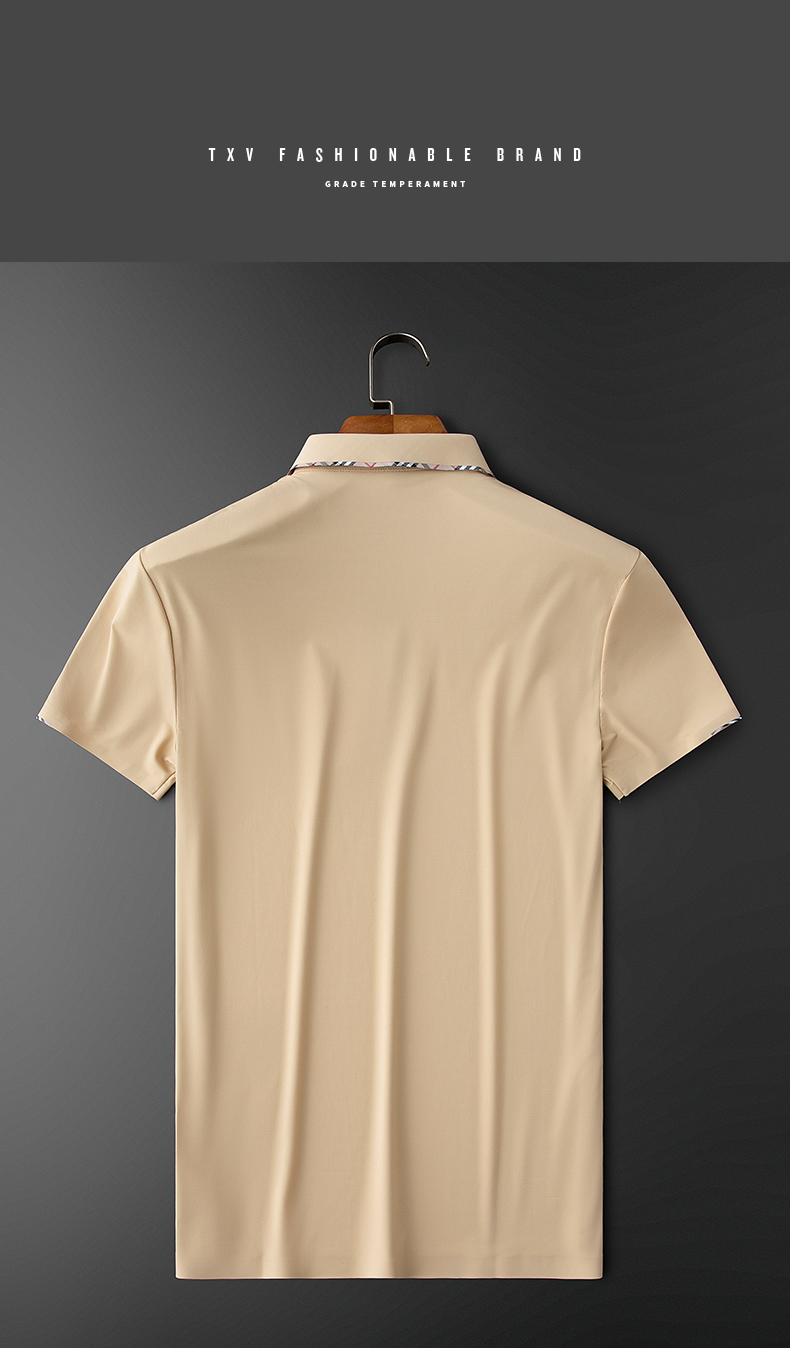 TXV夏季薄款冰絲滑無痕商務休閒polo衫男短袖修身歐貨翻領t恤男士