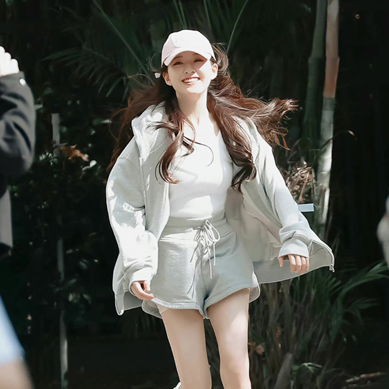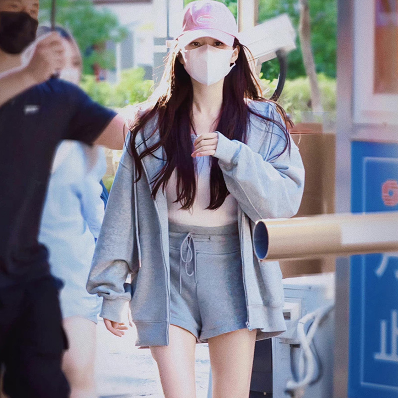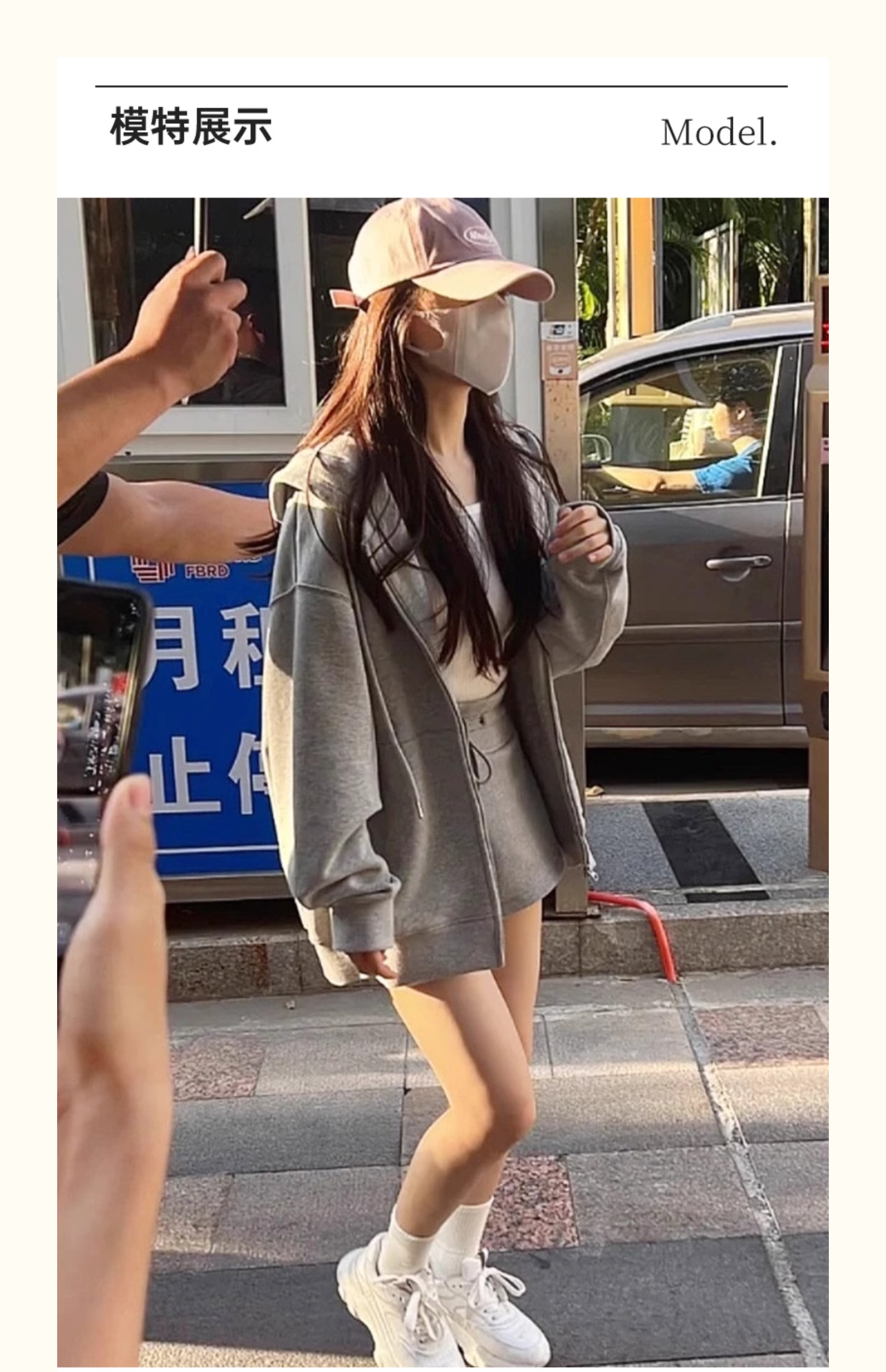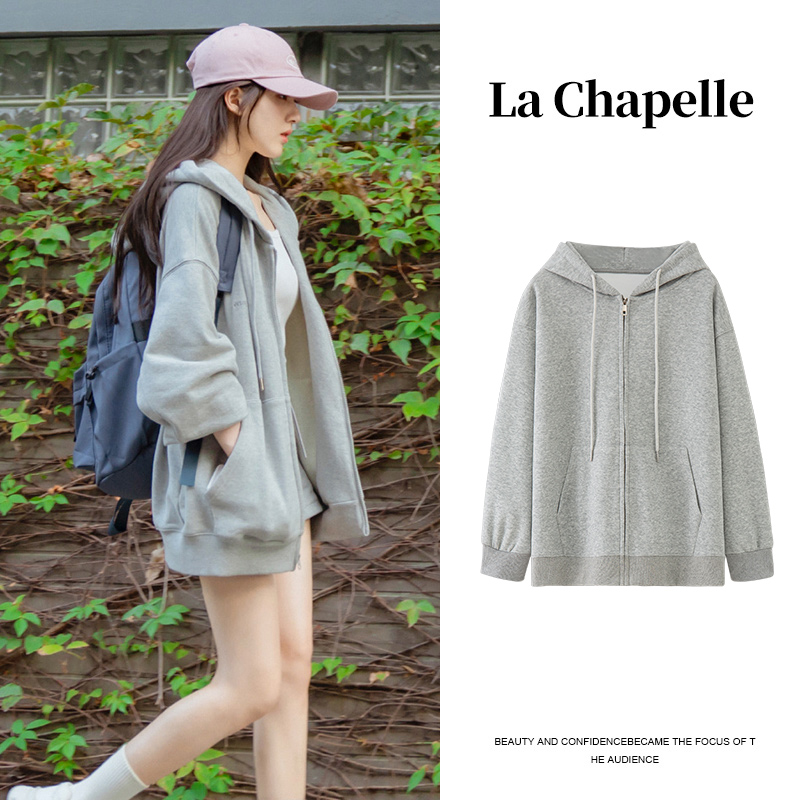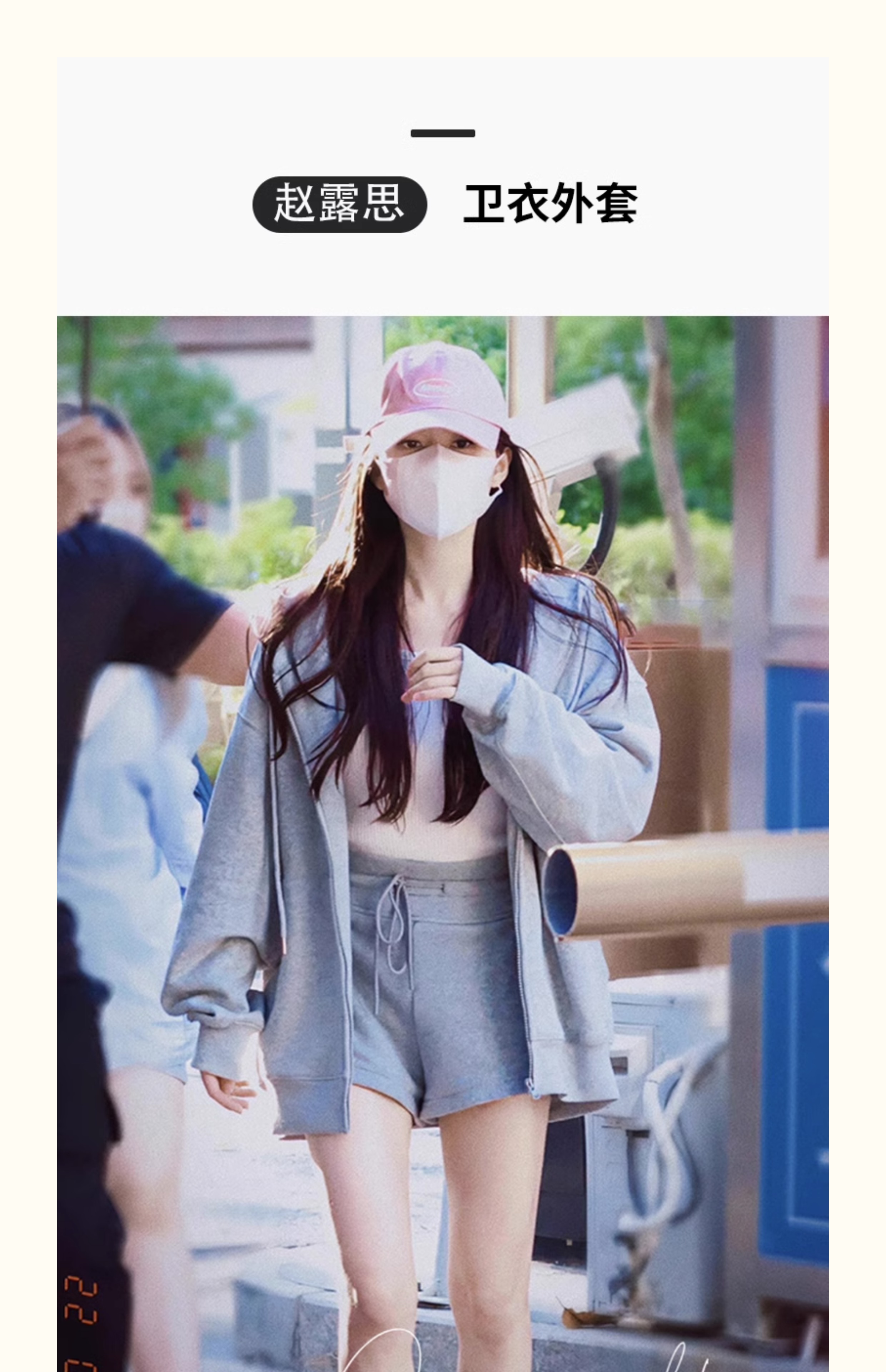 趙露思同款針織開衫外套女春秋季灰色連帽運動衫女秋冬2023新款爆款