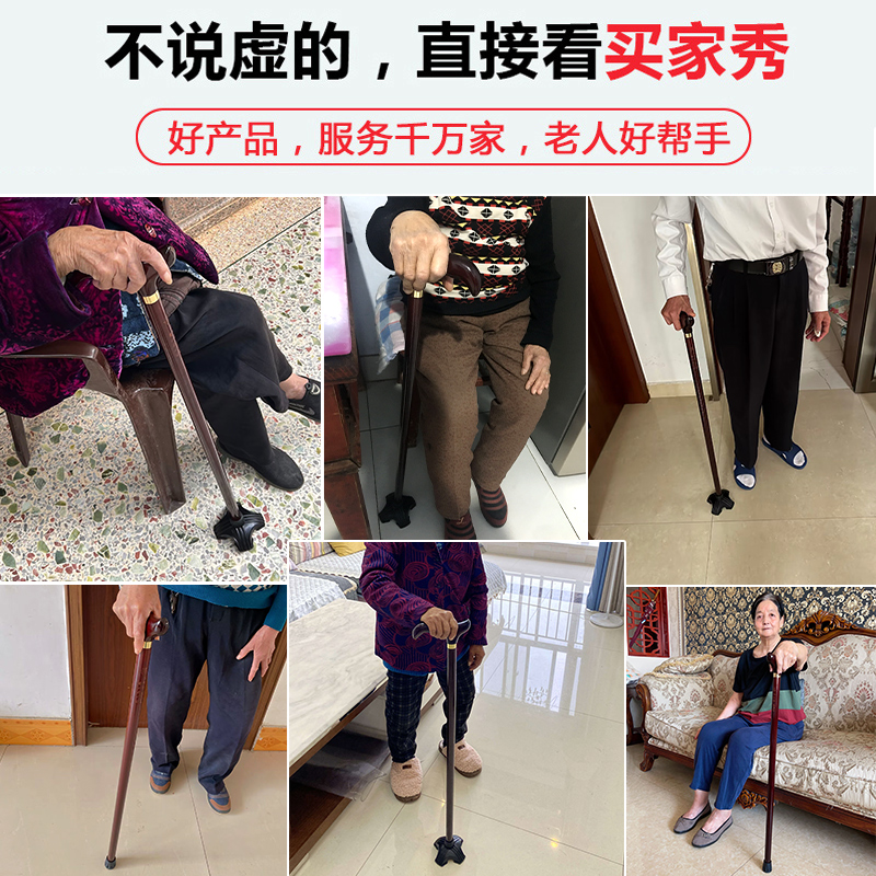 老人柺杖防滑輕便扶手棍堅硬木製四腳老年人通用捌杖柺棍實木手杖