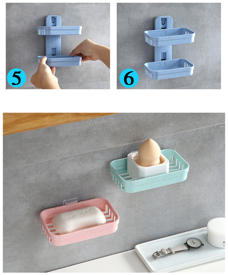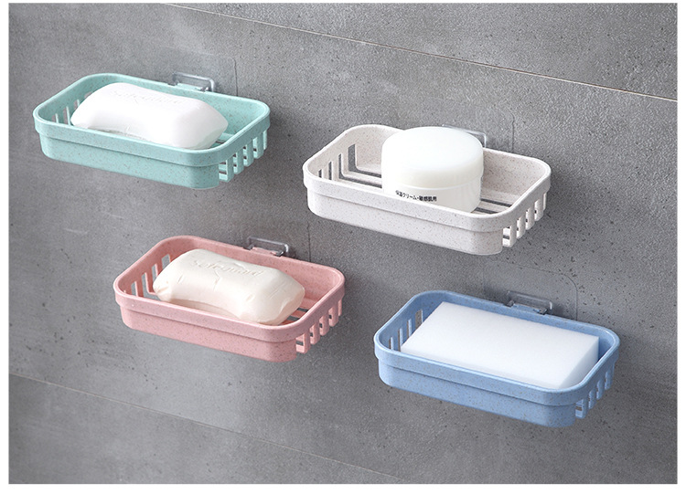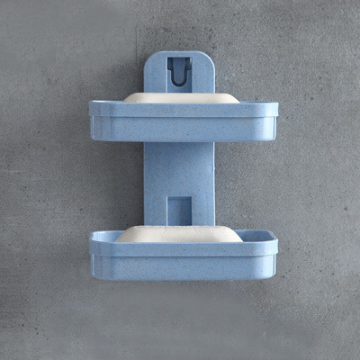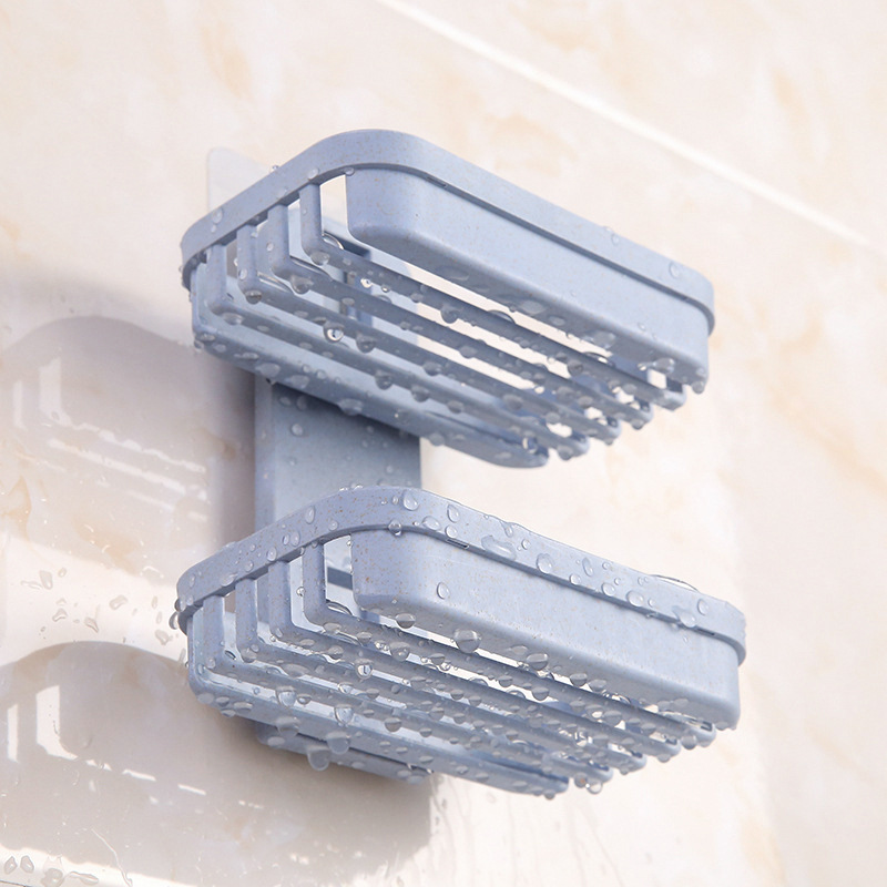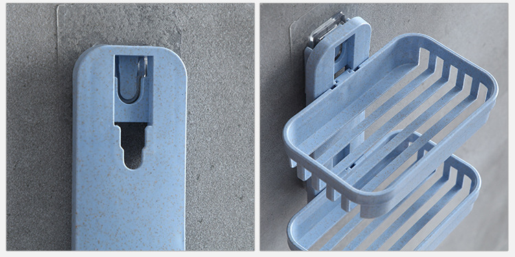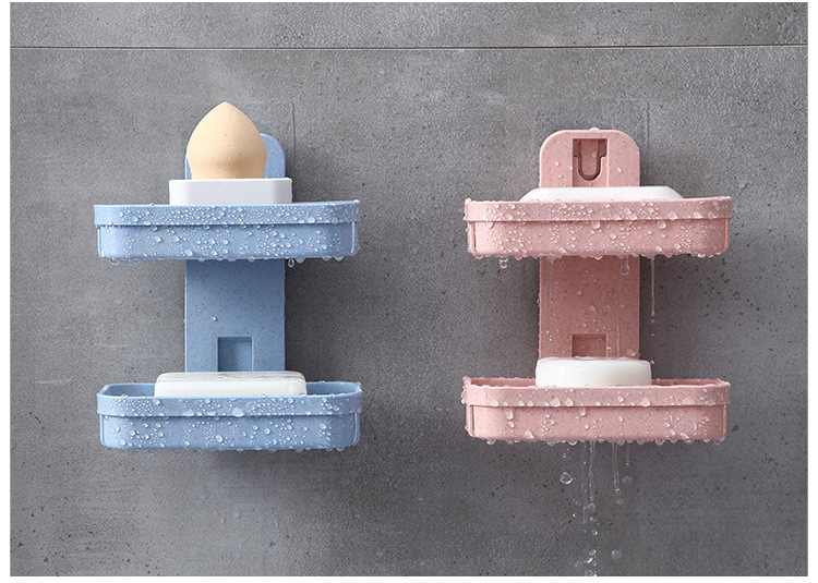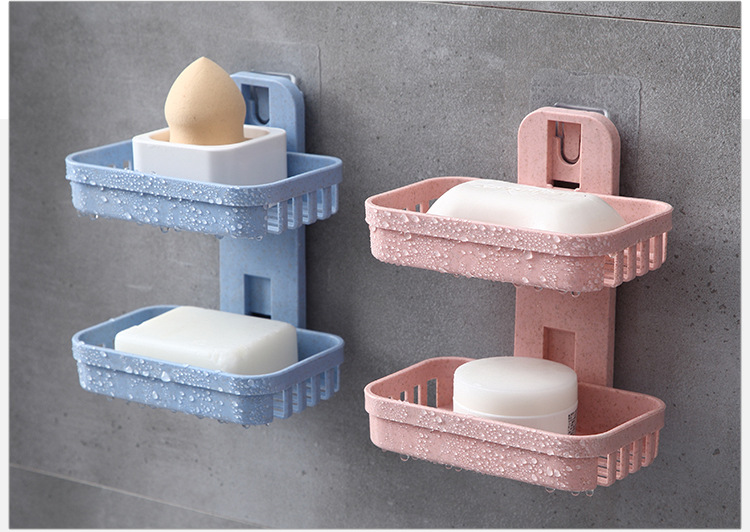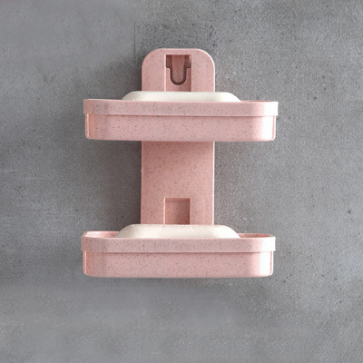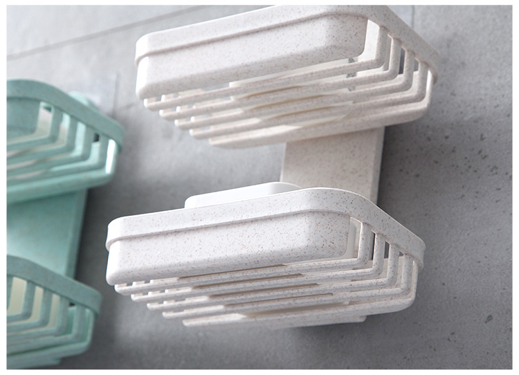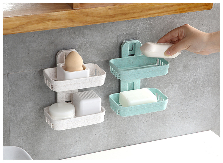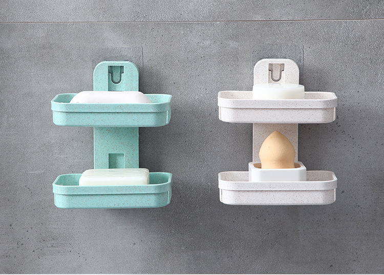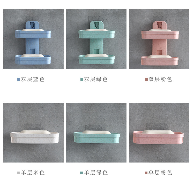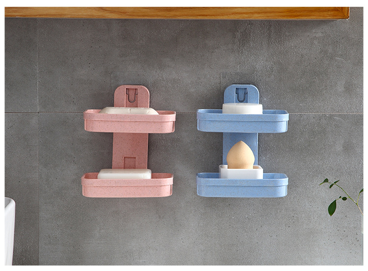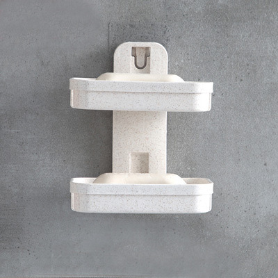 小麦秸秆双层皂盒 浴室吸盘免打孔置物架肥皂盒壁挂式沥水香皂架