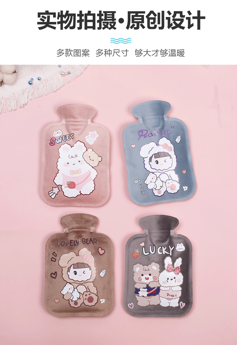 颜色 大号混发,小号混发,大号温暖宝贝,大号胖胖小妞,大号酱紫姑娘,大号萌宝小熊,大号背包小熊,大号熊兔兄妹,大号梦幻女宝,大号爱你兔兔,小号花花小兔,小号胖胖小妞,小号酱紫姑娘,小号萌宝小熊,小号草莓小兔,小号呆萌小熊,透明热水袋随机