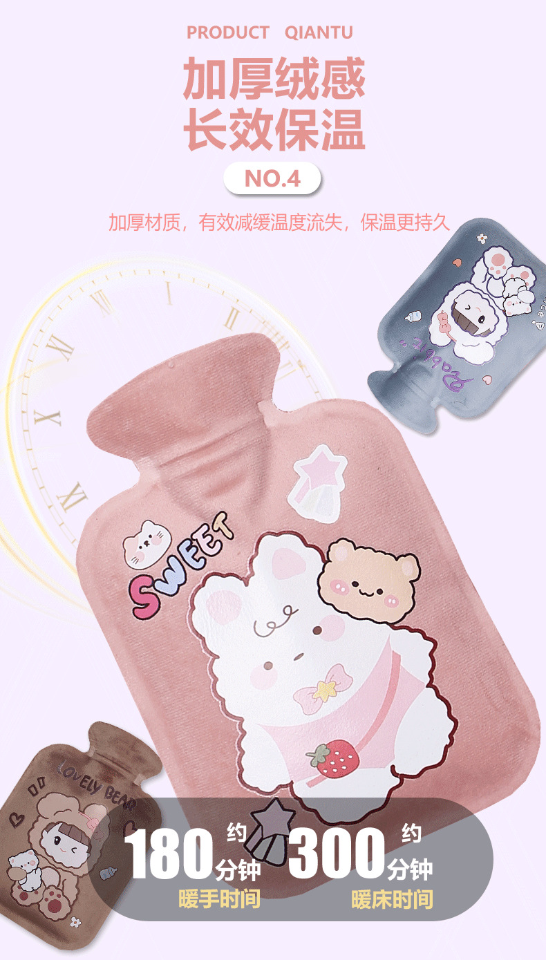 新款毛绒布热水袋注水小号冲水灌水暖水袋便携暖肚子迷你热水袋