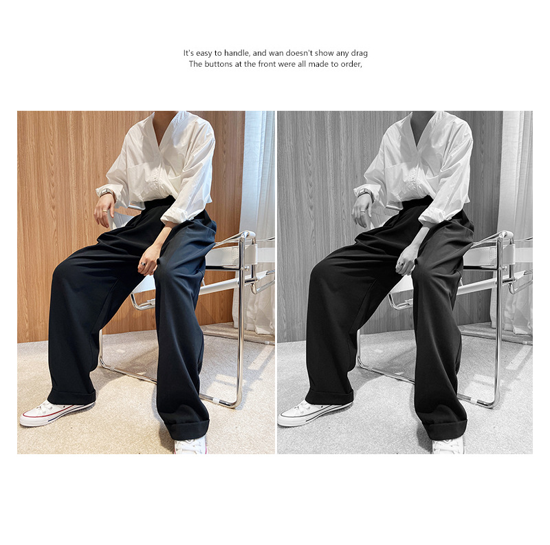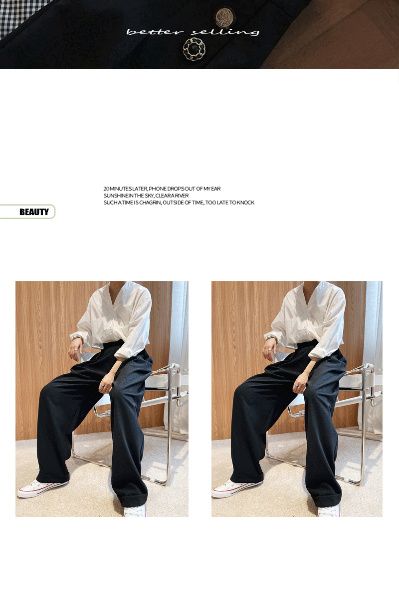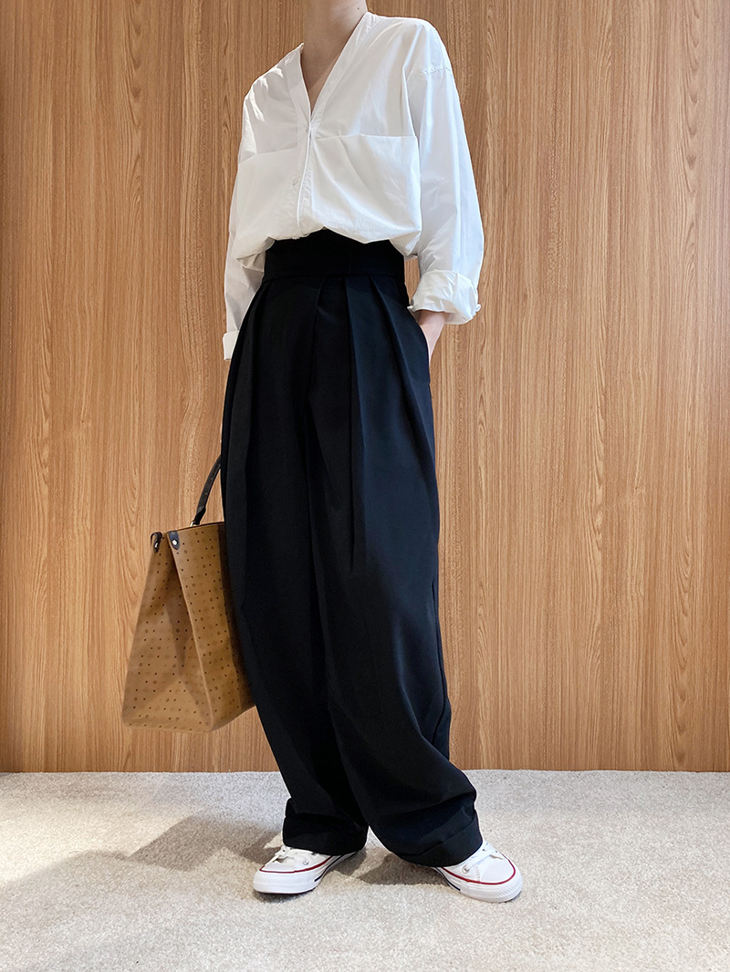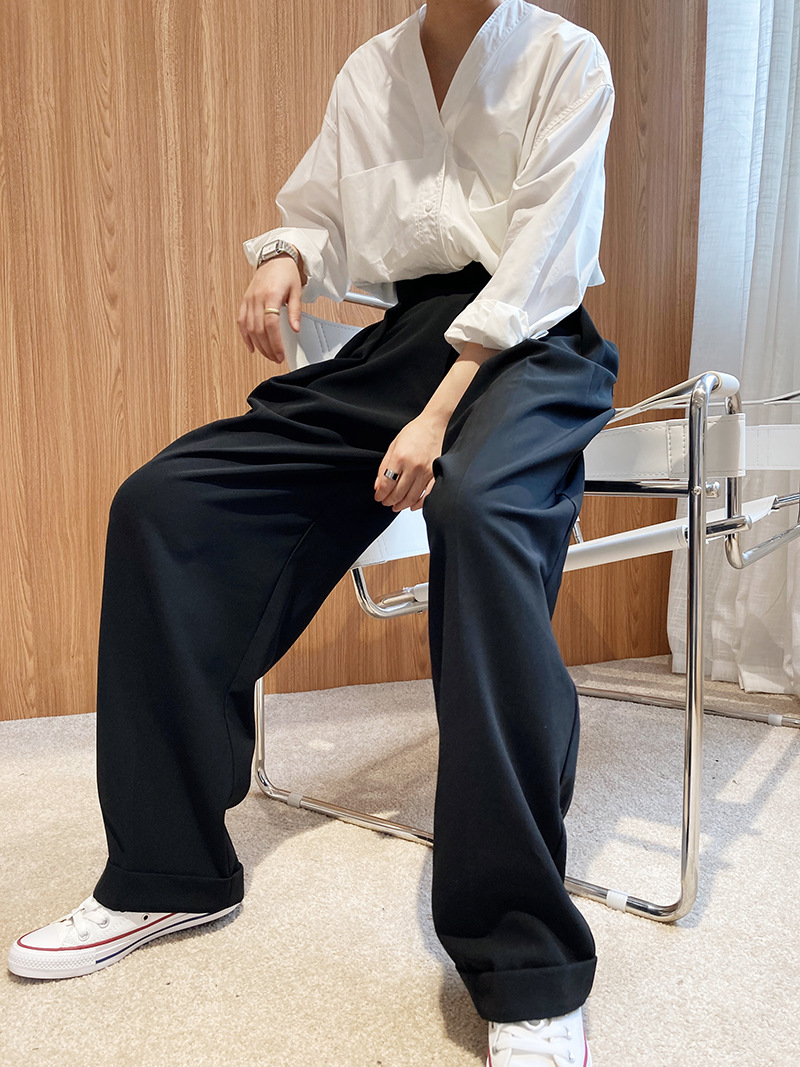 简洁的版型没有过多的修饰但却是经典不过是的极简阔腿风