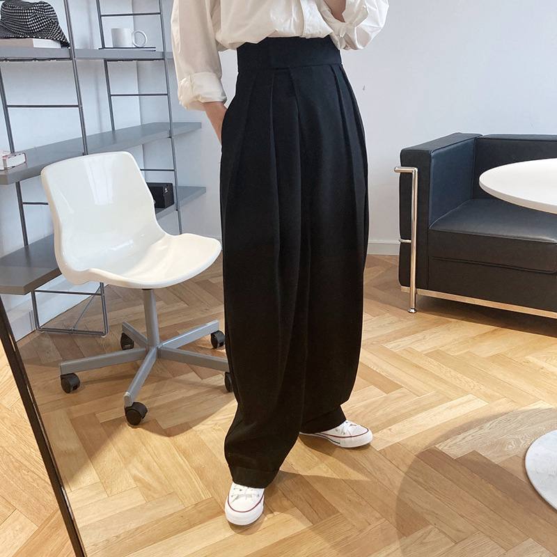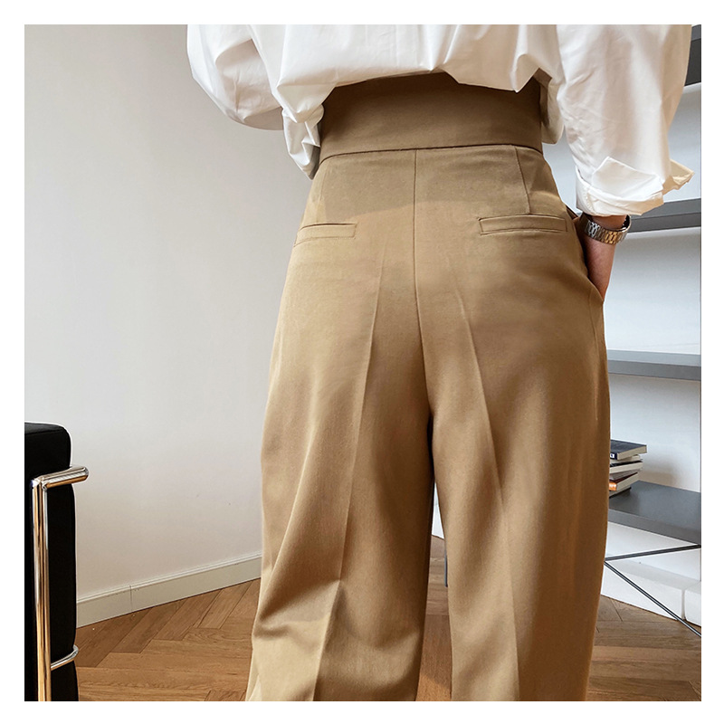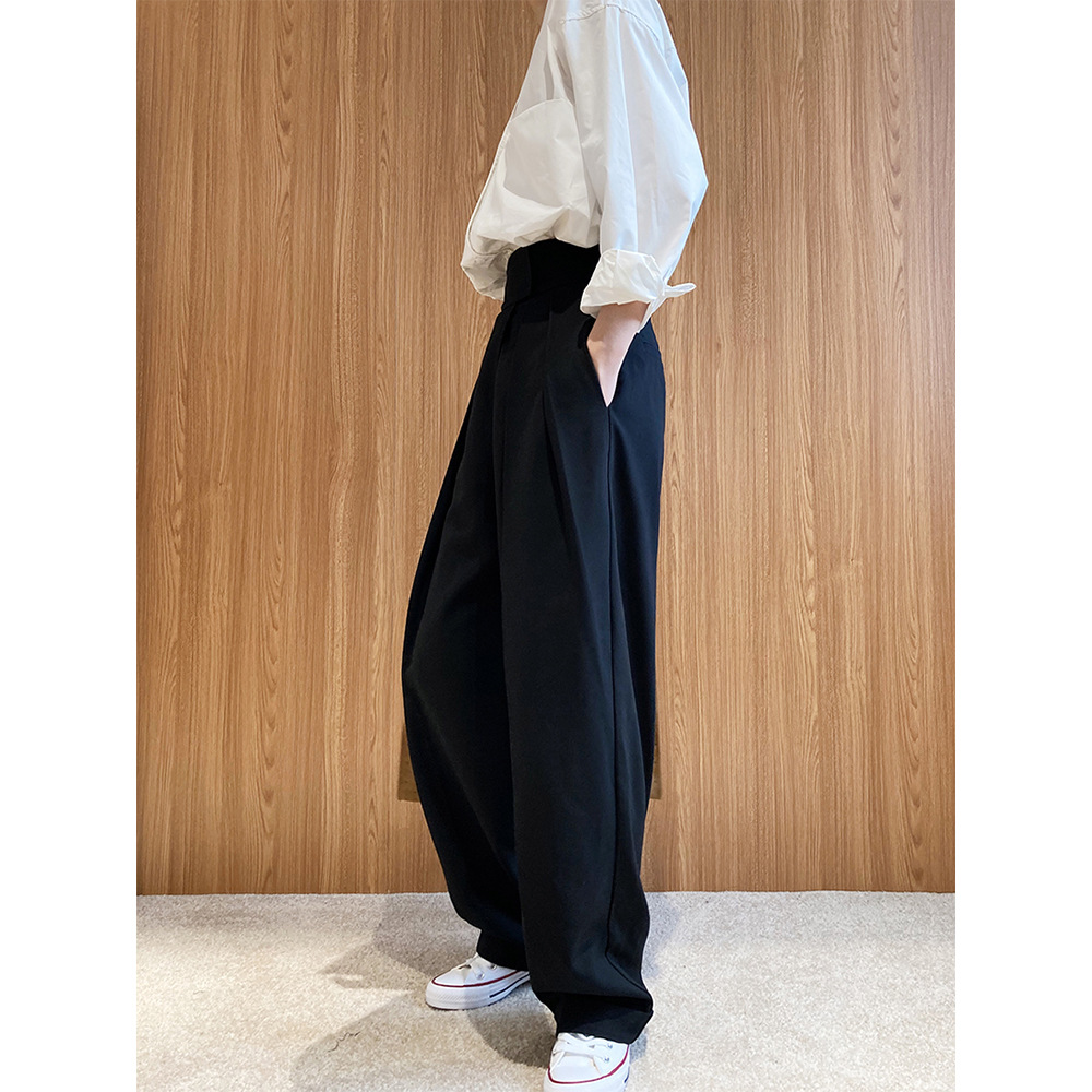 鹿西 高腰设计感魔术贴西装裤女春秋宽松阔腿拖地裤斜门襟裤子195