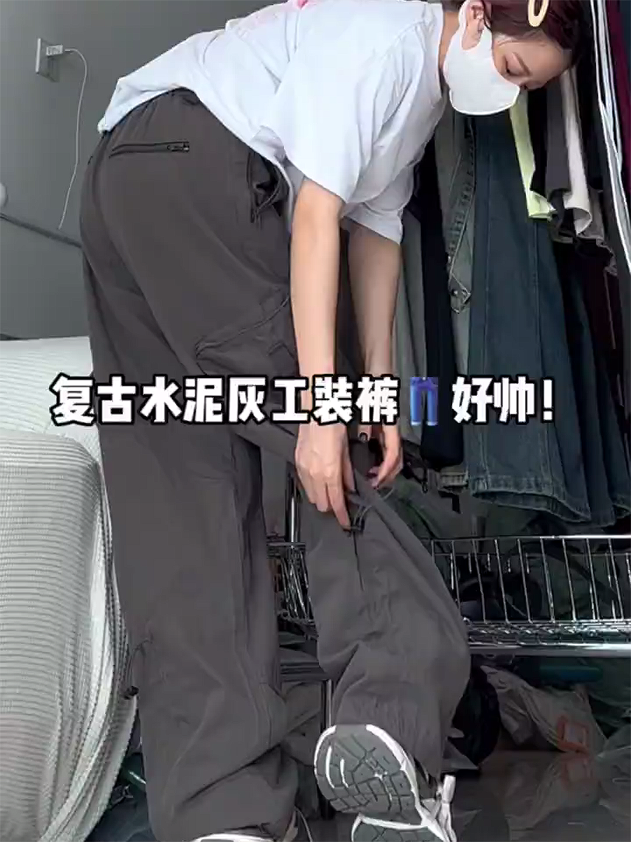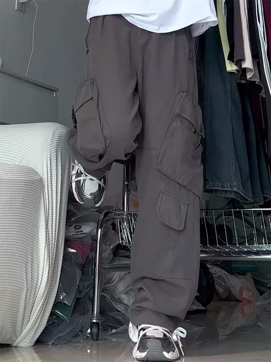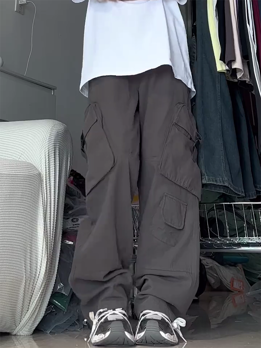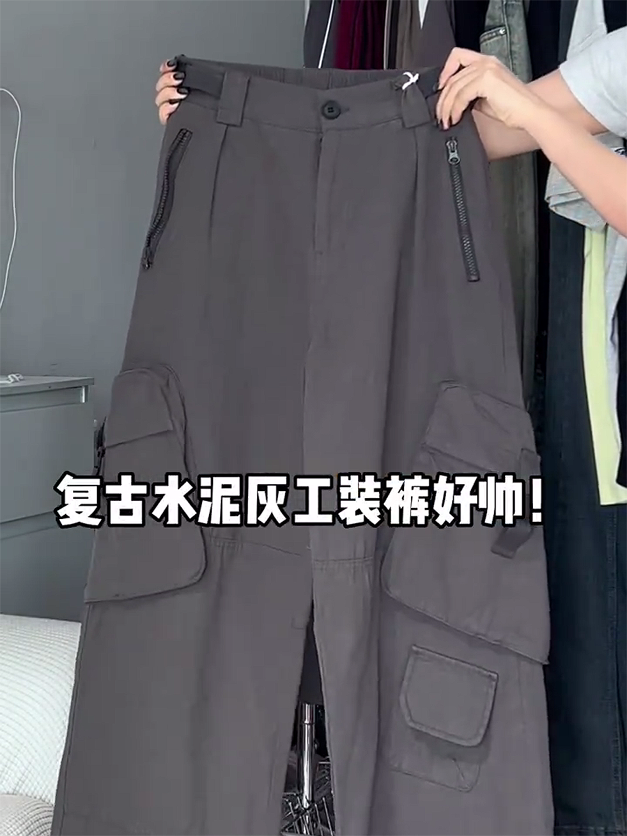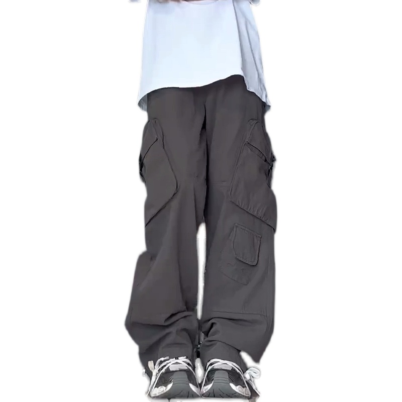 美式復古hiphop工裝褲女夏季寬鬆潮牌設計感舞蹈闊腿直筒休閒褲子