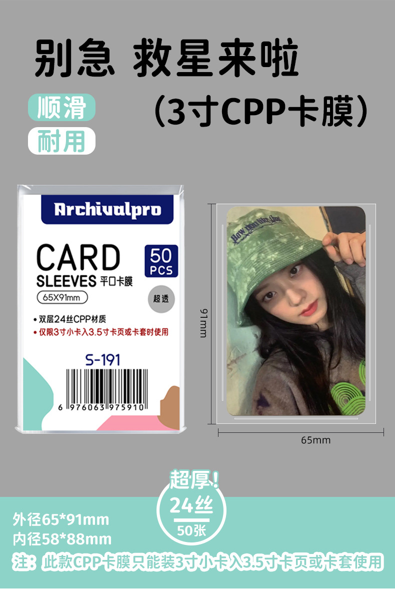 ArchivalPRO平口加厚高透明追星小卡3寸拍立得爱豆相片保护套卡膜