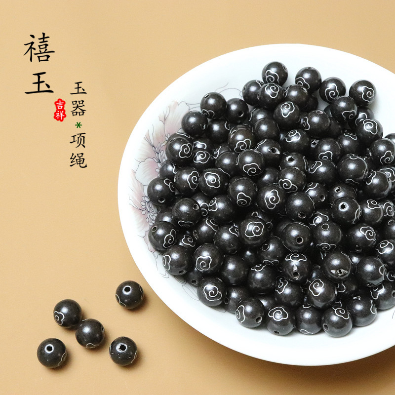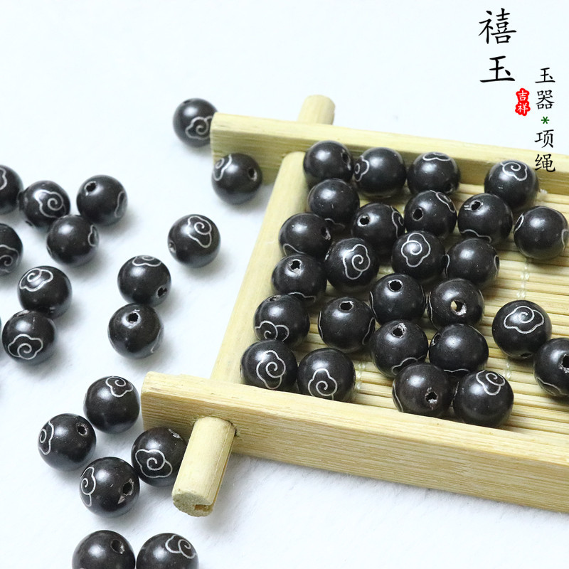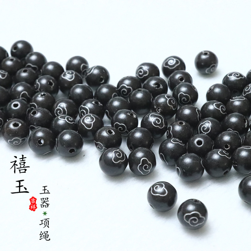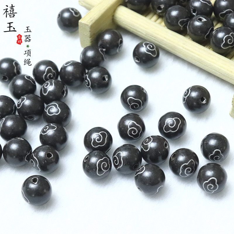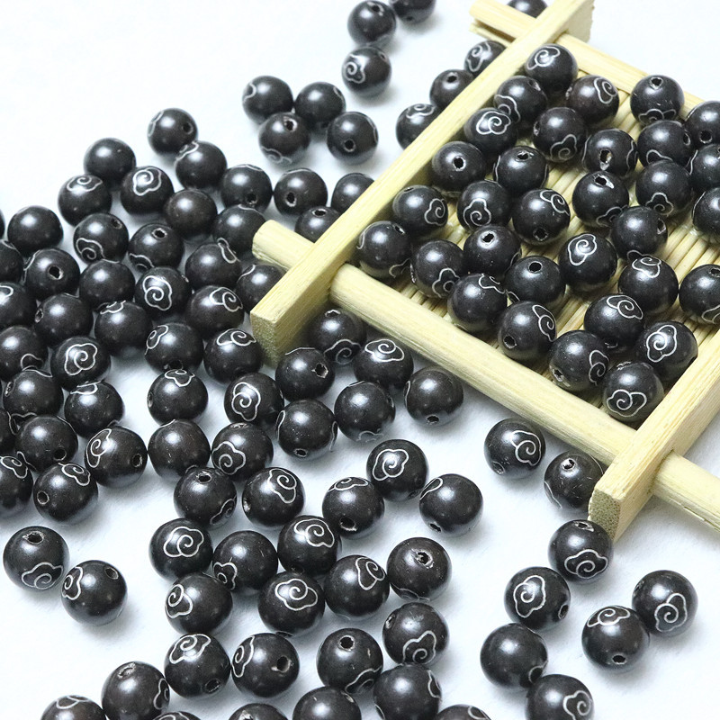 银粉木珠8MM黑色圆珠玉器饰品配件散珠吊坠珠子