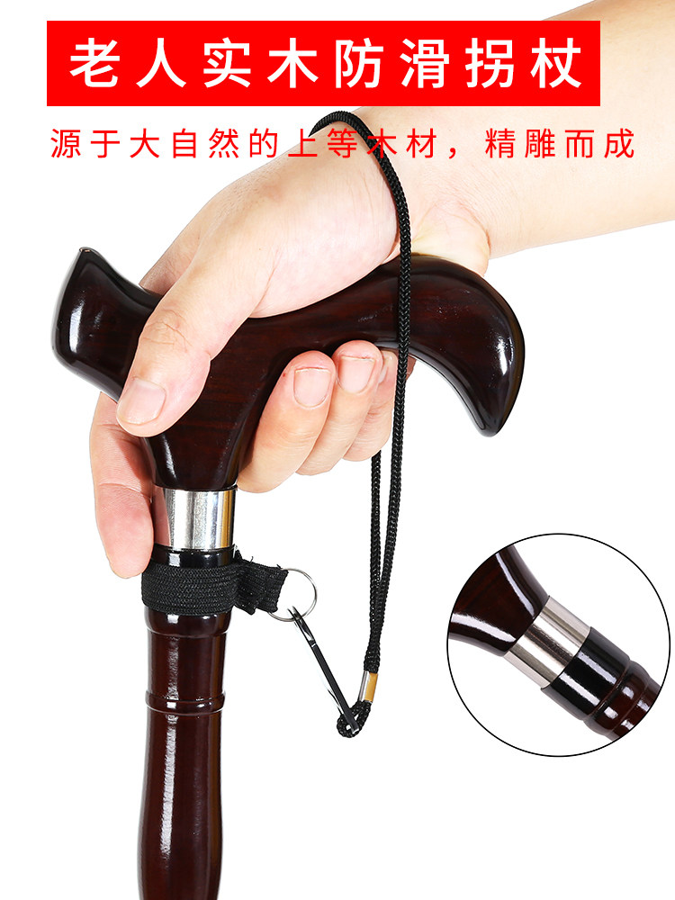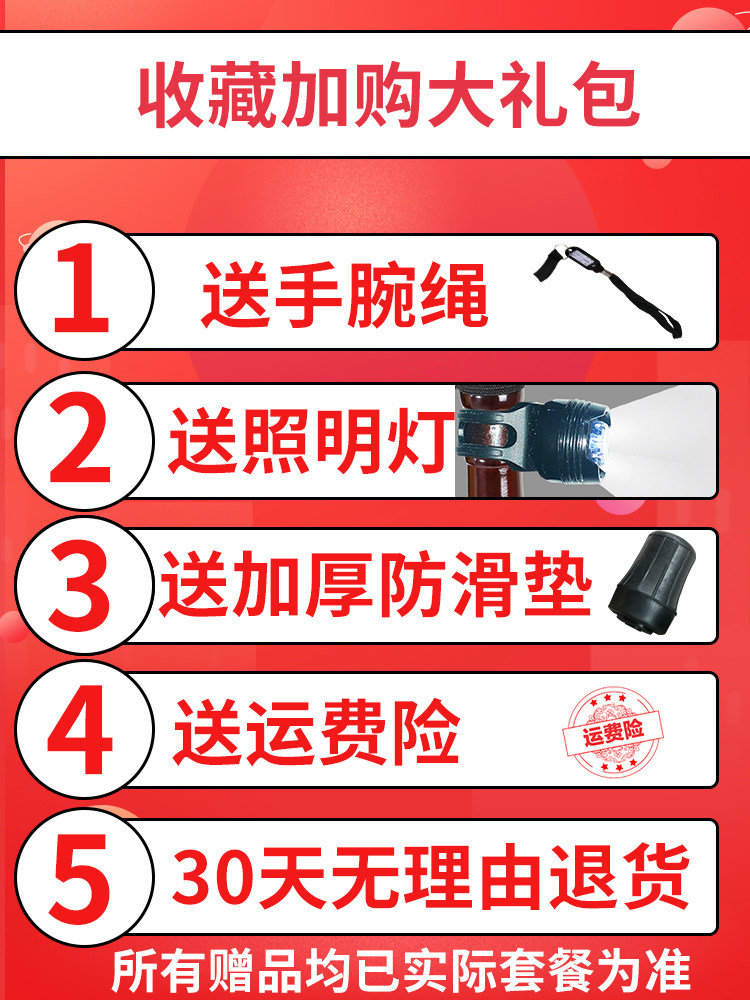 柺棍老人柺杖防滑拐扙實木老年木頭拐仗帶燈捌杖輕便木質手杖四腳