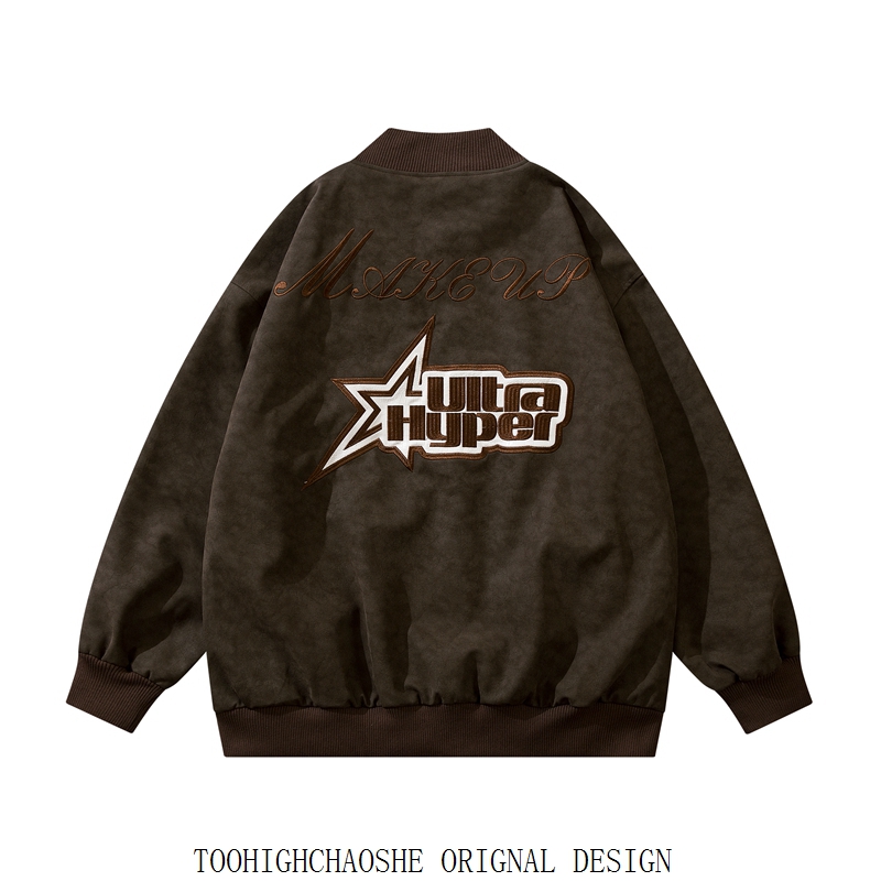 五角星設計感潮飛行員教練夾克外套2023新款女寬鬆大尺碼男美式復古
