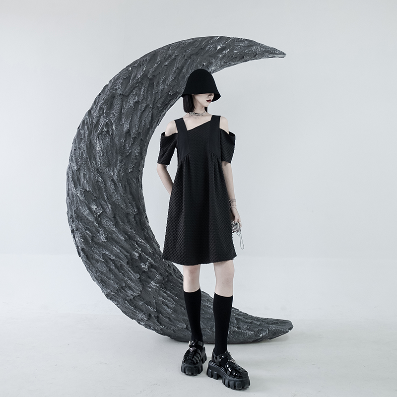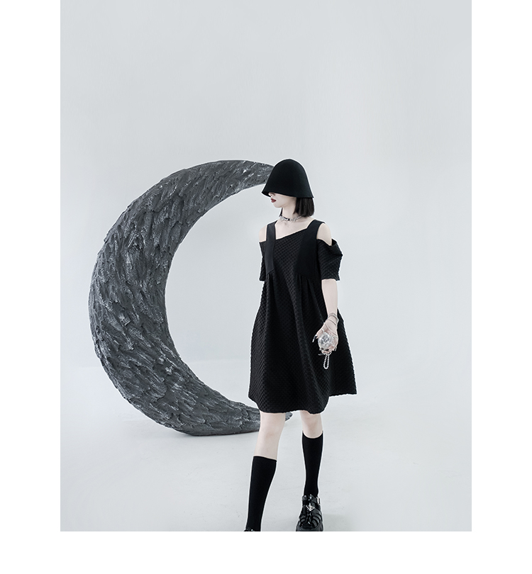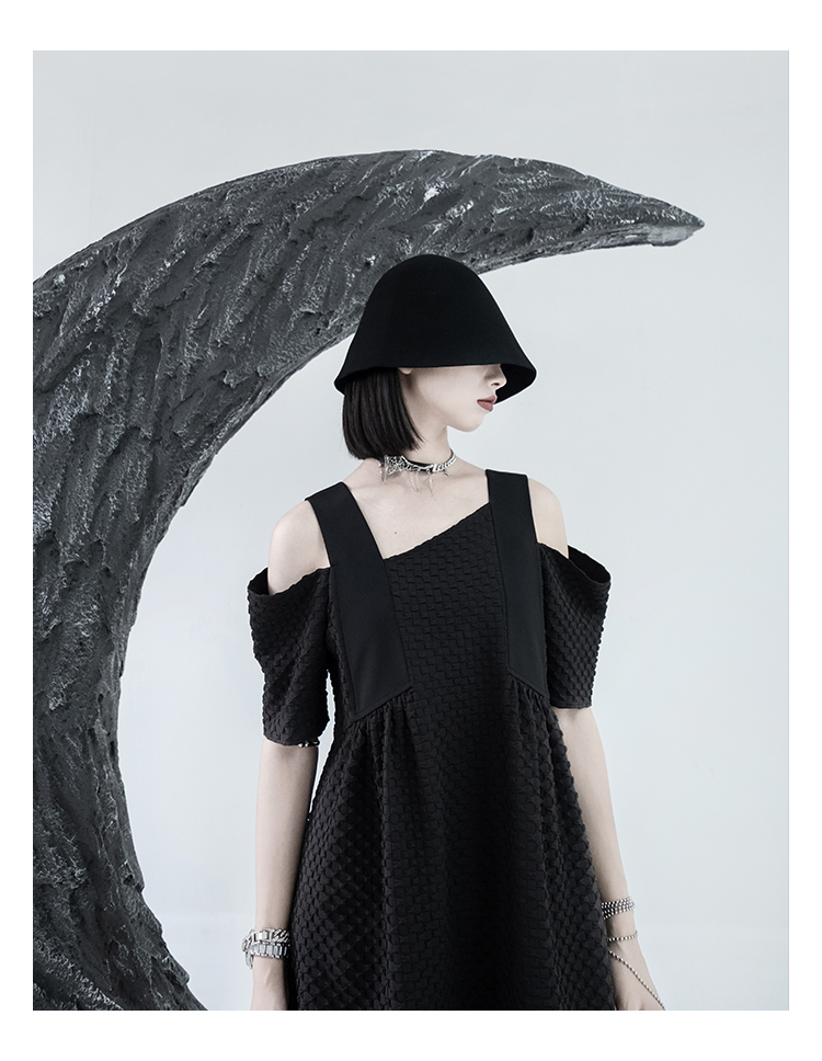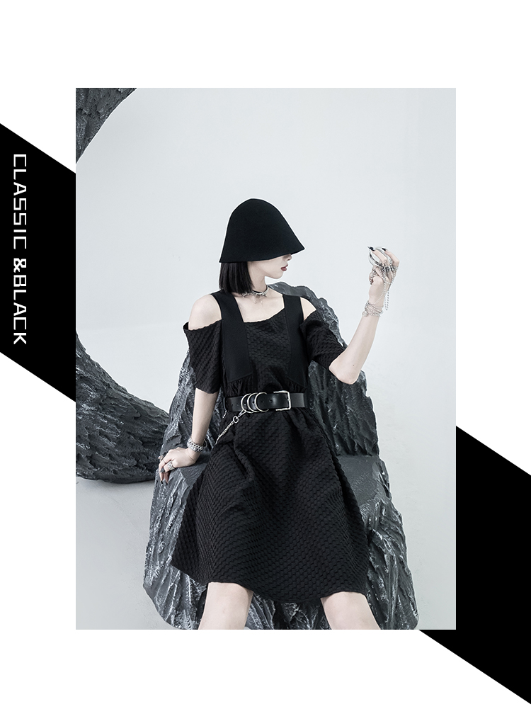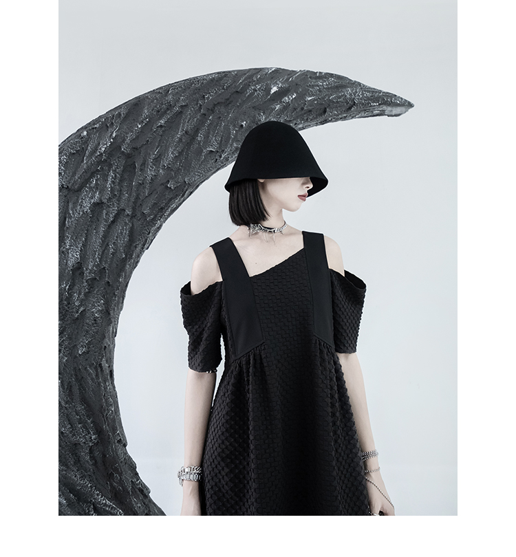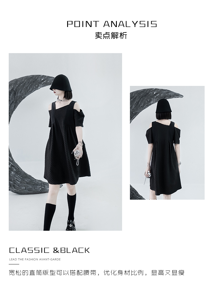 CHICSKY 原創一字肩洋裝女夏季2023新款設計感小眾黑色裙子